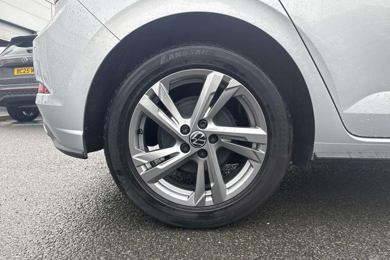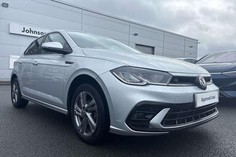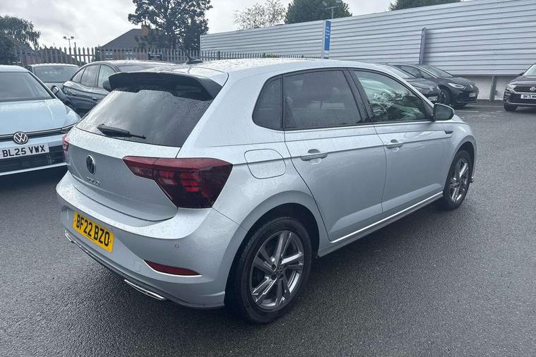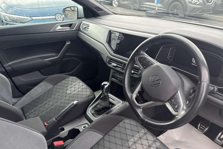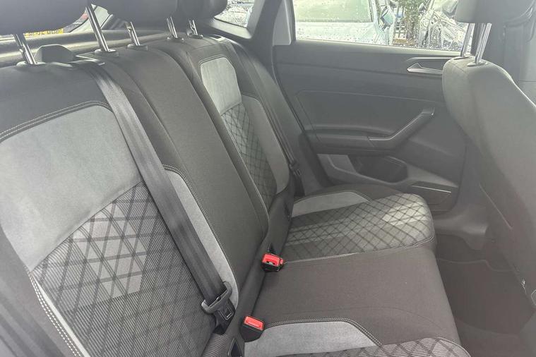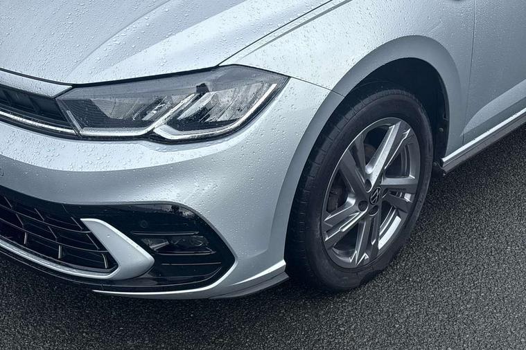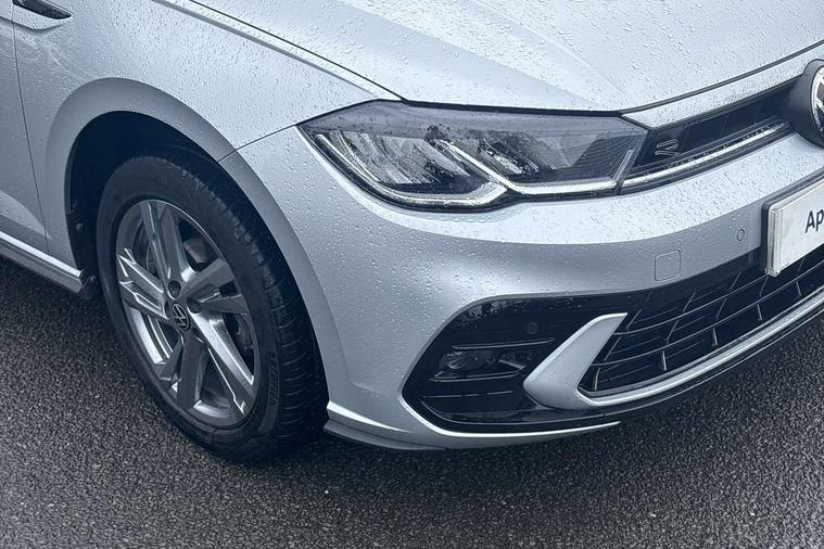 Adaptive cruise control without follow-to-stop and speed limiter, Bluetooth mobile phone interface, Digital Cockpit Pro with 10.25" Display, Driver alert system, Dynamic road sign display, Emergency call service, Power assisted speed sensitive steering, Preparation for We connect and We connect plus, Speedo and rev counter, electronic odometer, trip, service interval display and fuel gauge, Standard rear axle, Travel Assist - Lane keeping system and traffic jam assist, Travel assist including emergency assist, Trip computer, Warning signal and warning light for front and rear seatbelts not fastened, Washer fluid level indicator, Wireless app connect, Front wheel drive, Rear shock absorpion, Start-stop system with battery regeneration (recuperation - energy recovery during braking), DAB Digital radio, Diversity antenna for FM reception, Front and rear 6 speakers, Body colour bumpers, Body colour door handles, Body colour door mirrors, Electric front windows, Front fog lights with static cornering function, Front scuff plates with R-Line logo, Heat insulating darkened glass in side and rear windows, Heat insulating glass windscreen, Power folding adjustable/heated exterior mirrors and front passenger exterior mirror lowering function, Rear electric windows, Rear fog light, Rear side wing doors, Rear tinted glass from B-pillar backwards approx 65% tinted, Rear windscreen washer and wiper with interval delay, Third brake light, 12V power socket in centre console, 2 USB-C ports in the front, 2 USB-C charging sockets on the center console in the rear, 3 rear head restraints, 60/40 split folding rear seat and rear seat bench not split, Air care climatronic air conditoning system with active combination filter and 2-zone temperature control, Black roof lining, Ceramique headliner, Chrome plated radiator grille inserts, air vent surrounds and light switch surrounds, Door and side trim panel, Driver and front passenger seat height adjustment, Driver/passenger sunvisors with illuminated vanity mirrors, Front + rear carpet mats, Front centre armrest, Front footwell illumination, Front seat backrest storage pockets, Front sports comfort seats, Handbrake lever handle in leather, Isofix child seat preparation easy-fit (for two outer rear seats, and front passenger seat) compatible with I-size, Karoso artvelours cloth upholstery, Leather trimmed gear knob, LED interior light with switch off delay and dimmer, 2 reading lights front and rear, Luggage compartment cover, Luggage compartment floor, Luggage compartment lighting, Lumbar adjustment for front seats, Multifunction steering wheel, Single front passenger seat, Stainless steel pedals, Standard pedal cluster, Light and sight pack - Polo R-Line/Black Edition, 3 point height adj front seatbelts + pretensioners, 3x3 point rear seatbelts, ABS, Driver and front passenger airbag with front passenger airbag deactivation, Drivers and front passengers safety optimised head restraints, ESC (Electronic stability control) + EDL (Electronic Differntial lock) and ASR (Traction control), Extended and predictive pedestrian/ cyclist protection, Front curtain and side airbags with center airbag, Hill hold control, Manual child lock in rear doors, Single tone horn, Tyre pressure loss indicator, Alarm with interior protection, Anti-theft alarm system with interior monitoring, backup horn, and towing protection, Anti-theft wheel bolts, Electronic engine immobiliser, Chrome applications on rotary light, mirror adjustment, window regulator switches, outlet with frame in black, Dark grey anodised matt decorative inserts in dash and front door panels, Low rolling resistance tyres,