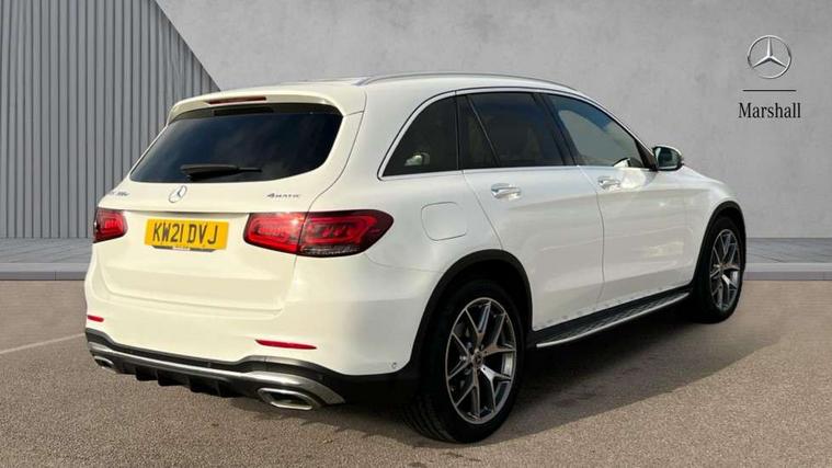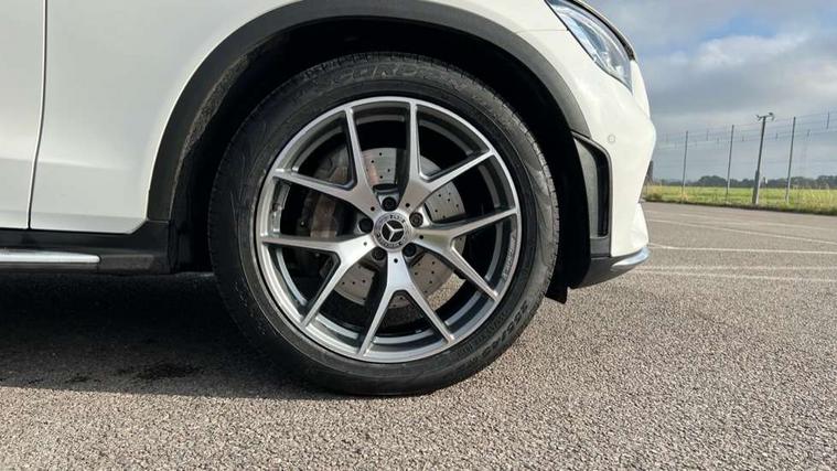 Anthracite open pore oak wood trim, Interior lighting pack - GLC, Keyless Go comfort pack - GLC, Memory pack - GLC, Mirror pack - GLC, Storage pack - GLC, 20" AMG 5 twin spoke alloy wheels painted in titanium grey with high sheen finish, Run flat tyres, Alarm system/interior protection/immobiliser, Automatic door locking, Remote central locking, Burmester surround sound system, MBUX multimedia system with DAB digital radio and touchpad including satellite navigation, Media display 10.25-inch touchscreen display, Pre installation for Mercedes Benz Link, USB ports x 2 in centre console, 3 rear 3 point seatbelts, Active bonnet, Adaptive brake system with HOLD function and brake drying in the wet, ASR, Black seat belts, Brake calipers with Mercedes-Benz lettering + perforated brake discs, Child proof door locks, Dual-stage airbags - driver and front passenger, driver knee bag and window bags for driver, front passenger and rear passengers, Electronic parking brake, Electronic stability programme (ESP) with curve dynamic assist and cross wind assist, Front and rear seatbelt reminder, Front passenger seat occupancy sensor, Hill hold function, Tyre pressure monitoring system, Warning triangle and first aid kit, Adaptive brake lights, Aluminium roof rails, AMG bodystyling AMG front apron with sporty air intakes and chrome trim element, AMG diffuser-look rear apron with insert in black, Body colour door mirrors, Body coloured bumpers, Electric panoramic glass sunroof, Electric windows one touch open/close, Electrically adjustable and heated door mirrors, Front, side and rear exterior chrome trim, Headlamp assist automatic headlamp activation, LED tail lamp, Motor way mode function and locator lighting, Multi beam LED headlamps with 84 indiviually control LED, daytime running lamps, Active Light, cornering light, enhanced fog lamp, adaptive Highbeam Assist, Privacy glass with dark glass from B pillar backwards, Radiator diamond grille, Rain sensor windscreen wipers, Range adjustable headlights, Rear wiper, Running boards, Tinted glass all round with single layer safety glass, Two chrome plated tailpipe trim elements, 2 way rear head restraints, 3-spoke multifunction sport AMG steering wheel in black nappa leather with flattened bottom section, chrome insert and perforated leather in grip area, 40:20:40 split folding rear seats, Ambient lighting, AMG floor mats with edging and embroidered AMG lettering, AMG sports seats, Artico man-made leather upper dashboard with contrast topstitching, Automatic child seat recognition sensor, Black roof lining, Dividing net - rear, Double cup holder in centre console, Easy-pack removable load compartment cover, Front armrest with storage box, Front door sills with Mercedes Benz lettering, Front head restraints, Heated front seats, Illuminated and lockable glove compartment, Leather upholstery, Rear top tether child seat ISOFIX attachment, Sports pedals with stainless steel surfaces and rubber studs, Steering wheel with touch control buttons, THERMOTRONIC 3 zone automatic climate control, 360 degree camera, Attention assist, Bluetooth interface for hands free telephone, Collision prevention assist plus, DYNAMIC SELECT with a choice of driving modes (ECO, Comfort, Sport, Sport+ and Individual), Easy pack automatic powered tailgate, ECO start/stop function, Hard disk navigation, Hey Mercedes Voice activation, Instrument cluster with12.3-inch digital instrument cluster display. High resolution instrument cluster screen with choice of three display styles, MBUX augmented reality for navigation, MBUX Interior assistant, Mercedes connect me with remote online services, Multi function trip computer, Outside temperature display, rear seatbelt status indicator, Parktronic system with rear cross traffic alert and drive away assist, Remote boot release, Service indicator (ASSYST), Smartphone integration with Apple CarPlay and Android auto, Traffic sign assist, Wireless charging, 4MATIC permanent four wheel drive, 66 litre fuel tank, 9G TRONIC plus automatic transmission with steering column gear selector, DIRECT SELECT steering wheel gearshift paddles, Diesel particulate filter, Sports suspension tuned for improved handling and driving dynamics,
