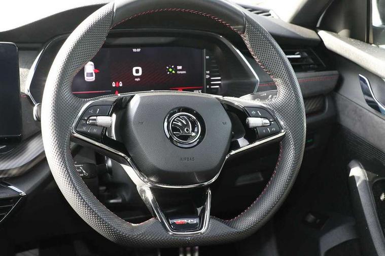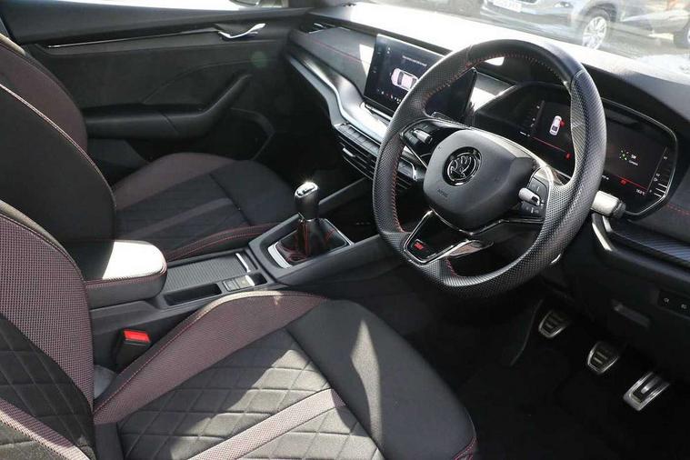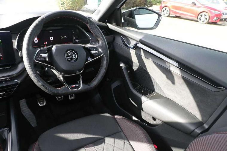 1x USB Type C port in rear view mirror (charging only), 2x USB Type C ports in rear of front centre armrest (charging only), Bluetooth system, Columbus satellite navigation with 10" touchscreen display, Driver fatigue sensor, eCall emergency system, Front and rear parking sensors with manoeuvre assist, Front assist system, Progressive dynamic steering, Smartlink (includes android auto and mirrorlink), Speed limiter, Turn Assist, Virtual Cockpit - 10.25" digital display, Voice control system, Wireless SmartLink for Apple Car Play, Electronically controlled limited slip differential, Front and rear stabilizers, 2x USB Type C ports (for charging and data transfer), 8 Speakers, DAB Digital radio, Aero front windscreen wipers with intermittent function, Auto dimming rear view mirror, Body colour door handles, Chrome exhaust tailpipes, Door sills with vRS logo, Electric front and rear windows, Exterior gloss black sports styling including front grille, side strip, window surrounds, door mirror and badging, Full LED Matrix headlights with AFS and cornering front fog lights, Headlight washers, Heated rear windscreen, High level third brake light, Ice scraper in fuel cap, LED daytime running lights, Rain and light sensors, Rear fog light on one side, Rear privacy glass, Rear side wing doors, vRS bumpers and lip spoiler, 3 rear headrests, 3 seat bench in 2nd row, 4 foldable roof handles, Aluminium pedals, Black headlining, Black microsuede padded dash panel with red contrast stitching, Chrome inner door handles, Front centre armrest, Front head restraints, Heated front seats, Illuminated glovebox, Leather trimmed gearshift lever, Luggage compartment lighting x1 light, Mechanical rear seat release, Parcel shelf - folding, Single front passenger seat, Sunglasses storage, Textile floor mat set, Three spoke leather sports multifunction steering wheel, Ticket holder, Umbrella in door panel, Unsplit rear bench seat and split folding backrest, LED interior light pack - Octavia, 3 point front/outer rear seatbelts+pre-tensioners, Alarm with interior monitoring, tilt sensor and back up horn, Automatic door unlocking in case of crash, Automatic fuel cut off in case of crash, Automatic warning lights in case of emergency braking, Curtain airbags and front side airbags, Driver and front passenger airbags, Drivers knee airbag, Electronic parking brake, Emergency call and proactive services, ESC including ABS, EBV, MSR, ASR, EDS, HBA, DSR, Front and rear disc brakes, Front central airbag, Hill hold control, Hill start assist, ISOFIX on front passenger seat and outer rear seats, Manual rear child locks, Passenger airbag deactivate switch, Red brake calipers, Two tone horn, Tyre pressure monitor, Visual and acoustic seat belt reminder, Warning reflectors in front door, Door locks with immobiliser, Keyless entry and start/stop including rear doors, Remote central locking, Carbon optic decorative inserts, Gloss black air vent surrounds, 19" Altair anthracite alloy wheels,