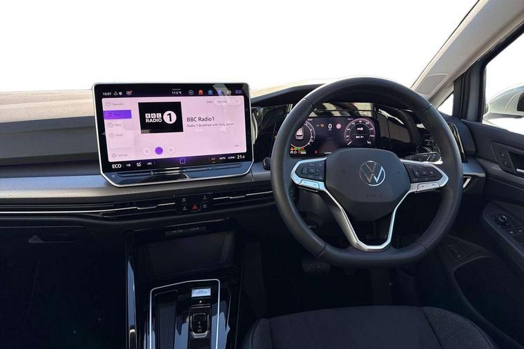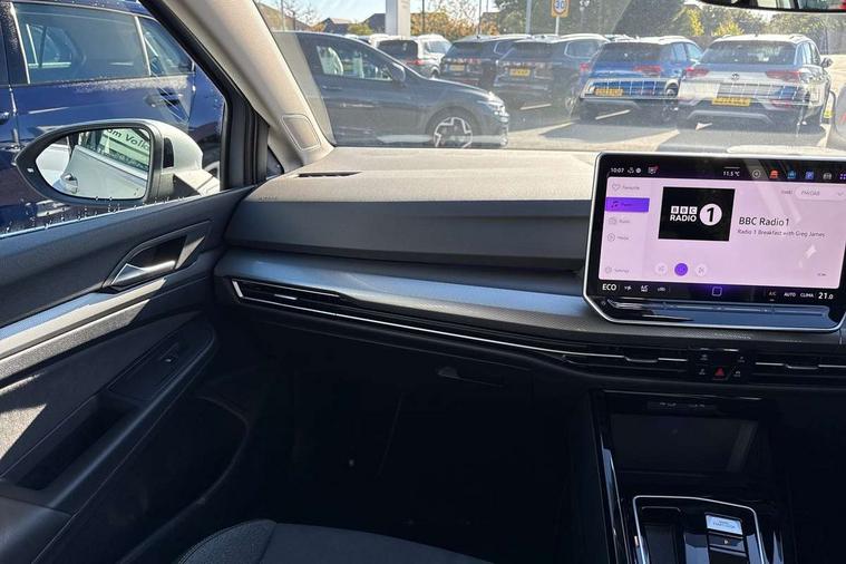 Activated carbon canister, Adaptive cruise control (ACC), Advanced driver attention and drowsiness monitor, Dynamic road sign display, E-Sim card for online connectivity, eCall emergency call system, Multi-color Digital cockpit pro, selection of different info profile possible, Multifunction front facing camera for distance control, Navigation system, Oncoming vehicle braking when turning including swerve support, Side assist blind spot lane change system, rear traffic alert and exit warning system, Speed limiter, Speedo, rev counter, electronic odometer, trip, service interval display, exterior temperature and fuel gauge, Traffic jam assist, Voice enhancer and voice control, Warning signal and warning light for front and rear seatbelts not fastened, We connect plus preparation, We connect preparation, Wireless app connect, Charging cable Mode 2 Type 2 (10A), Charging cable mode 3, type 2 32 A, Hybrid propulsion system, Start-stop system with battery regeneration (recuperation - energy recovery during braking), XDS electronic differential lock for improved traction and handling, 2 USB C ports in front, 2 USB charging sockets on the centre console in the rear charging capacity upto 45W, 6 Speakers - 4 in front and 2 in rear with central speaker, Digital radio reception (DAB), Diversity antenna for FM reception, Gaming platform via car app, Infotainment system with 12.9" display, Mobile phone interface with inductive charging feature, 3rd brake light, Automatic headlamp activation with Coming home and Leaving home feature, Body colour bumpers, Body colour door handles, Body colour door mirrors, Chrome trimmed front air intake surrounds, Chrome trims on the side window bottom, Exterior mirrors convex on the left and aspherical on the right, Front and rear electric windows, Heat insulating windshield made of laminated glass, LED separate daytime running light, Rear exhaust tailpipe, Rear fog light on one side and reversing lights on both sides, Rear side wing doors, Rear windscreen washer and wiper with interval delay, Remote electrically foldable door mirrors, puddle lights and reverse activated passenger's door mirror, Welcome light with surround lighting, 12V socket in front centre console, 12V socket in luggage compartment, 3 rear head restraints, 3 seat bench in 2nd row, Air care climatronic 3 Zone automatic climate control with rear air conditioning control panel, Ambient lighting with 30 colour including LED light unit in front footwell with selectable light colour, Chrome plated radiator grille inserts, air vent surrounds and light switch surrounds, Front + rear black carpet mats, Front centre armrest, ISOFIX anchors for child seats on outer rear bench seats and on front passanger seat compatible for i-Size, Luggage compartment lighting, Plastic gear knob, Rear cupholder and loadthough, Single front passenger seat, Soul black instrument panel, Split folding backrest with centre armrest and unsplit rear seat bench, Standard pedal cluster, Storm grey roof lining, Sun visors with illuminated vanity mirrors, Driver assistance pack - Golf Estate/Hatchback Auto, 3 point height adj front seatbelts + pretensioners, 3 rear three point seatbelts, ABS, Autonomous emergency braking front assist with pedestrian and cyclist monitoring, Child locks on rear doors, Driver and front passenger airbag with front passenger airbag deactivation, Electronic parking brake with auto hold, ESC (Electronic Stability Control), Extended pedestrian protection measures, Hill start assist, Rear disc brakes, Two tone horn, Tyre pressure loss indicator, Volkswagen roadside assistance, Anti theft wheel bolts, Preparation for alcohol interlock, New brushed dark metal decorative inserts for dashboard and front door panels, Tool kit for tyre mobility set, Tyre mobility kit Includes 12V compressor and tyre sealant,