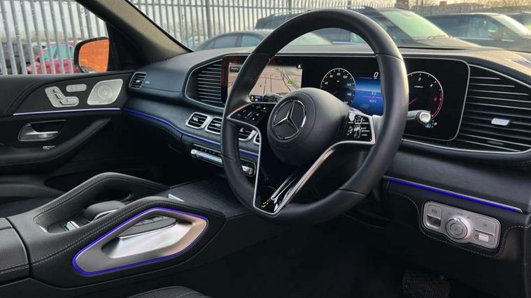 12.3 High resolution wide screen cockpit display with choice of three display styles Classic, Progressive or Sport and unique ambient lighting setting, 360 degree camera, Active parking assist with PARKTRONIC, Attention assist, Brake wear warning display, Direct steer speed sensitive steering, DYNAMIC SELECT with a choice of driving modes (ECO, Comfort, Sport and Individual), Easy-pack tailgate - Powered opening/closing automatically, ECO start/stop function, Hard-disk navigation, Head up Display, MBUX augmented reality for navigation and live traffic, MBUX voice control activated by keywords "Hey Mercedes", Mercedes Benz emergency call system, Mercedes me connect - vehicle set up and monitoring, Outside temperature display, Pre-installation for digital key transfer, Remote boot release, Service indicator (ASSYST), Status display for rear seat belts in instrument cluster, Traffic sign assist, Trip computer in multifunction display showing current fuel consumption, Wireless charging, Wireless smartphone integration including Apple CarPlay and Android auto, 85 litre fuel tank, 9G TRONIC 9 speed automatic transmission, Airmatic air suspension with adaptive damping system, Diesel particulate filter (DPF), Mild Hybrid starter alternator, Additional USB connection, Bluetooth interface for hands free and audio streaming, Burmester surround sound system, DAB digital radio tuner, Front and rear USB ports, Sound personalisation, Adaptive brake lights, Aluminium look, illuminated running boards with rubber studs, AMG bodystyling front and rear aprons, Auto headlights, Automatically dimming rear view mirror, Body colour door mirrors, Body coloured bumpers, Electric windows with one touch opening/closing and obstruction sensors, Electrically adjustable, heated, folding exterior mirrors, Exterior styling - front bumper, radiator grille and front air intakes, Heat insulating dark tinted glass, Heated windscreen washers, LED 3rd brake light, LED daytime running light signet, LED rear lights, Magic vision control, Multibeam LED headlights with adaptive highbeam assist plus, Panoramic sliding sunroof, Radio aerial integrated into rear window, Rain sensing windscreen wipers, Rear side wing doors, Rear wiper, Roof rail system, Top surround of side windows in polished aluminium, Transparent Bonnet, Visible twin pipe exhaust system integrated into bumper, Waistline in polished aluminium, 3 spoke round bottomed multifunction steering wheel in nappa leather, 3rd row of seats for 2 people, 4 way adjustable front head restraints and 2 way rear head restraints, 4 way lumbar support for driver and front passenger, 40:20:40 split folding rear seats, Automatic child seat recognition sensor, Electric height/reach adjustable steering column, Electrically adjustable front seats with memory function, Front centre armrest with stowage compartment and illuminated grab handles, Gearshift paddles on steering wheel, Glove compartment - lockable, air conditioned and illuminated, Heated front seats, Heated steering wheel, Illuminated door sill with Mercedes Benz lettering, Interior lighting - 64 colour Ambient lighting, Leather upholstery, Luggage compartment cover, Luxury AVANTGARDE Interior, Seat occupancy sensor for front passenger seat, Second row three seats, Single front passenger seat, Sunvisors with illuminated vanity mirrors, Thermotronic automatic 4 zone climate control, Touchpad, Velour floor mats, Exclusive Trim package - GLE, Keyless go comfort package - GLE, Active bonnet, Airbags - driver and front passenger, front sidebag, pelvis bag and window airbags, Anti-lock braking system (ABS), Black seat belts, Childproof locks manually operated for rear doors and electrically operated for rear power windows, Drivers knee airbag, Electronic parking brake, Electronic Stability Programme (ESP), ISOFIX child seat points with automatic child seat recognition, Perforated front brake discs and brake calipers with Mercedes-Benz lettering, Pre safe impulse side, Three point rear seat belts, Tyre pressure monitoring system, Warning triangle and first aid kit, Alarm system/interior protection/immobiliser, Central locking with interior switch, automatic locking and crash sensor with emergency opening function, Chrome surround electric key, Guard 360 degree vehicle protection plus, Dashboard and door beltlines in ARTICO man made leather, Trim - Centre console, anthracite open pore oak wood trim, 21" AMG multi spoke light alloy wheels, TIREFIT with tyre inflation compressor,