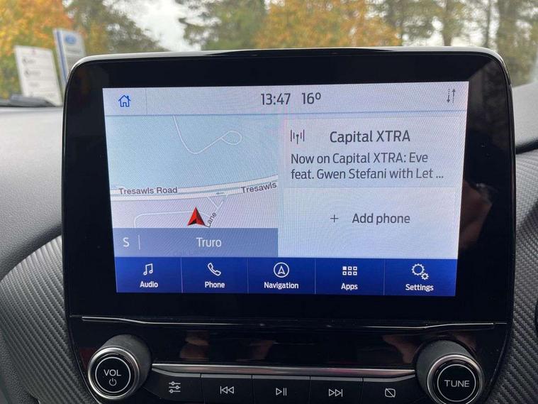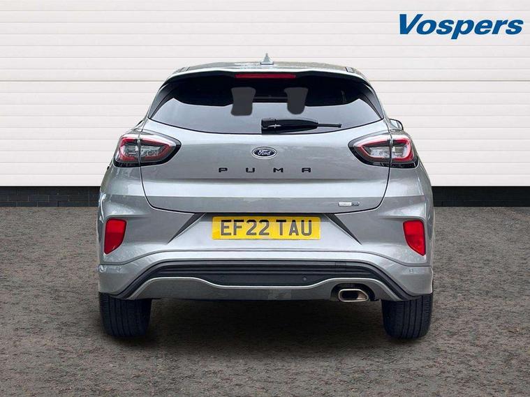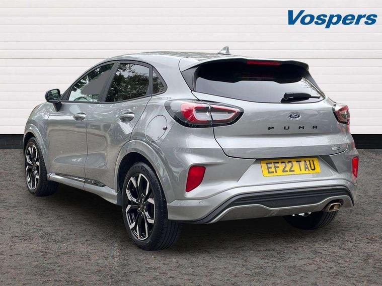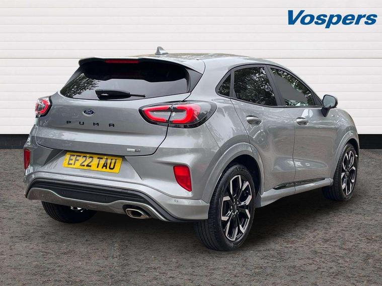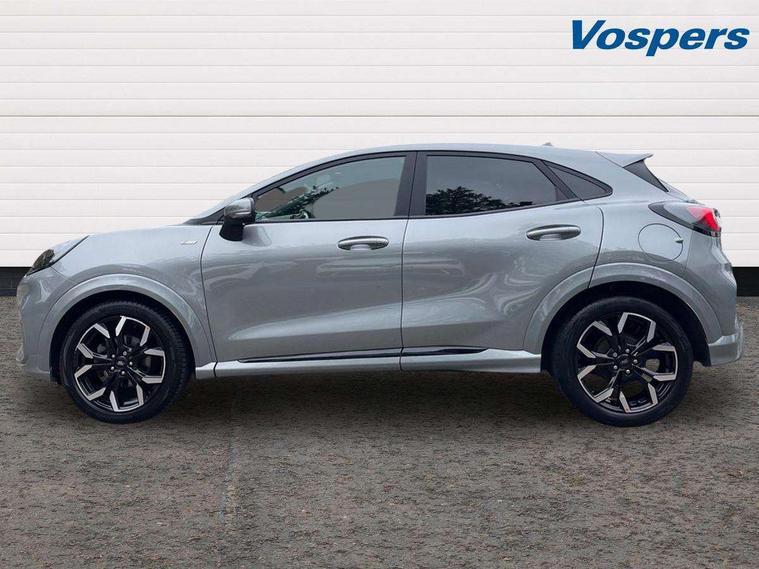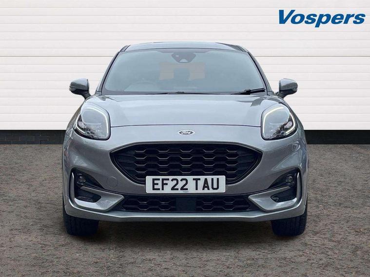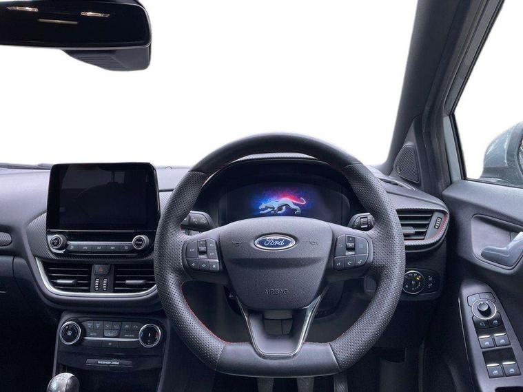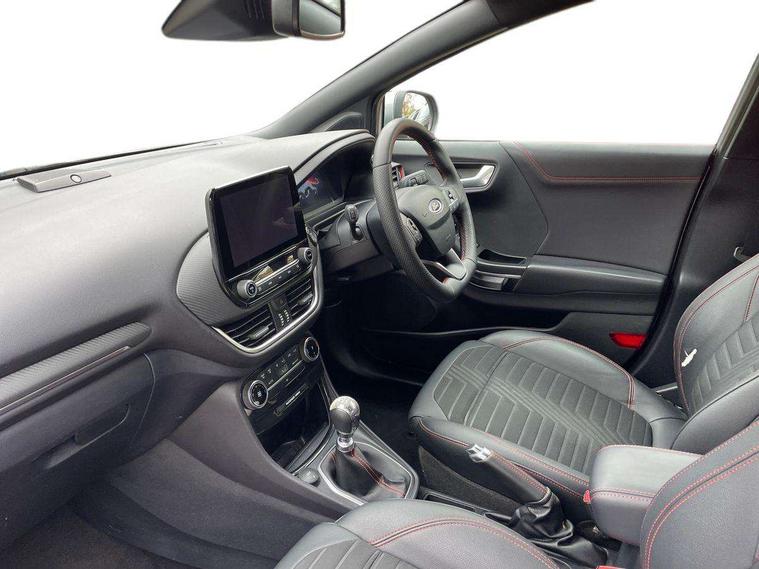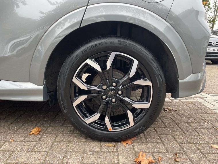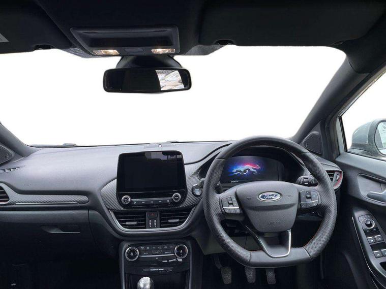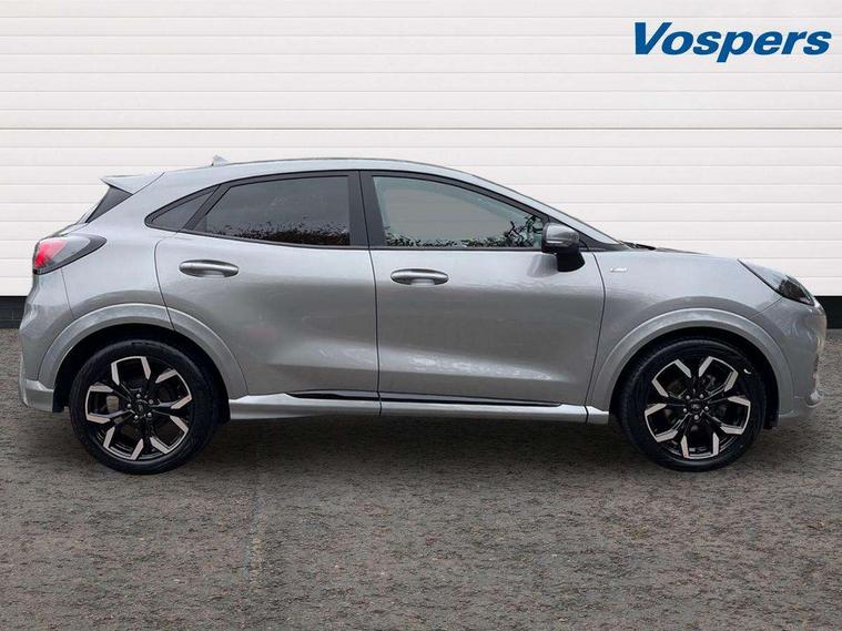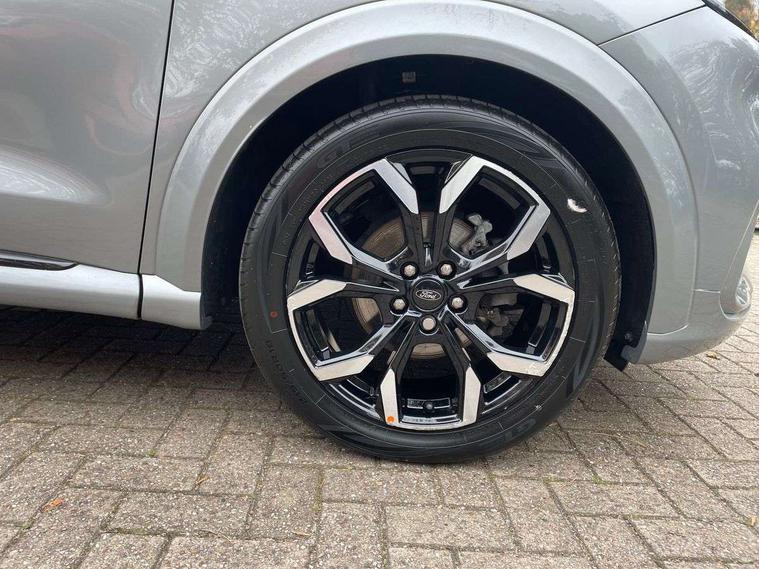 Driver impairment monitor, Emergency call service, Ford easy fuel, Full digital 12.3" instrument cluster, Lane keeping aid with lane departure warning, Power assist steering, Power start button, Rear parking sensor, Selectable drive modes(Normal, sport, Eco, trail, slippery), Speed sign recognition, Sport suspension, Automatic headlights with auto high beam, Automatic rain sensing wipers, Front fog lamps, LED daytime running lights, LED rear lamps, Power foldable heated door mirrors with puddle lamps, Privacy glass to side rear windows and tailgate glass, Quickclear heated windscreen, Rear side wing doors, Rear wiper, ST-Line body styling kit with unique grille and large body colour rear spoiler, Third brake light, 3 seat bench in 2nd row, Centre console with armrest and stowage, Ford megabox extended bootspace, Front and rear head restraints, Front floor mats, Manual 4 way driver seat adjust with lumbar adjustment, Manual 4 way passenger seat with lumbar seat adjustment, Sensico partial premium upholstery, Single front passenger seat, ST-Line flat bottomed sensico leather steering wheel with leather handbrake and aluminium gear knob, Wireless charging pad with electronic air temperature control (EATC), B&O Premium Audio system + Ford SYNC 3 navigation pack - Puma, Driver assistance pack with Lane departure warning - Puma, 3 rear seatbelts, Child safety lock, Electronic stability control (ESC) and hill start assist, Pedestrian/cyclist detection & post-collision braking, Pre collision assist with autonomous emergency braking, Tyre pressure monitoring system (TPMS), Thatcham alarm, Carbon look interior deco spears,