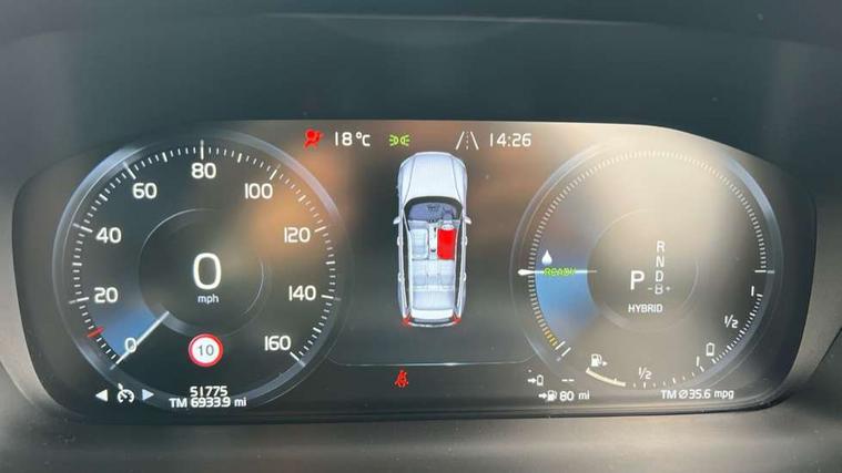 12.3" Active TFT crystal driver's instrument display, 9" centre console touch screen, Adjustable steering wheel force, Bluetooth hands free telephone kit, Drive mode settings, Driver alert control with lane keeping aid, Information centre, Oncoming Lane Mitigation, Power operated tailgate, Sensus navigation with European mapping and traffic information, Service interval indicator, Speed limiter, Speed sensitive steering, Trip computer, Voice activated control for key functions, Volvo on call, 8 speed automatic transmission with start/stop + manual change functions, Dynamic chassis, Electric rear axle drive, Lithium-ion battery, Recharging port located in nearside front wing, DAB Digital radio, Fresh air subwoofer, Active bending headlights with adaptive shadow technology, Adaptive brake lights with high level LED brake lights, Auto dimming interior mirror, Automatic headlight levelling system, Automatic LED Headlights + Active high beam incorporating daytime running lights, Body colour bumpers, Colour coordinated auto folding and heated power door mirrors, Dark tinted windows for rear side windows and cargo area, Dual integrated exhaust pipes with high gloss black surround, Headlight cleaning system, High gloss black door mirrors and window surround, High gloss black mesh front grille with silk metal surround, Home safe and approach lighting, Integrated roof rails in high gloss black, Power front and rear windows, R Design tread plates, Rain sensor with automatic windscreen wiper activation, Rear wiper, Roof antenna, Roof spoiler, Visible VIN plate, 12V socket in cargo area, 12V socket in front + rear tunnel console, 2 zone electronic climate control with Clean zone air quality system + pollen filter, A-pillar parking ticket holder, Auxiliary fuel fired heater with pre conditioning functions, B Pillar ventilation, Black headlining, Bright metal luggage compartment threshold, Cargo load hooks, Centre console cupholders and storage, Charge cable bag, Contour sports seats with nappa leather/textile upholstery, Extended front seat cushions, Front footwell illumination, Front head restraints, Front reading lights + Theatre lighting and centre armrest storage illumination, Front tunnel net pocket, Front/rear door pockets and front cupholder illumination, Glovebox compartment with illumination, Heated front seats, Height/reach adjustable steering column, High gloss black steering wheel remote infotainment controls, Illuminated vanity mirrors + ticket holder, Isofix attachments on outer rear seats, Leather sports steering wheel with gearshift paddles, Load cover, Load protection net, Lockable glovebox, Lockable load floor, Luggage compartment illumination, Multi directional lumbar support, Multicolour theatre lighting and puddle lights, Nappa Leather Key Integrated Remote, Power driver seat with memory + exterior mirrors memory, Rear armrest with storage + cupholders, Rear footwell and side step illumination, Sport leather gear knob, Sports floor mats, Sports pedals, Tailgate illumination and ambient door lighting, Underfloor cargo storage, Versatile split folding rear seat - 60/40, WHIPS - Whiplash Protection System, 5 x 3 point seatbelts, City safety with steering support with Pedestrian + cyclist + large animal detection + front collision warning with full auto brake, Dual stage driver/passenger airbags, First aid kit, Hill start assist, IC (Inflatable Curtains) - Full Length, Passenger airbag cut-off switch, Power parking brake with auto hold function, Road sign information display, Run off Road Mitigation, Run off Road Protection, Seatbelt reminder and pretensioners for all seats, SIPS (Side Impact Protection System), SIPS airbags, Slippery road and hazard light alert, Stability and Traction Control with Spin control, Engine Drag Control and Corner Traction Control, Tyre pressure monitoring system, Vehicle deceleration control with Anti-lock Brake System, Electronic Brake Distribution and Emergency Brake Assist, Warning triangle, Anti-theft alarm including immobiliser/volume sensor + level sensor, Key integrated remote control central locking + fuel flap with deadlocking system and auto open/close power windows, Keyless drive (incudes keyless entry and start) with remote tag and handsfree tailgate open/close, Keyless Start, Locking wheel nuts, Private locking for tailgate, Metal mesh inlays, Tyre sealant kit + 12v compressor,