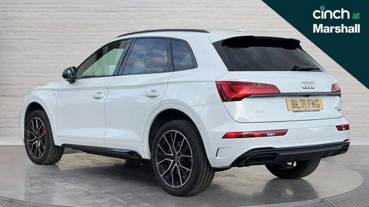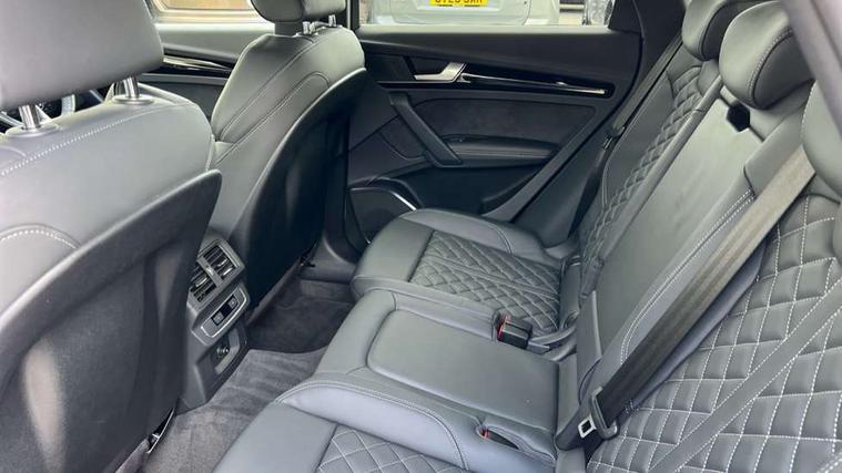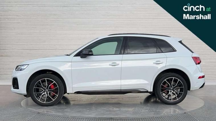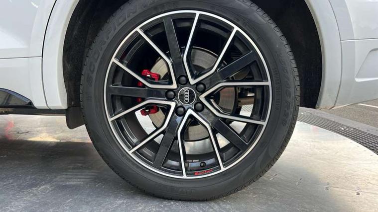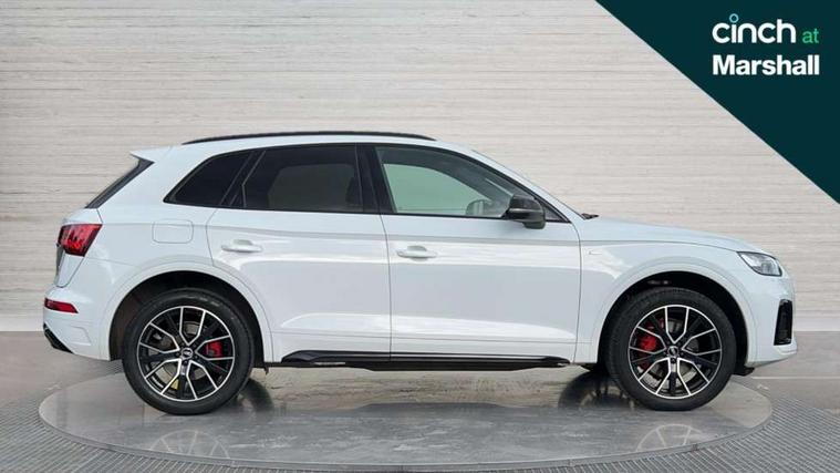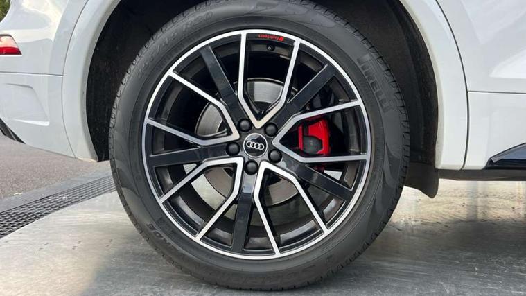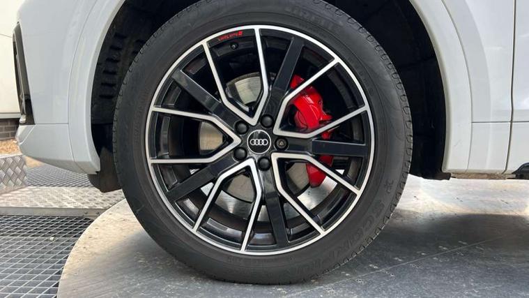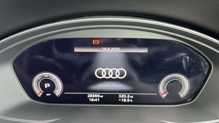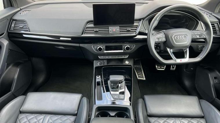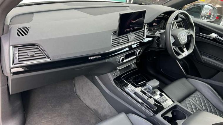 Audi connect safety and service (e-call), Audi connect with Amazon Alexa Integration, Audi drive select, Audi virtual cockpit plus with 12.3" screen and three different layout designs, Audi wireless smartphone interface, Automatic start-stop system with coasting functionality and efficiency programme, Bluetooth interface, Electro - mechanical power assisted steering, MMI navigation plus with 10.1" touch screen, Power tailgate, Reversing camera, Service interval indicator, Voice control system with Audi hotword activation "Hey Audi", Diesel particulate filter, Quattro on demand, S line sports suspension, 2 x USB charging port with aux input socket, DAB Digital radio, Acoustic windscreen, Audi beam with Audi rings logo, Audi matrix LED headlights with dynamic front and rear indicators, Audi rings at front and rear in black, Audi rings decal on rear doors, Auto dimming door mirrors, Auto dimming rear view mirror, Automatic headlights and windscreen wipers, Black door mirrors, Black roof rails, Body colour bumpers, Body colour underbody protection, Chrome plated exhaust trims, Daytime running lights, Door sills in Selenite silver, Electric adjustable/heated/folding door mirrors, Front air inlet surrounds in titanium black, Front and rear electric windows, Headlight washers, High gloss black B pillar trims and triangular rear door trim, High level LED brake light, Rear chrome trim strip below lights, Rear privacy glass and rear side windows, Rear side wing doors, Rear spoiler, Rear wiper, Roof bars, Without model and engine badging at rear, 3 rear headrests, 4 way electric lumbar support for driver and front passenger, 40:20:40 split folding 3 rear bench seat in 2nd row with rear centre armrest, Black cloth headlining, Comfort front centre armrest, Contrast stitching on seats, steering wheel and gear lever gaiter, Deluxe 3 zone electronic climate control, Electrically adjustable front seats, Fine Nappa leather upholstery with diamond pattern contrast stitching + front sport seats with S embossed logo, Front/rear floor mats, Gear lever in black leather, Heated front seats, Height adjustable front head restraints, Height/reach adjustable steering column, Illuminated door sill trims with S logo, ISOFIX child seat mounting and top tether, Luggage compartment cover, Rear seat bench plus, Removable luggage compartment floor, Single front passenger seat, Stainless steel pedals, Sunvisors with vanity mirrors, Black styling package - Q5 Edition 1, Extended interior upholstery pack - Q5, Extended LED Interior multi coloured Lighting Pack - Q5, 3 point seatbelts on all seats, 6 airbags - Driver, front passenger, curtain and side airbags, Electrically operated child locks on rear doors, Electromechanical parking brake, Electronic stabilisation control including ABS, ASR and EDL, Front and rear brake calipers painted in red, Front passenger airbag deactivation, Hill descent control, Hill hold assist, Multi collision brake assist, Pop-up bonnet for pedestrian protection, Pre sense city, Seat belt force limiter, Seatbelt monitoring, Tyre pressure warning, Warning triangle and first aid kit, Anti theft alarm, Anti-theft wheel bolts, Keyless Go access/ignition system, Remote central locking, Piano black finish inlay,