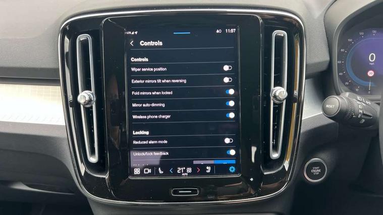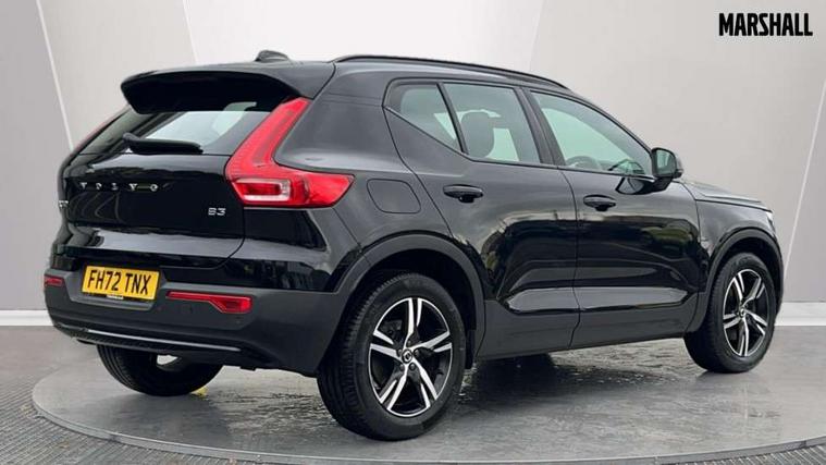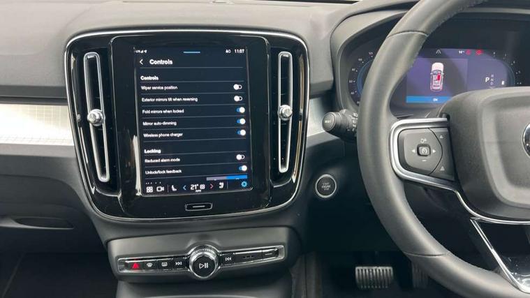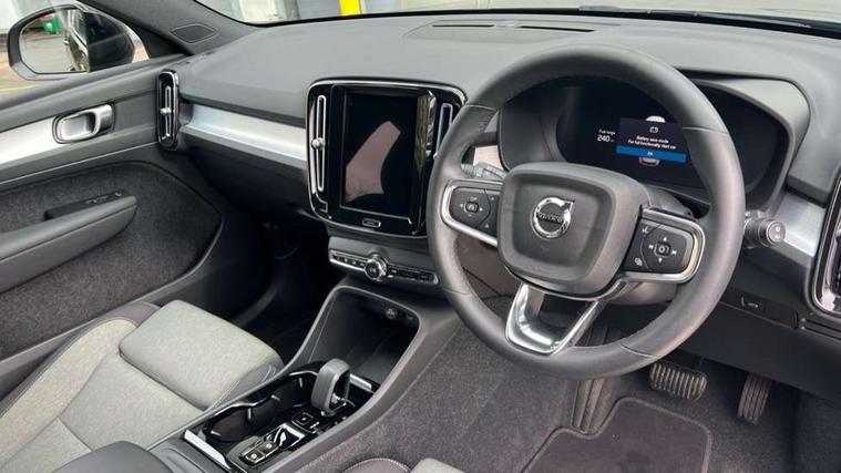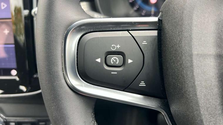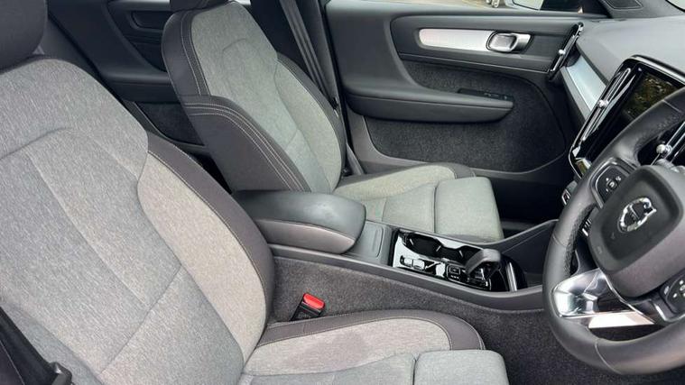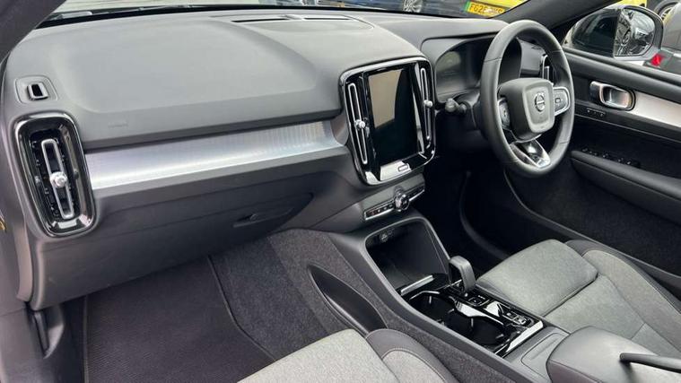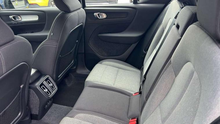 12.3" Progressive Driver Display, 9" centre console portrait touch screen, Adjustable steering wheel force, Bluetooth hands free telephone kit, Cruise control, Driver awareness - blind spot information system with steer assist, cross traffic alert with autobrake, rear collision warning and migitation, E-call, Front park assist, Google automatic services - Nav with google maps, apple carplay/android auto, voice recognition with google assistant, Hands free power tailgate, Lane keep assist with driver alert control, Oncoming Lane Mitigation, Rear park assist, Rear park assist camera, Speed limiter, Speed sensitive steering, Wireless/Inductive Mobile Phone Charging, Dynamic chassis, DAB Digital radio, High performance sound, 8 speakers/250W, front USB and 2 rear type C USB, Steering wheel mounted remote controls, Adaptive brake lights with high level LED brake lights, Auto dimming feature for exterior door mirrors, Auto dimming interior mirror, Automatic headlamp levelling, Automatic LED Headlights + Active high beam incorporating daytime running lights, Front aluminium tread plates, Front and rear electric windows, High gloss black front and rear skid plate, High gloss black mesh front grille with high gloss black surround, High gloss black window trim, Home safe and approach lighting, Integrated roof rails in high gloss black, LED front fog lights, Puddle lights, Rain sensor with automatic windscreen wiper activation, Rear side wing doors, Rear wiper, Roof antenna, Roof spoiler, Visible VIN plate, 12V socket in front tunnel console and luggage compartment, 2-Zone electronic climate control with CleanZone air quality system and pollen filter, 3 seat bench in 2nd row, 3 Spoke tailored steering wheel with chrome trim, 60/40 versatile split folding rear seat, A-pillar parking ticket holder, Ambient front door and instrumental panel lighting, Centre console cupholders and storage, Flexible load floor and grocery bag holder, Floor mats, Front door pocket and front cupholder illumination, Front footwell illumination, Front headrests, Front reading light and theatre lighting, Front seat cushion extensions, Front tunnel pocket, Glovebox bag hook, Heated front seats, Height adjustable passenger seat, Height/reach adjustable steering column, High gloss centre tunnel deco, Illuminated glovebox, Illuminated luggage compartment, Illuminated tailgate, Illuminated vanity mirrors, Integrated waste bin, Isofix attachments on outer rear seats, Load protection net, Multi directional lumbar support, Power driver seat with memory + exterior mirrors memory, Rear armrest / integral cup holders / storage tray, Rear headrests, Rear reading and courtesy lights, Single front passenger seat, Underfloor cargo storage, Climate pack without heated front seats - XC40, 3x3 point rear seatbelts, City safety with steering support with Pedestrian + cyclist + front collision warning with full auto brake and rear auto brake, Drivers knee airbag, Dual stage driver/passenger airbags, Electronic parking brake with auto hold, First aid kit, Front and outer rear seatbelt reminder and pretensioners, Front seats SIPS airbags, Hill descent control, Hill start assist, Inflatable curtain, Passenger airbag cut-off device, Power child locks on rear doors, Road sign information display, Run off Road Mitigation, Run off Road Protection, SIPS (Side Impact Protection System), Slippery road and hazard light alert, Stability and Traction Control with Spin control, Engine Drag Control and Corner Traction Control, Tyre pressure monitoring system, Vehicle deceleration control with Anti-lock Brake System, Electronic Brake Distribution and Emergency Brake Assist, Warning triangle, WHIPS whiplash protection system - front, Anti-theft alarm including immobiliser/volume sensor + level sensor, Key integrated remote control central locking + fuel flap with deadlocking system and auto open/close power windows, Keyless drive includes keyless entry and keyless start, Locking wheel nuts,