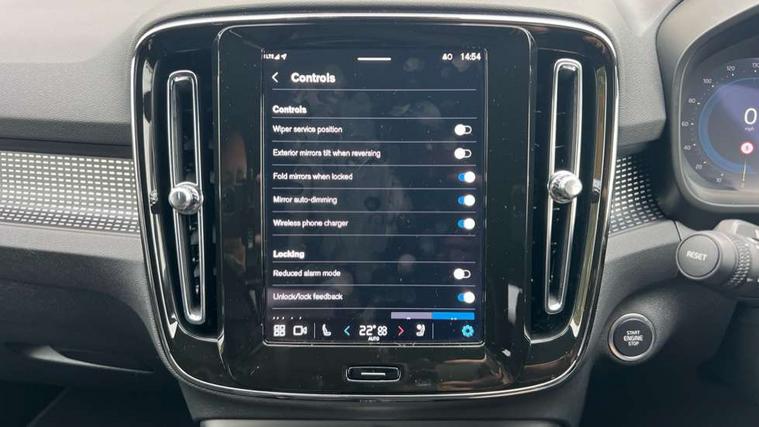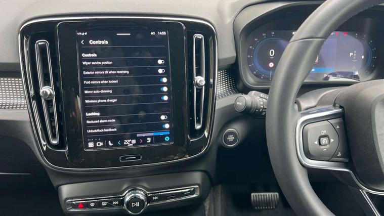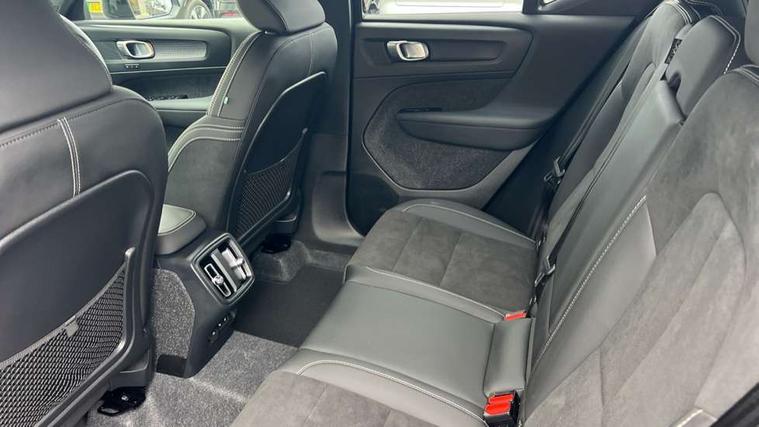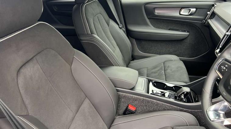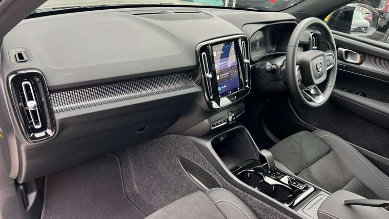 12.3" Progressive Driver Display, 9" centre console portrait touch screen, Adjustable steering wheel force, Android auto (Wired), Apple carplay (wired), Bluetooth handsfree system, Driver alert control, Driver assistance (pilot assist and adaptive cruise control), Driver awareness - Blind spot information system with steer assist, cross traffic alert with autobrake and rear collision warning and mitigation, E-call, Front park assist, Google automotive services - Enabled entertainment apps, navigation with google maps, voice recognition with google assistant, Hands free power tailgate, Intelligent speed assistance, Lane keeping aid, Oncoming Lane Mitigation, Rear park assist, Speed sensitive steering, Volvo cars services with app - Driving journal, emergency and breakdown call, engine remote start, remote door locking/unlocking and vehicle dashboard, Wireless/Inductive Mobile Phone Charging, Automatic transmission with start/stop and manual change functions, Dynamic chassis, DAB Digital radio, Steering wheel mounted remote controls, Adaptive brake lights with high level LED brake lights, Auto dimming feature for exterior door mirrors, Auto dimming interior mirror, Automatic headlamp levelling, Automatic LED Headlights + Active high beam incorporating daytime running lights, Colour coordinated auto folding and heated power door mirrors, Dark tinted windows - rear side windows and rear screen, Front aluminium tread plates, Front and rear electric windows, High gloss black front and rear skid plate, High gloss black front bumper deco, High gloss black front grille strikethrough and ironmark, High gloss black rear model, engine and volvo logo badges, High gloss black window trim, Home safe and approach lighting, Integrated roof rails in high gloss black, LED front fog lights, Puddle lights, Rain sensor with automatic windscreen wiper activation, Rear side wing doors, Rear wiper, Roof antenna, Roof spoiler, Visible VIN plate, 12V socket in front tunnel console and luggage compartment, 2-Zone electronic climate control with CleanZone air quality system and pollen filter, 3 seat bench in 2nd row, 3 Spoke tailored steering wheel with chrome trim, 60/40 versatile split folding rear seat, Centre console cupholders and storage, Charcoal headlining, Connect textile/microtech upholstery, Flexible load floor and grocery bag holder, Floor mats, Front cabin courtesy lights, Front door pocket, front cupholder, ambient front door, rear reading, rear courtesy, instrument panel and tailgate lighting, Front footwell illumination, Front headrests, Front reading lights, Front seat cushion extensions, Front side step illumination (under door), Glovebox bag hook, Heated front seats, Height adjustable passenger seat, Height/reach adjustable steering column, High gloss centre tunnel deco, Illuminated glovebox, Illuminated luggage compartment, Illuminated vanity mirrors + ticket holder, Integrated waste bin, Isofix attachments on outer rear seats, Load cover, Load protection net, Multi directional lumbar support for driver and passenger seat, Power driver seat with memory + exterior mirrors memory, Rear armrest with cupholders, Rear headrests, Single front passenger seat, Underfloor cargo storage, Climate pack without heated front seats - XC40, 3x3 point rear seatbelts, City safety with steering support with Pedestrian + cyclist + front collision warning with full auto brake and rear auto brake, Driver and passenger airbags, Drivers knee airbag, Electronic parking brake with auto hold, First aid kit, Front and outer rear seatbelt reminder and pretensioners, Front seats SIPS airbags, Hill descent control, Hill start assist, Inflatable curtain, Passenger airbag cut-off device, Power child locks on rear doors, Road sign information display, Run off Road Protection, SIPS (Side Impact Protection System), Slippery road and hazard light alert, Stability and Traction Control with Spin control, Engine Drag Control and Corner Traction Control, Tyre pressure monitoring system, Vehicle deceleration control with Anti-lock Brake System, Electronic Brake Distribution and Emergency Brake Assist, Warning triangle, WHIPS whiplash protection system - front, 2 x Key integrated remote control central locking including with deadlocking system and auto open/close windows, Anti-theft alarm including immobiliser/volume sensor + level sensor, Keyless drive includes keyless entry and keyless start, Locking wheel nuts, 20" 5 spoke high gloss black alloy wheels,