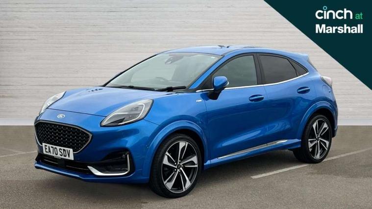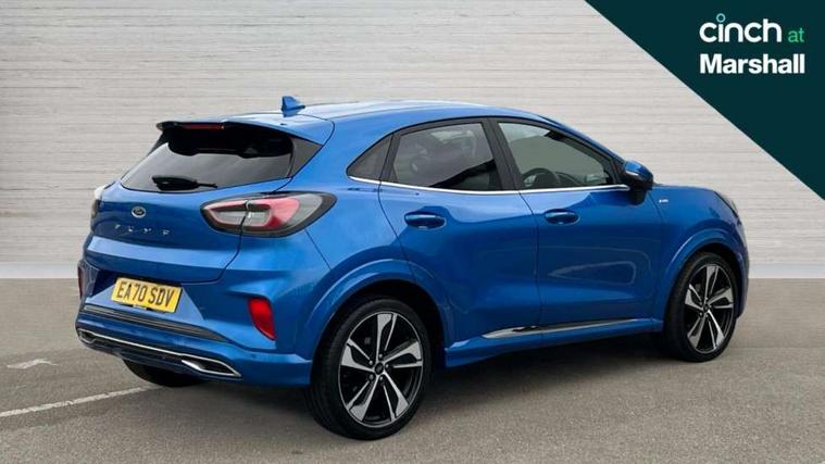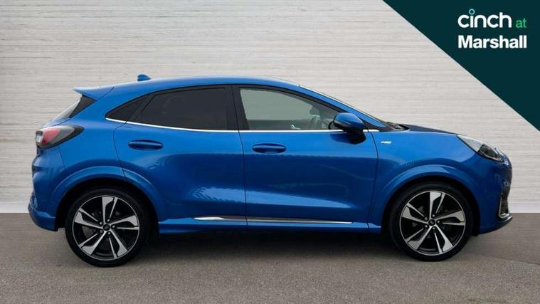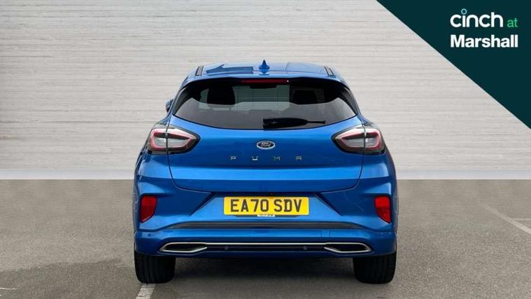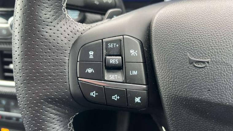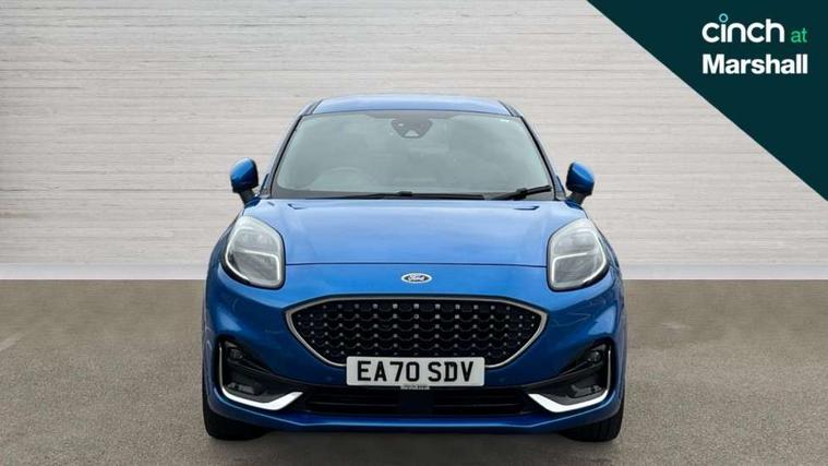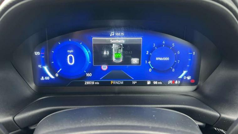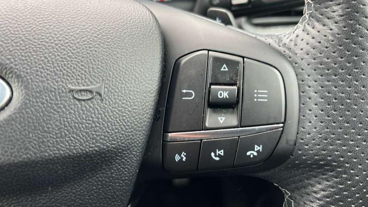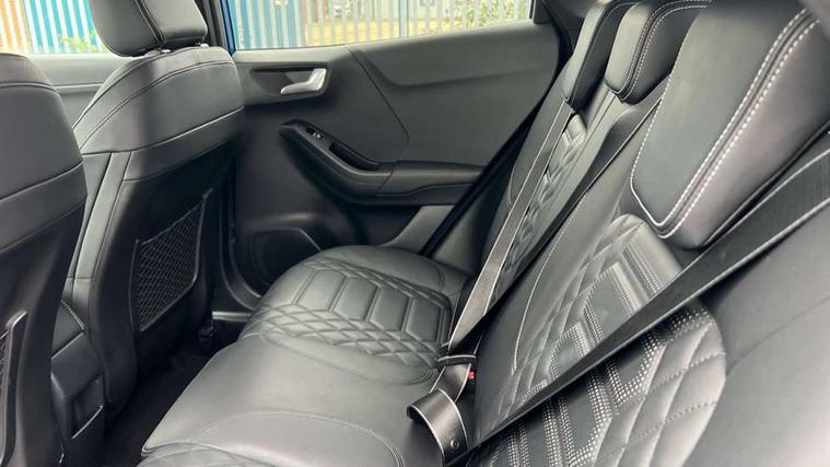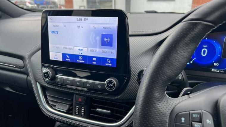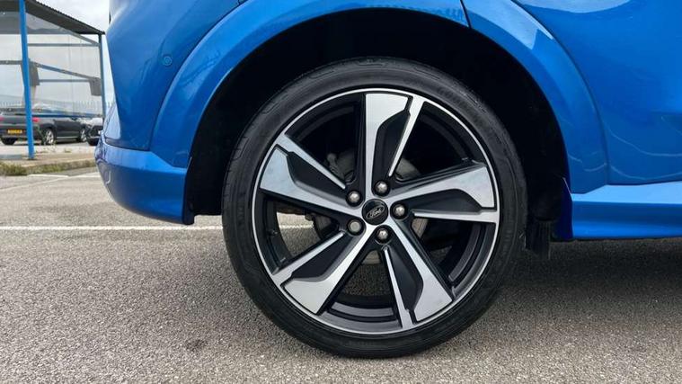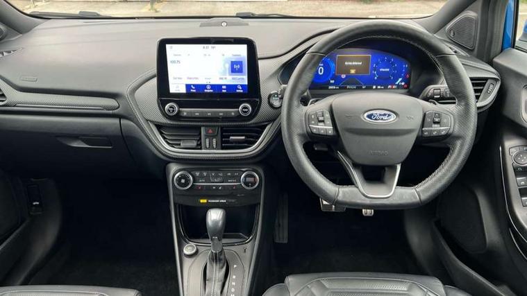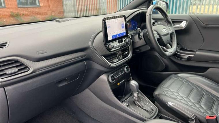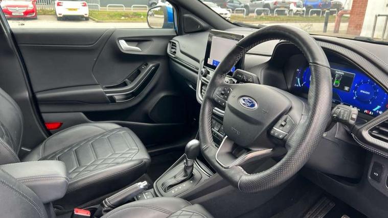 Ford easy fuel, Full digital 12.3" instrument cluster, Lane keeping aid with lane departure warning, Power assist steering, Rear parking sensor, Selectable drive modes(Normal, sport, Eco, trail, slippery), Wireless charging pad, Automatic headlights with rain sensing wipers and auto high beam, Body coloured door mirrors, Bodyside chrome styling, Fixed LED headlamps, Front fog lights with cornering lights and LED rear lamps, Gloss black with chrome elements on front and rear bumpers, High chrome waistline, LED daytime running lights, Power foldable heated door mirrors with puddle lamps, Privacy glass to side rear windows and tailgate glass, Quickclear heated windscreen, Rear wiper, ST-Line body kit with large rear spoiler wth sports suspension, Unique Vignale style upper grille and surround, Centre console with armrest and stowage, Ford megabox extended bootspace, Front and rear floor mats, Front and rear head restraints, Lumbar massage for driver and passenger, Manual air conditioning, Perforated leather flat bottomed steering wheel with metal grey stitching, Premium leather upholstery, Premium sensico wrapped instrument cluster, B&O Premium Audio system + Ford SYNC 3 navigation pack - Puma, Comfort pack - Puma, 3 rear seatbelts, Electronic stability control (ESC) and hill start assist, Pre-collision assist with autonomous emergency braking, pedestrian/cyclist detection & post-collision braking, Tyre pressure monitoring system (TPMS), Thatcham alarm, Carbon look interior deco spears,