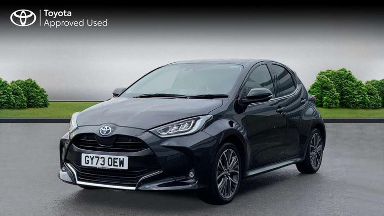 Adaptive cruise control, Adjustable speed limit with speed warning, Blind spot monitoring, Bluetooth connectivity, Colour binocular inspired displays with digital speedometer, E-call, Electric power steering, Hybrid energy display, Multi information display switches on steering wheel, Reversing camera, Smartphone integration with Apple CarPlay and Android auto, Tailgate, Touch 2 navigation system, Voice recognition, Vehicle Stability Control (VSC), 6 speakers, 9" HD multimedia display touch screen with Toyota smart connect, USB connection, Acoustic windscreen glass, Auto windscreen wipers, Automatic headlights, Automatically retractable door mirrors, Body coloured door mirrors, Electric adjustable heated door mirrors, Follow me home headlights, Front auto power windows with anti jam protection, Full LED rear lights, LED daytime running lights, LED front fog lights, LED front light guide, LED Headlights, LED High mounted stop lamp, LED Indicators, LED rear light guide, Manual headlight levelling, Painted chequered front grille, Rain sensor, Rear auto power windows with anti jam protection, Rear privacy glass, Rear side wing doors, Rear spoiler, Rear wiper, Satin lower front grille, Shark fin antenna, Turning signal integrated indicators in door mirrors, Variable front intermittent wipers, 3 adjustable rear headrests, 3 seat bench in 2nd row, 3 spoke leather steering wheel, 60/40 split folding rear seat, Active headrests, Adjustable boot height, Coat hooks in rear grab handles, Cup holders (2 front & door), Data Communication Module (DCM) connected services, Dual zone automatic air conditioning, Fabric seat with partial synthetic leather upholstery, Front armrest, Front sport seats, Glovebox, Grey roof lining, Height adjustable driver's seat, Height adjustable passenger seat, Isofix seat fixing, Leather gearshift, Map pockets on the backs of the front seats, Pollen filter, Shopping bag hooks, Single front passenger seat, Tilt/telescopic steering column, Parking pack - Yaris, 3 point seatbelts on all rear seats, ABS+EBD+Brake assist, Electronic parking brake, Emergency brake light system (EBS), Front passenger airbag on/off switch, Front seatbelt reminder, Hill start assist control (HAC), Rear child proof door locks, Rear seat belt reminder, Supplemental Restraint System (SRS) 8 airbags: Driver & passenger's airbags, dual side curtain airbags, side impact airbags, front centre airbag, Toyota Safety Sense 2, Precollison + Night time Pedestrian & Cyclist Detection, Lane Trace Assist, Auto High Beam, Intelligent ACC & Road Sign Assist, Tyre pressure warning system, 2x Master key, Alarm/immobiliser, Keyless smart entry with push button start, Remote AC via MyT, Remote locking via MyT, Remote powered central double locking doors, Satin chrome interior styling, Soft touch instrument panel, Space saver spare wheel,