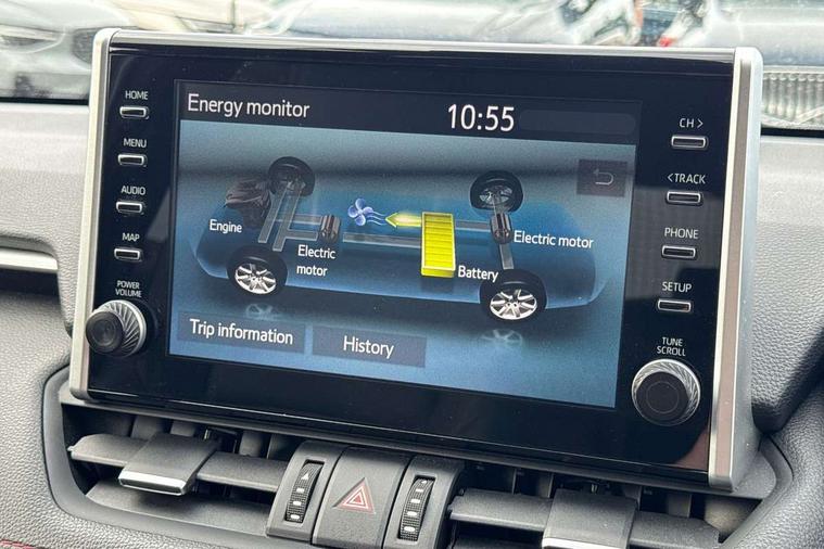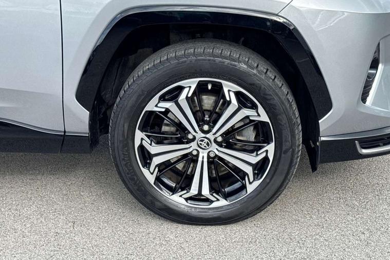 7" Coloured TFT multi informational display, Analog tachometer, Apple car play and Android auto, Blind spot monitoring with rear cross traffic alert, Bluetooth system, Cyclist Detection, Day and night time pedestrian detection, Digital speedometer, Drive mode selector, Driver attention alert system, eCall emergency call system, ECO-driving indicator, Electric power steering, EV audible alert, Front parking sensors, Hybrid system indicator, Intelligent adaptive cruise control, Lane departure alert with steering control, Lane trace assist, Lights on warning, Memory on adjustable speed limiter, My T Connected services, Power boot opening and closing, Push button start, Rear parking camera, Rear parking sensors, Remote boot door release in cabin, Remote boot door release in key, Road sign assist - RSA, Smartphone integration, Touch 2 Go navigation system, Traffic sign recognition, Trip computer, Voice control system, Wireless Mobile Phone Charger, 6.6 kw fast charger, 7.5m cable with home charging plug, Vehicle Stability Control (VSC), 2x USB sockets in front armrest, 2x USB sockets in rear, 6 speakers, 9" Multimedia display, Auxiliary socket for external MP3 player, DAB audio, Toyota touch 2 multimedia system, USB in front centre console, Anti-jam protection on power windows, Auto high beam, Auto up and down function on all power windows, Automatic headlamp levelling, Automatic headlights, Automatic wipers, Automatically retractable door mirrors, Bi-tone black roof, Black door mirrors, Black door moulding, Black front bumper, Black front grille, Black front under-run, Black rear bumper, Black rear spoiler, Black rear under-run, Black roof rails, Black Shark-fin antenna, Body colour door handles, Chrome window surround, Door mirror puddle lights, Dual exhaust pipes, Electric adjustable door mirrors, Emergency brake-light signal (EBS), Follow me home headlights, Framed electrochromatic rear view mirror, Front fog lights, Heated door mirrors, Honeycomb upper front grille, LED daytime running lights, LED dual beam projector headlights, LED front light guide, LED High mounted stop lamp, LED rear lights, Power front windows, Power rear windows, Privacy glass, Rear side wing doors, Rear windscreen defogger, Rear wiper, Retractable tonneau cover, Trailer Sway Control, Turning signal integrated indicators in door mirrors, 1.5L front and rear bottle holder, 12V socket in boot, 12v socket in front, 220v power socket in boot, 2x Rear coat hooks, 3 rear headrests, 3 seat bench in 2nd row, 60/40 split fold rear seat back with toyota easy flat system, Adjustable speed limiter switch on steering wheel, Array microphone, Black roof lining, Blue ambient lighting on front cupholders and open tray on passenger dashboard, Boot light, Clean air filter, Driver and front passenger personal light, Driver and front passenger Whiplash Injury Lessening seats, Driver and passenger seatback pockets, Driver and passenger sunvisors with illuminated vanity mirrors, Dual sided deck board in boot, Dynamic sports seats, Floor mats, Folding rear centre armrest, Front centre armrest, Front cupholders, Front footwell lights, Front headrests, Front/rear roof mounted assist grips, Heated driver and front passenger seats, Heated rear seats, Illuminated entry system, Isofix child seat preparation, Leather gearshift, Lockable glovebox, Manual telescopic and tilt 3-spoke nappa leather steering wheel, Manually reclining and sliding front passenger seat, Multimedia switches on steering wheel, Pollen filter, Power height-adjustable sliding reclining and lumbar support for driver seat, Rear console box, Rear door armrests with cupholder, Rear passenger air vents, Rear view display in display audio screen with dynamic guide lines, Reclining rear seats, Remote dual zone automatic air conditioning, Satin chrome interior door handles, Silver gear shift surround on centre console, Sunglasses holder, Synthetic leather upholstery, Telephone and voice recognition switches on steering wheel, Under floor storage in luggage area, 3x3 point rear seatbelts, ABS/EBD, Acoustic vehicle alerting system, Adjustable front driver and passenger seat belt extender, Brake assist function, Brake hold function, Child proof door locks, Collision mitigation braking system, Driver/Front Passenger airbags, Driver/front passenger side airbags, Drivers knee airbag, Electronic parking brake, Electronic Stability Programme (ESP), Front and rear curtain airbags, Front and rear seatbelt reminder, Front passenger airbag detector, Hill start assist, Passenger airbag cut-off device, Pedestrian detection, Pre collision system, Seatbelt pretensioners with load limiters, Toyota safety sense, Traction control, Tyre pressure warning, Glass-breaking alarm sensors, Immobiliser, Intrusion alarm, Light - on and Key in reminder, Motion sensor alarm, Remote central locking, Smart entry + Smart start, Speed sensitive auto door locking, Tilt detection sensors, Black centre air vent surround, Black centre console, Soft-touch black upper dashboard with silver insert, Soft-touch texture on lower dashboard, 19" 5 spoke black machined face alloy wheels, Tyre repair kit,