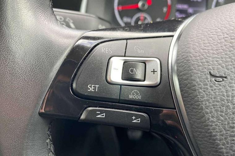 Cruise control + speed limiter, Digital clock, Driver alert system, Emergency call service, Multifunction computer plus, Power assisted speed sensitive steering, Speedo and rev counter, electronic odometer, trip, service interval display and fuel gauge, Start/stop system, Volkswagen connect, Warning buzzer and light for front seatbelts unfastened, Wireless app connect, Battery regeneration during braking, Galvanished body, Diversity antenna for FM reception, Front and rear 6 speakers, Black grille with chrome surround, Black radiator grille with chrome louvres, Body colour bumpers, Body colour door handles, Body colour rear spoiler, Body coloured side sills, Electric front windows, Electrically adjustable and heated door mirrors with reverse activated kerb view adjustment on passenger's side, Front windscreen washers and wipers with 4 speed intermittent delay, Heated rear window with auto timer, High level 3rd brake light, LED daytime running lights, LED rear number plate lights, Rear electric windows, Rear windscreen washer and wiper with interval delay, reverse activated, 2 bag hooks in luggage compartment, 2 front and 2 rear reading lights, 2 front cupholders and 12 V socket with cover, 3 rear head restraints, 4 grab handles, 60/40 split folding rear seat, Centre console storage with open storage compartment, Chrome interior door handles, Driver and front passenger seat height adjustment, Driver and front passenger sunvisors with illuminated vanity mirrors, Dust/pollen filter, Folding rear seat backrest, Front head restraints, Front seat backrest storage pockets, Gear lever gaiter in black trim surround, Glovebox, Handbrake grip button in chrome effect, Height/reach adjustable steering column, Instrument lighting, adjustable panel illumination, Interior light with delay, Isofix Preparation 2 Rear child seats, Leather gear knob and handbrake grip, Leather multifunction steering wheel, Luggage compartment cover, removable, Luggage compartment lighting, Luggage compartment with variable load floor, Storage compartment in front doors, Storage compartment in rear doors, Storage compartment under front seats, Sunglasses holder, 3 point height adj front seatbelts + pretensioners, 3x3 point rear seatbelts, ABS, Automatic post collision braking, Driver/front passenger airbag, Drivers and front passengers safety optimised head restraints, ESP with EDL + ASR, Front and rear passenger curtain airbags, Front disc brakes and rear drum brakes, Front passenger airbag deactivation, Front seat side impact airbags, Hill hold control, Hydraulic Brake Assist (HBA), Single tone horn, Tyre pressure monitoring system, Alarm with interior protection and deactivation via infotainment system, Electronic engine immobiliser, Remote central locking with 2 remote folding keys, Air vents in High gloss black, Limestone grey decorative inserts,