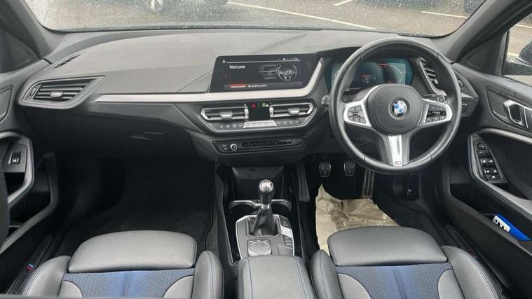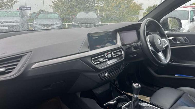 Active guard plus, Attentiveness assist, BMW ConnectedDrive online services, BMW Teleservices, Check Control warning system for monitoring of lights and door/luggage compartment open warning, Cruise control with brake assist, Eco pro mode, Front axle single joint with specific axle kinematics to minimise drive influences on steering + provide increased rigidity agile driving behaviour, Integrated owners handbook, Lane departure warning system, Oil sensor for level and grade, On board computer, Optimum shift indicator, Personal Profile, Pull away assistant, Rigidly mounted rear subframe - Multi link construction with separate spring / damper configuration and excellent driving characteristics, Speed limit Info including no-overtaking indicator, Speed limiter, Aluminium lightweight construction, Anti roll bar front and rear, Balancer shaft, Double VANOS twin scroll turbocharging system, Drive Performance Control, Electronic differential lock, High precision injection, M sport suspension, Petrol Particulate Filter, Twin tube gas filled shock absorbers with degressive characteristic curve, VALVETRONIC engine management, DAB Digital radio, Auto dimming rear view mirror, Automatic headlight beam throw control, Automatic windscreen wipers and automatic headlight, Body colour door handles, Body colour mirror caps, Body colour roof trims, Chrome 'M' logo side designation, Chrome exhaust twin tailpipes round 90mm in left, Chrome kidney grille frame with Satin Aluminium struts, Direction indicator side lights in exterior mirrors, Fading support, Folding side mirrors with auto dimming/folding wing mirrors with auto dimming, Follow me home headlights, Front and rear bumper system with replaceable deformation elements, Front and rear electric windows with open and close fingertip control, anti trap facility and comfort closing, Front door sill finishers in black plastic with M designation in metallic look, Green tinted heat protection glazing, Heated, electrically adjustable exterior mirror aspheric on driver side, convex on passenger side, High gloss shadowline window frame, Recess cover mirror frames and B/C pillar embelisher trim, High level third brake light, Integrated front windscreen with washer jets, LED daytime running lights, LED eyebrow turn indicators, LED front fog lights, LED Headlights, Lightweight engineering, Matt black air guide grilles, Matt black wheel arch trim, Model designation on electric bootlid, Nearside reverse light in rear light cluster, Preparation for high beam assistant, Rear fog lights, Rear side wing doors, Rear window wiper, Shark fin antenna, Trailer stabilisation logic, Visible VIN plate, Welcome lighting, 12V power socket in front centre console with blanking plug, 3 rear seat head restraints, 3 seat bench in 2nd row, 3 spoke sports leather steering wheel in black leather with black stitching and decorative finisher in pearl chrome, specific M badge + leather knob, Anthracite headlining, Black boot net with lashing eyes, Cargo function on 2nd seat row, Child seat ISOFIX attachment for two outer rear seats and front passenger seat with anchorage points, Conditioned based service, Driver and front passenger seat heating, Folding rear clothes hook, Four grab handles integrated in roof lining, Front and rear door pockets with bottle holders, Front and rear side armrest integrated into door trim, Front armrest, Front sports seats, Gearshift lever with M designation, Glove compartment, Height adjustable front head restraints, Luggage compartment for bag hooks on left and right, foldable luggage compartment liner and four lashing eyelets, Manual adjust steering wheel, Multi-function controls for steering wheel, Single front passenger seat, Storage compartment in centre console, Sun visors with vanity mirrors and insert tab, Two front centre console cupholders, Two zone automatic air conditioning, Velour floor mats, Additional interior lighting pack - 1 Series, BMW live cockpit professional pack- 1 Series, Connected pack professional - 1 Series, Interior lights pack - 1 Series, M Sport exterior styling aerodynamics pack - 1 Series, 2 tone horn, 3 point seatbelts on all seats, front pyrotechnic belt tensioners, stopper and belt force limiters, rear coded belt buckles, Airbags - Front driver/passenger, front and rear curtain head protection, front side, manual deactivation of front passenger airbag, Anti lock braking system (ABS) with brake assist, BMW emergency call, Brake drying, Braking readiness, Child proof locking system in rear door, City braking function, Comfort modes, Cornering brake control, Crash sensor activating central locking release, hazard warning lights, fuel cut off, interior lighting + activation of safety battery terminal clamp, Driver and front passenger seat belt security check, Dynamic stability control + (DSC+), Dynamic Traction Control - DTC, Electrically operated hand brake, Front and rear disc brakes, Seatbelt warning, Side impact protection, Tyre pressure monitoring system, Warning triangle and first aid kit, Central locking switch for all doors, fuel filler cap and luggage compartment, Deadlocking function system to all doors, Drive away locking system on all doors and luggage compartment with de-activated in iDrive settings, Locking wheel bolts, Remote control with integrated key with High-gloss Black inlay and M designation and 1 button for open/ close lock, window, open luggage compartment, Start/stop button illuminated in centre console with keyless engine start and auto start stop deactivation button, Thatcham Cat.1 alarm and immobiliser, Wheel slip limitation close to the actuator (ARB), Contrast stitching on instrument panel, Electrically powered 12V compressor, Reduced rolling resistance tyres,