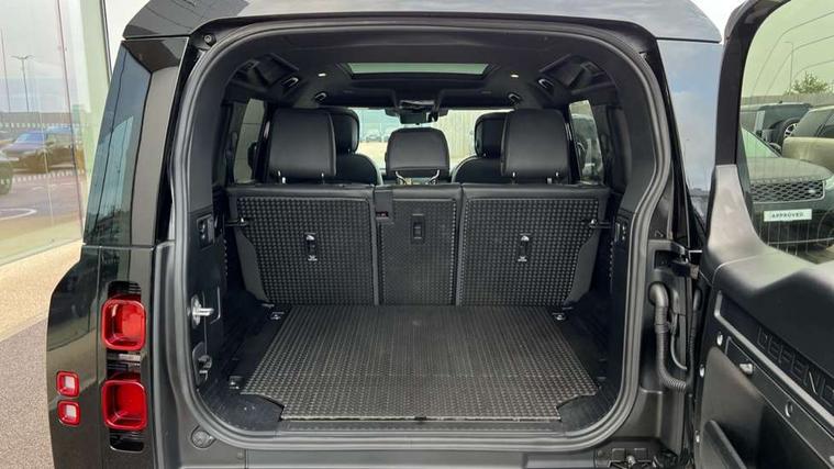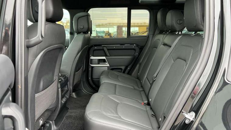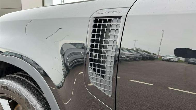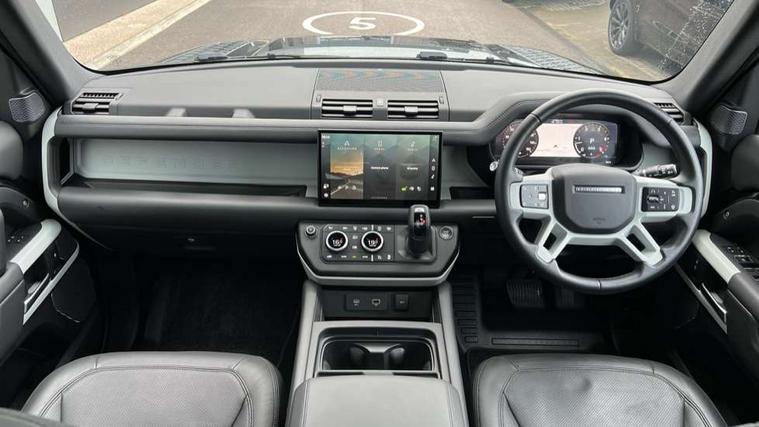 11.4" touchscreen, 360 degree parking aid, 3D Surround Camera with 360 View, 180 Rear View, Front Traffic Detection, Forward Vehicle Guidance, Tow Hitch Assist and clear sight Ground View, Adaptive cruise control, Android Auto, Apple CarPlay, Assisted tailgate with soft close, Blind spot assist, Bluetooth system, Brake pad wear indicator, Clear exit monitor, Connected navigation pro, Driver condition monitor, Electric power assisted steering (EPAS), Interactive driver display, Lane keep assist, Less CE Device Charging, Push button start, Rear collision monitor, Rear traffic monitor, Traffic sign recognition with adaptive speed limiter, Trip computer, Wade Sensing, 8 speed automatic transmission, All wheel drive system, Twin speed transfer box, DAB Radio (Digital Audio Broadcasting), Meridian 400w sound audio system with 11 speakers and subwoofer, Pivi pro connected, Automatic headlight levelling, Automatic headlights, Centre high mounted stop light, ClearSight interior rear view mirror, Electric heated/power fold door mirrors with approach lights and auto dimming driver side, Electric windows with one touch open/close and anti-trap, Follow me home lighting, Front fog lights, Heated rear window with timer, Heated windscreen, LED tail lights, Puddle lights, Rain sensing windscreen wipers, Rear fog lights, Rear side wing doors, Rear wiper, Side hinged tailgate, Trailer stability assist, 12V power socket in loadspace, 14 way heated and cooled electric adjustable memory front seats with 4 way manual headrests, 3 seat bench in 2nd row, Alpine lights, Configurable cabin lighting, Durable rubber cabin flooring, Durable rubber loadspace flooring, Electric reach + rake adjustable steering column, Extended leather upgrade, Footwell lights, Front passenger isofix child seat attachment, Heated steering wheel, LESS Wireless charger, Loadspace Hook, Multifunction steering wheel, Overhead stowage for sunglasses, Premium cabin lighting, Rear headrests, Rear ISOFIX, Rear reading lights, Storage glovebox, Sunvisors with illuminated vanity mirrors, Two front passenger seat, Online pack with data plan - Defender, 6 x 3 point seatbelts, ABS, Brake hold function, Cornering brake control (CBC), Customer configurable autolock, DSC - Dynamic Stability Control, EBD - Electronic brakeforce distribution, Electric parking brake (EPB), Emergency brake assist, Emergency braking, ESP + traction control, Front airbags with passenger seat occupant detector, HDC - Hill descent control, Hill launch assist, Low traction launch, Power operated child locks, Remote for (e-Call, Optimised assistance call, InControl app, Climate, beep and flash and door), RSC - Roll stability control, Seat belt reminder, TPMS (Tyre pressure monitoring system), Alarm, Immobiliser, Intrusion sensor, Keyless entry, Locking wheel nuts,