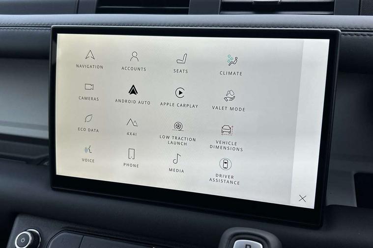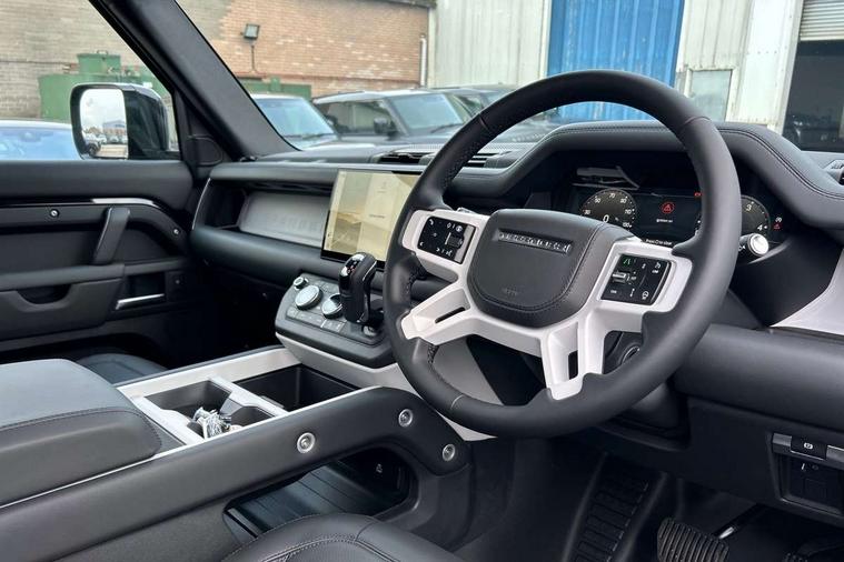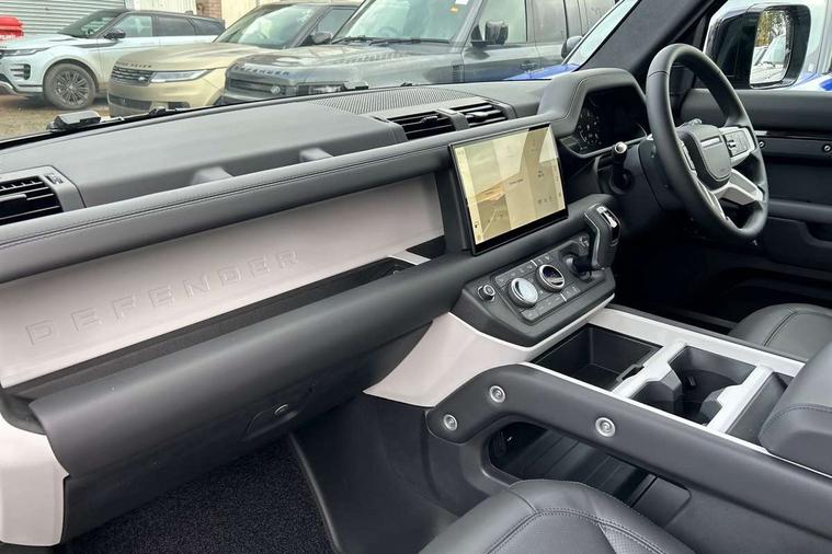 1 x USB-C (power only) & 1 x USB-C (power & data) in Row 1, 2 x USB-C in Row 2, 11.4" touchscreen, 360 degree parking aid, 3D Surround Camera with 360 View, 180 Rear View, Front Traffic Detection, Forward Vehicle Guidance, Tow Hitch Assist and clear sight Ground View, Adaptive cruise control, Android Auto, Apple CarPlay, Blind spot assist, Bluetooth system, Brake pad wear indicator, Clear exit monitor, Connected navigation pro, Driver condition monitor, Electric power assisted steering (EPAS), Interactive driver display, Lane keep assist, Push button start, Rear collision monitor, Rear traffic monitor, Traffic sign recognition with adaptive speed limiter, Trip computer, Wireless device charging, 8 speed automatic transmission, All wheel drive system, Twin speed transfer box, DAB Radio (Digital Audio Broadcasting), Meridian 700w surround sound audio system with 15 speakers, Pivi pro connected, Automatic headlight levelling, Automatic headlights, Black exposed rear recovery eyes, Body coloured bonnet, Centre high mounted stop light, Electric heated/power fold door mirrors with approach lights and auto dimming driver side, Electric windows with one touch open/close and anti-trap, Follow me home lighting, Front fog lights, Heated rear window with timer, Heated windscreen, Illuminated metal treadplates with brand name script, LED tail lights, Matrix LED headlights with signature DRL, Panoramic rear side glass, Privacy glass, Puddle lights, Rain sensing windscreen wipers, Rear fog lights, Rear wiper, Side hinged tailgate, Sliding panoramic roof, Standard tail door, Trailer stability assist, X-Dynamic badge, 12V power socket in loadspace, 3 seat bench in 2nd row, Alpine lights, Configurable cabin lighting, Durable rubber cabin flooring, Durable rubber loadspace flooring, Electric reach + rake adjustable steering column, Electrically adjustable steering column, Extended leather upgrade, Flat load space floor tray, Footwell lights, Front head restraints, Heated steering wheel, Loadspace cover, Loadspace Hook, Manual Tip & Slide front passenger seat, Multifunction steering wheel, Overhead stowage for sunglasses, Rear headrests, Rear ISOFIX, Rear reading lights, Row 2 seats with forward folding seat base, Single front passenger seat, Soft close tail door, Standard seat configuration, Storage glovebox, Sunvisors with illuminated vanity mirrors, Twin front cupholders, Non-smoker package, Online pack with data plan - Defender, 5 x 3 point seatbelts, ABS, Brake hold function, Cornering brake control (CBC), Customer configurable autolock, Driver and passenger airbags, DSC - Dynamic Stability Control, EBD - Electronic brakeforce distribution, Electric parking brake (EPB), Emergency brake assist, Emergency braking, ESP + traction control, Front airbags with passenger seat occupant detector, HDC - Hill descent control, Hill launch assist, Low traction launch, Remote for (e-Call, Optimised assistance call, InControl app, Climate, beep and flash and door), RSC - Roll stability control, Seat belt reminder, TPMS (Tyre pressure monitoring system), Alarm, Immobiliser, Intrusion sensor, Keyless entry, Locking wheel nuts, Secure tracker pro,