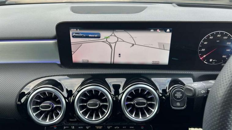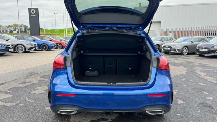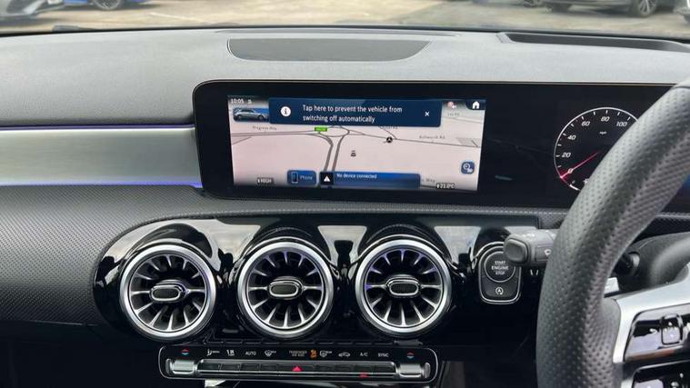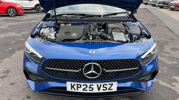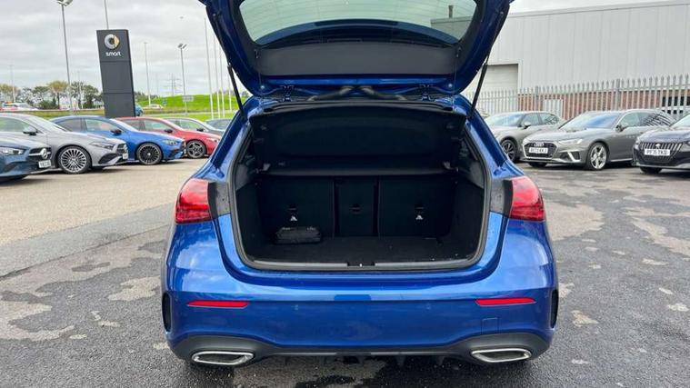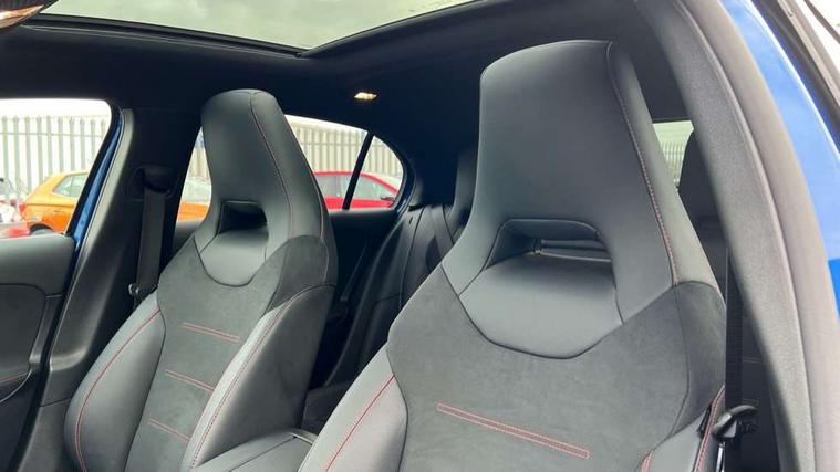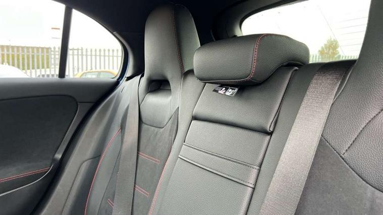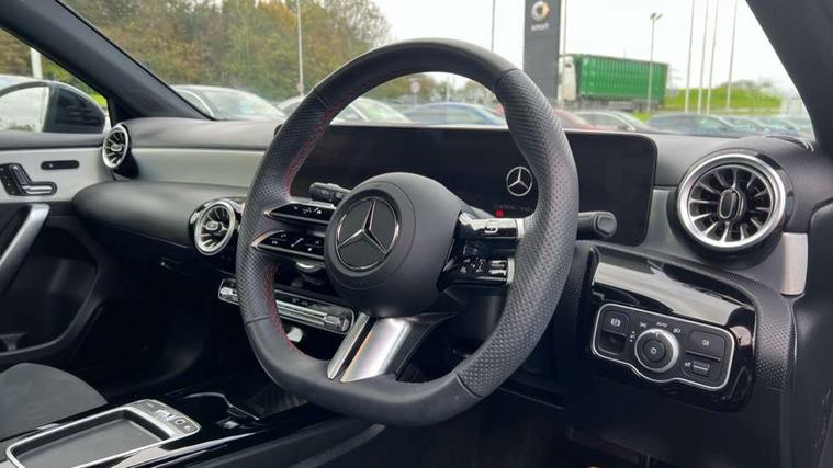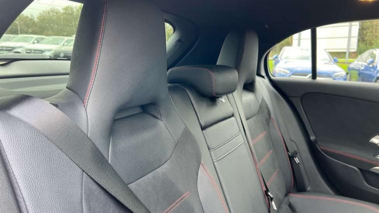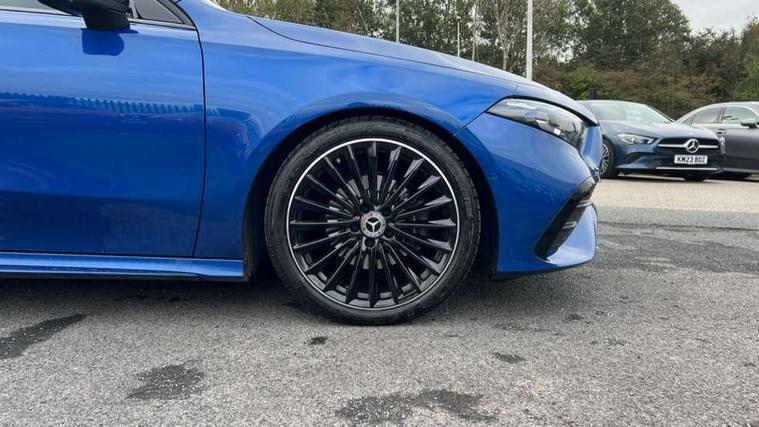 10.25 inch touchscreen central media display, 10.25" Digital instrument cluster display screen, Attention assist, Brake pad wear indicator warning light, Car wash mode, Direct steering, Direction indicators with lane change function, Dual bluetooth interfaces, DYNAMIC SELECT with a choice of driving modes (ECO, Comfort, Sport and Individual), ECO start/stop function, Engine start/stop button, Fingerprint scanner, Fluid level warning indicator for fuel, oil, coolant and washer fluid, Fluorescent jacket for driver, Hard-disk navigation, Head up Display, Hey Mercedes Voice activation, Lamp failure indicator, Mercedes me connect including emergency call system, accident recovery, breakdown and maintenance management, Mercedes me remote services, Outside temperature gauge, Owners manual in English, Pre-installation of private car share, Remote boot closing, Service indicator (ASSYST), Smartphone integration with Apple CarPlay and Android auto, Speed sensitive power steering, Tailgate, Traffic sign assist, Trip computer in multifunction display with current consumption indicator, Wireless charging, Lowered comfort suspension, DAB Digital radio, MBUX multimedia system, Mercedes Benz advanced sound system (225 W) with 10 speakers, 1 central speaker, speakers on doors, a tweeter on door, one sub woofer + boost amplifier, 4 Electric Front and Rear windows, Adaptive brake lights, AMG body styling - AMG front apron with front splitter and AMG rear apron and visible exhaust tailpipe trim elements, Body colour bumpers, Body colour door handles with chrome inserts, Body colour side skirt, Chrome beltline strips, Diamond radiator grille with pins in fine star pattern, Electric adjustable and heated door mirrors with integrated LED side indicators, Exhaust system with 2 visible tailpipe trim elements and rear apron, Headlamp assist automatic headlamp activation, Heated glass rear windscreen + timer control, LED daytime running lights, LED High level third brake light, LED tail lamp, Multibeam LED headlamps with adaptive highbeam assist and cornering function, Panoramic sliding sunroof, Privacy glass, Radio aerial, Rain sensing windscreen wipers with two sensitivity settings, Rear fog lights, Rear side wing doors, Rear windscreen wiper, 3 seat bench in 2nd row, 3 Spoke flat bottom leather multi function steering wheel with perforated leather in grip area, 40:20:40 split folding rear seats, Air conditioning - Two zone thermotronic luxury automatic climate control with display, AMG floor mats, Artico man-made leather/Microcut microfibre upholstery, Automatic child seat recognition sensor, Black air vents with surround in silver chrome, Black roof lining, Brushed stainless steel sports pedals with rubber studs, Electrically adjustable front memory seats including lumbar support and backrest inclination, Front centre armrest with stowage, Front seat backs luggage nets, Galvanished gear shift paddles on steering wheel, Height/reach adjustable steering column, Illuminated Mercedes Benz lettering front door sills with changeable cover, Interior lighting - 64 colour Ambient lighting, Interior mirror with reading lamps in black and frameless, Rear armrest with 2 cupholders, Rear head restraints, Seat occupancy sensor for front passenger seat, Single front passenger seat, Sports seats with integrated headrests, Stowage compartment in centre console with retractable cover, Sunvisors with illuminated vanity mirrors, Twin front cupholders, Light and sight package - A Class, Mirror package - A Class, Night pack - A Class, Parking pack with 360 degree camera - A Class, Seat comfort pack - A Class, USB pack plus - A Class, Winter pack - A Class, 3 rear 3 point seatbelts, ABS with Brake Assist, Active bonnet, Adaptive brake assist with hold function and hill start assist, Bonnet with power domes, Childproof locks manually operated for rear doors and electrically operated for rear power windows, Crash responsive emergency lighting, Driver and passenger head and side airbags, Drivers knee airbag, Dual stage driver/passenger airbags, Electronic parking brake, ESP curve dynamic assist, ESP with ASR, Exit warning, Front and rear seatbelt reminder, Grey seatbelts, ISOFIX and top tether child seat fixing points in two outer rear seats, Tyre pressure monitoring system, Warning triangle and first aid kit, Window airbags, Alarm system/interior protection/immobiliser, Guard 360 degree vehicle protection, Keyless entry lock/unlock, Keyless Go, Remote central locking and crash sensor with emergency opening function, Light longitudinal grain aluminium trim, 19" AMG multi-spoke light alloy wheels, aerodynamically optimised, painted in black with high sheen rim flange, Summer tyres, Tirefit sealant kit,