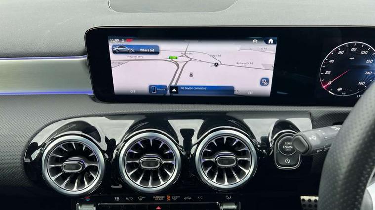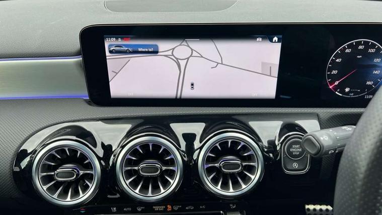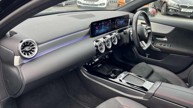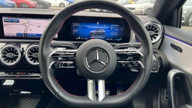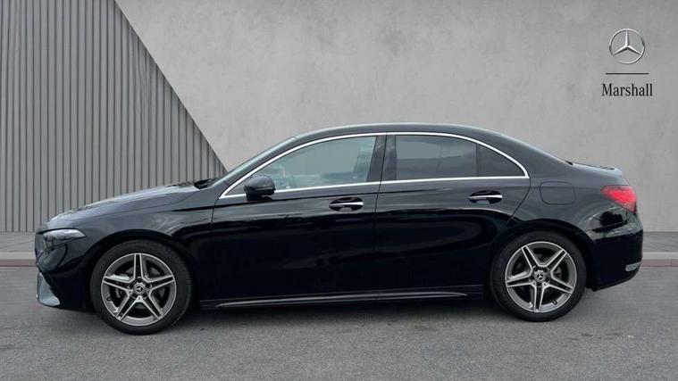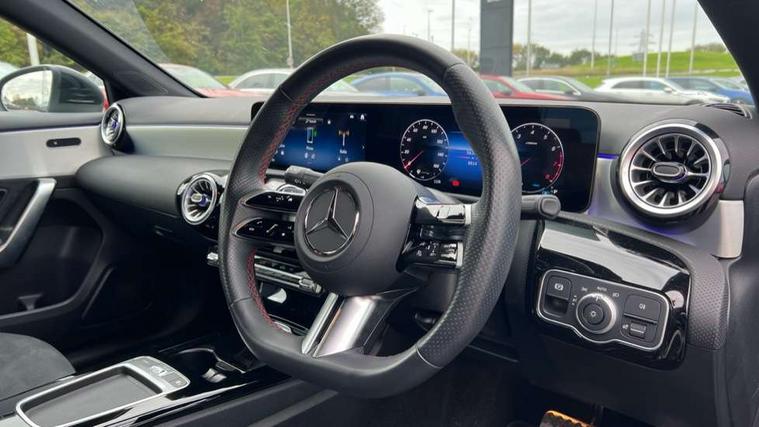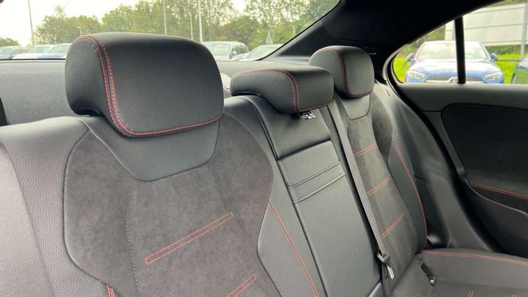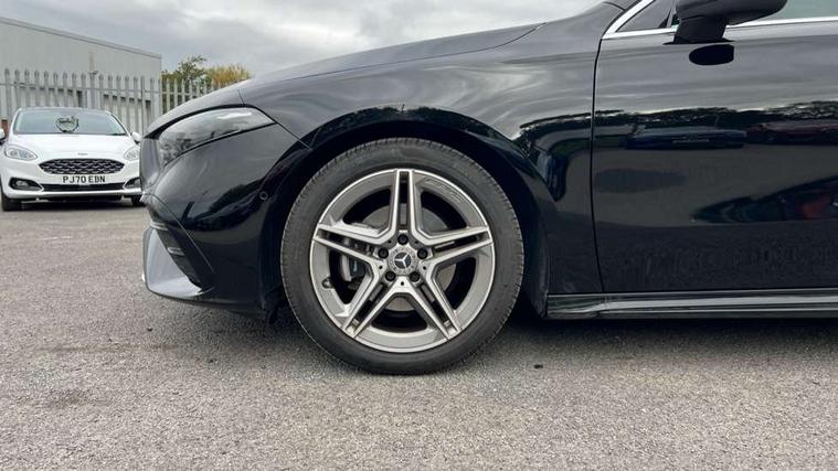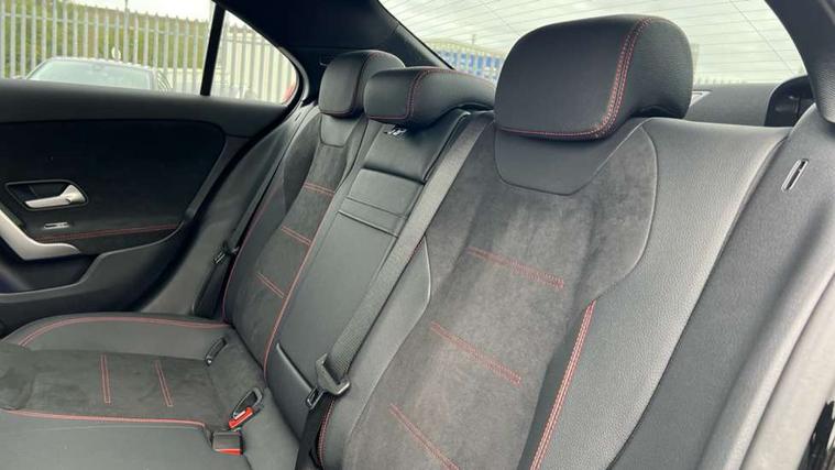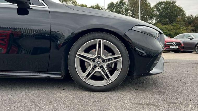 10.25 inch touchscreen central media display, 10.25" Digital instrument cluster display screen, Attention assist, Blind spot assist, Brake pad wear indicator warning light, Car wash mode, Cruise control + speed limiter, Direct steering, Direction indicators with lane change function, Dual bluetooth interfaces, DYNAMIC SELECT with a choice of driving modes (ECO, Comfort, Sport and Individual), ECO start/stop function, Engine start/stop button, Fingerprint scanner, Fluid level warning indicator for fuel, oil, coolant and washer fluid, Fluorescent jacket for driver, Hard-disk navigation, Hey Mercedes Voice activation, Lamp failure indicator, Lane keeping system, Mercedes me connect including emergency call system, accident recovery, breakdown and maintenance management, Mercedes me remote services, Outside temperature gauge, Owners manual in English, Pre-installation of private car share, Preinstallation for Mercedes Benz link, Remote boot closing, Service indicator (ASSYST), Smartphone integration with Apple CarPlay and Android auto, Speed limit assist, Speed sensitive power steering, Trip computer in multifunction display with current consumption indicator, Wireless charging, Lowered comfort suspension, DAB Digital radio, MBUX multimedia system, Mercedes Benz sound system (100 W) with 6 speakers, 4 Electric Front and Rear windows, Adaptive brake lights, AMG body styling - AMG front apron with front splitter and AMG rear apron and visible exhaust tailpipe trim elements, Body colour bumpers, Body colour door handles with chrome inserts, Body colour side skirt, Body coloured door mirrors, Chrome beltline strips, Diamond radiator grille with pins in fine star pattern, Electric adjustable and heated door mirrors with integrated LED side indicators, Exhaust system with 2 visible tailpipe trim elements and rear apron, Headlamp assist automatic headlamp activation, Heat insulating dark tinted rear and rear side windows, Heated glass rear windscreen + timer control, LED High Performance headlamps including integral LED daytime running lamps and adaptive highbeam assist, LED tail lamp, Privacy glass, Radio aerial, Rain sensing windscreen wipers with two sensitivity settings, Rear boot, Rear fog lights, Rear side wing doors, Third brake light featuring LED technology, Window line trim strip in chrome, 3 seat bench in 2nd row, 3 Spoke flat bottom leather multi function steering wheel with perforated leather in grip area, 4 way lumbar support, 40:20:40 split folding rear seats, Air conditioning - One zone thermatic automatic climate control with automatically controlled air distribution, AMG floor mats, Automatic child seat recognition sensor, Black air vents with surround in silver chrome, Black roof lining, Brushed stainless steel sports pedals with rubber studs, Front centre armrest with stowage, Front door sills with Mercedes Benz lettering, Front seat backs luggage nets, Galvanished gear shift paddles on steering wheel, Heated front seats, Height/reach adjustable steering column, Interior lighting - 64 colour Ambient lighting, Interior mirror with reading lamps in black and frameless, Rear armrest with 2 cupholders, Seat occupancy sensor for front passenger seat, Single front passenger seat, Sports seats with adjustable head restraints, Stowage compartment in centre console with retractable cover, Sunvisors with illuminated vanity mirrors, Twin front cupholders, Keyless go comfort pack - A Class, Light and sight package - A Class, Mirror package - A Class, Parking pack with 180 degree view - A Class, Seat comfort pack - A Class, USB pack plus - A Class, 3 rear 3 point seatbelts, ABS with Brake Assist, Active bonnet, Active brake assist includes forward collision warning system with autonomous braking, Adaptive brake assist with hold function and hill start assist, Black seatbelts, Bonnet with power domes, Childproof locks manually operated for rear doors and electrically operated for rear power windows, Crash responsive emergency lighting, Driver and passenger head and side airbags, Drivers knee airbag, Dual stage driver/passenger airbags, Electronic parking brake, ESP curve dynamic assist, ESP with ASR, Front and rear seatbelt reminder, ISOFIX and top tether child seat fixing points in two outer rear seats, Tyre pressure monitoring system, Warning triangle and first aid kit, Window airbags, Alarm system/interior protection/immobiliser, Guard 360 degree vehicle protection, Remote central locking and crash sensor with emergency opening function, Light longitudinal grain aluminium trim, 18" AMG 5 twin spoke light alloy wheels, aerodynamically optimised, painted in black with high sheen finish, Summer tyres, Tirefit sealant kit,
