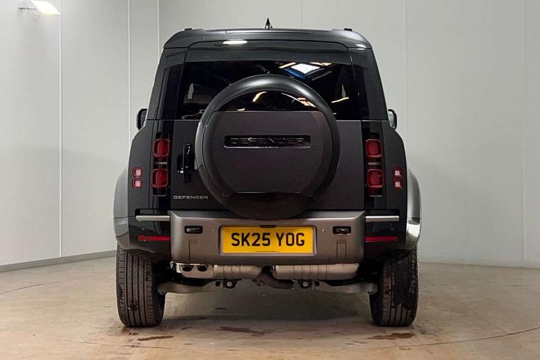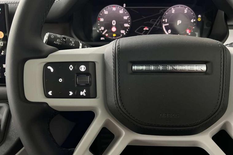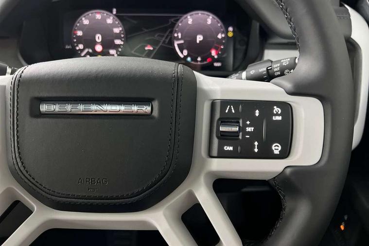 1 x USB-C (power only) & 1 x USB-C (power & data) in Row 1, 2 x USB-C in Row 2, 11.4" touchscreen, 360 degree parking aid, 3D Surround Camera with 360 View, 180 Rear View, Front Traffic Detection, Forward Vehicle Guidance, Tow Hitch Assist and clear sight Ground View, Adaptive cruise control, Android Auto, Apple CarPlay, Blind spot assist, Bluetooth system, Brake pad wear indicator, Clear exit monitor, Connected navigation pro, Driver condition monitor, Electric power assisted steering (EPAS), Interactive driver display, Lane keep assist, Push button start, Rear collision monitor, Rear traffic monitor, Traffic sign recognition with adaptive speed limiter, Trip computer, Wireless device charging, 8 speed automatic transmission, All wheel drive system, Twin speed transfer box, DAB Radio (Digital Audio Broadcasting), Meridian 700w surround sound audio system with 15 speakers, Pivi pro connected, Automatic headlight levelling, Automatic headlights, Black exposed rear recovery eyes, Body coloured bonnet, Centre high mounted stop light, Electric heated/power fold door mirrors with approach lights and auto dimming driver side, Electric windows with one touch open/close and anti-trap, Follow me home lighting, Front fog lights, Heated rear window with timer, Heated windscreen, Illuminated metal treadplates with brand name script, LED tail lights, Matrix LED headlights with signature DRL, Panoramic rear side glass, Privacy glass, Puddle lights, Rain sensing windscreen wipers, Rear fog lights, Rear wiper, Side hinged tailgate, Sliding panoramic roof, Standard tail door, Trailer stability assist, X-Dynamic badge, 12V power socket in loadspace, 3 seat bench in 2nd row, Alpine lights, Configurable cabin lighting, Durable rubber cabin flooring, Durable rubber loadspace flooring, Electric reach + rake adjustable steering column, Electrically adjustable steering column, Extended leather upgrade, Flat load space floor tray, Footwell lights, Front head restraints, Heated steering wheel, Loadspace cover, Loadspace Hook, Manual Tip & Slide front passenger seat, Multifunction steering wheel, Overhead stowage for sunglasses, Rear headrests, Rear ISOFIX, Rear reading lights, Row 2 seats with forward folding seat base, Single front passenger seat, Soft close tail door, Standard seat configuration, Storage glovebox, Sunvisors with illuminated vanity mirrors, Twin front cupholders, Non-smoker package, Online pack with data plan - Defender, 5 x 3 point seatbelts, ABS, Brake hold function, Cornering brake control (CBC), Customer configurable autolock, Driver and passenger airbags, DSC - Dynamic Stability Control, EBD - Electronic brakeforce distribution, Electric parking brake (EPB), Emergency brake assist, Emergency braking, ESP + traction control, Front airbags with passenger seat occupant detector, HDC - Hill descent control, Hill launch assist, Low traction launch, Remote for (e-Call, Optimised assistance call, InControl app, Climate, beep and flash and door), RSC - Roll stability control, Seat belt reminder, TPMS (Tyre pressure monitoring system), Alarm, Immobiliser, Intrusion sensor, Keyless entry, Locking wheel nuts, Secure tracker pro,