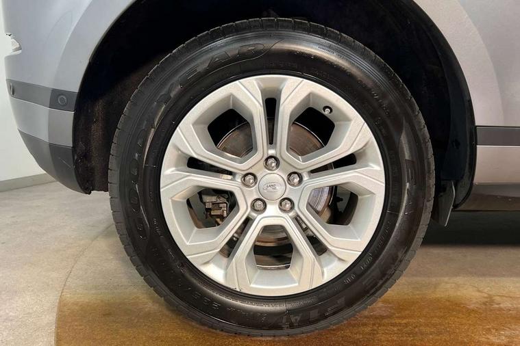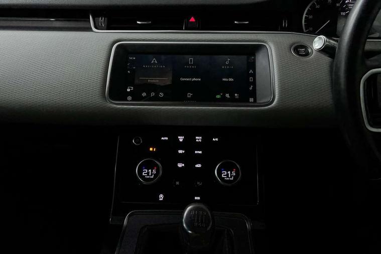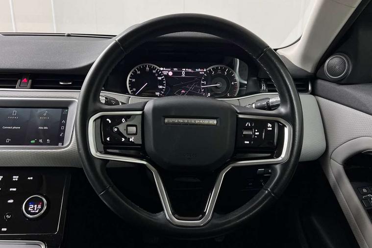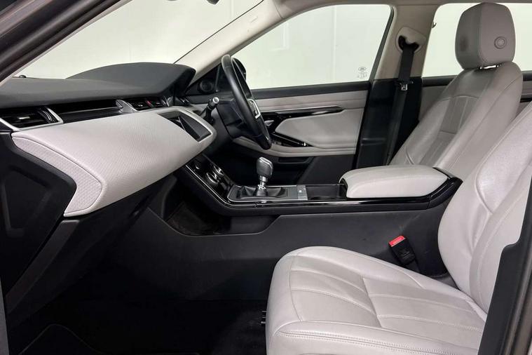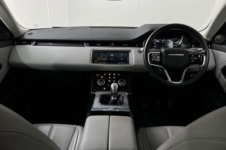 10" touch screen, Android Auto, Apple car play, Bluetooth connectivity, Brake pad wear indicator warning light, Cruise control + speed limiter, Driver condition monitor, Electronic power assisted steering (EPAS), Front and rear parking aid, InControl remote, Land Rover InControl apps, Lane keep assist, Pivi pro connected includes upgraded infotainment, connected navigation pro, Nuance speech licence, Push button starter, Traffic sign recognition with adaptive speed limiter, Voice control system, Passive suspension, Digital Audio Broadcast radio-DAB, Steering wheel mounted controls, Electric windows with one touch open/close and anti trap, Evoque badge, Flush deployable exterior door handles, Heated rear window with timer, Heated washer jets, Heated windscreen, Power fold, auto-dimming, heated door mirrors with approach lights and auto dimming driver side, Rain sensing windscreen wipers, Rear fog lights, Tailgate spoiler, 40:20:40 split folding rear seats with centre headrest and armrest, Ambient interior lighting, Isofix system on outer rear seats, Overhead lighting console, Overhead stowage for sunglasses, Passive front head restraints, Rear air vents, Rear centre headrest, Sunvisors with illuminated vanity mirrors, Twin sliding front centre armrest, 3 rear 3 point seatbelts, Anti-lock braking system (ABS), Customer configurable autolock, DSC - Dynamic Stability Control, Electronic brake force distribution, Electronic parking brake, Electronic traction control, Emergency braking, Front and rear seatbelt reminder, Hill launch assist, Power operated child locks, Roll stability control, Six airbags - Driver and passenger airbags/driver knee airbag/front side airbag and curtain airbags, Tyre pressure monitoring system, Alarm, Immobiliser, Intrusion sensor, Locking wheel nuts,