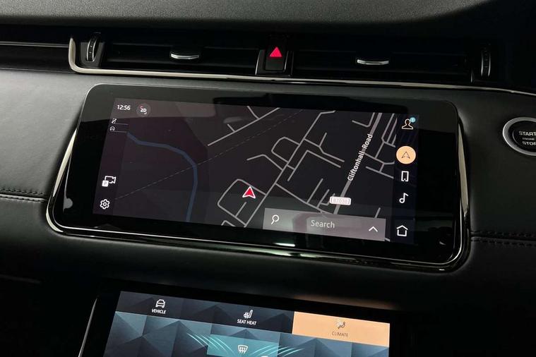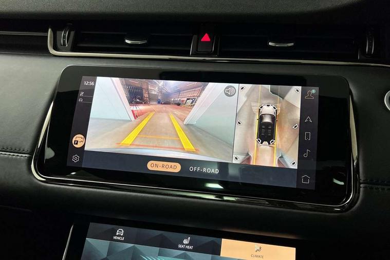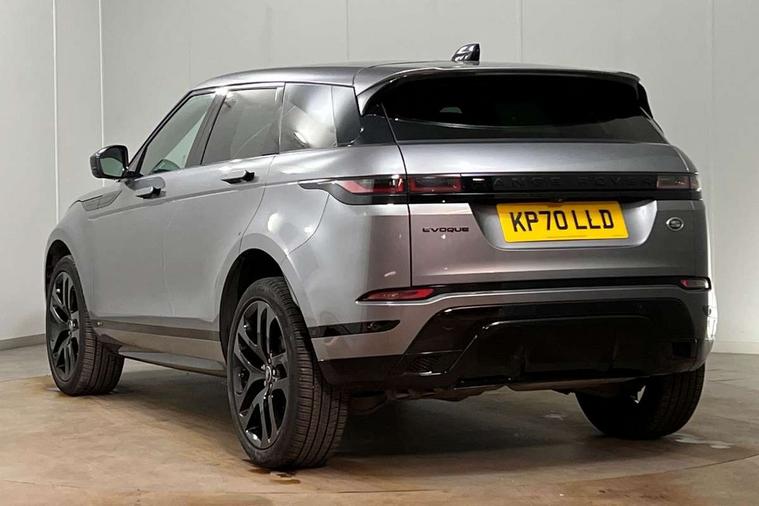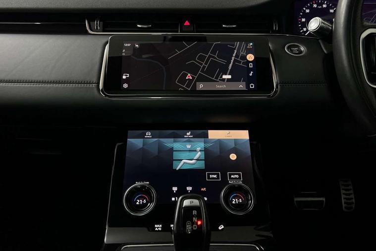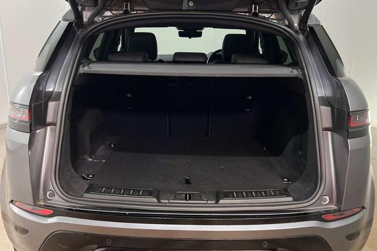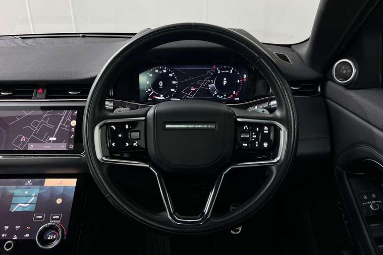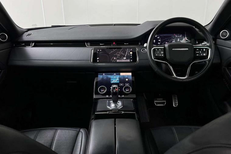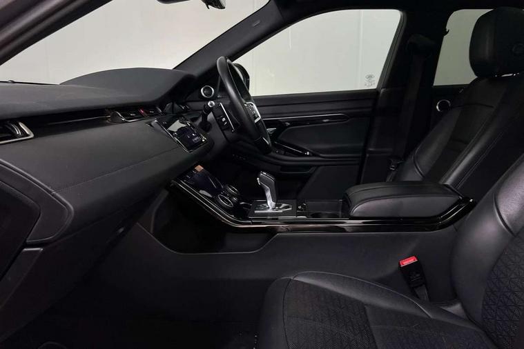 3D 360 degree surround camera, Adaptive cruise control, Android Auto, Apple car play, Blind spot assist, Bluetooth connectivity, Brake pad wear indicator warning light, Clear exit monitor, Driver condition monitor, Duo touch pro, Electronic power assisted steering (EPAS), InControl remote, Interactive Driver display instrument cluster, Land Rover InControl apps, Lane keep assist, Pivi pro connected includes upgraded infotainment, connected navigation pro, Nuance speech licence, Powered gesture tailgate/boot lid, Push button starter, Rear collision monitor, Rear traffic monitor, Traffic sign recognition with adaptive speed limiter, Voice control system, Wade Sensing, All terrain progress control, Efficient Driveline, Passive suspension, Terrain Response 2 Auto, Digital Audio Broadcast radio-DAB, Steering wheel mounted controls, Automatic headlight levelling, ClearSight interior rear view mirror, Electric windows with one touch open/close and anti trap, Evoque and R-Dynamic badge, Flush deployable exterior door handles, Heated rear window with timer, Heated washer jets, Heated windscreen, Power fold, auto-dimming, heated door mirrors with approach lights and auto dimming driver side, R-Dynamic branding illuminated metal tread plates in loadspace and row 1 with brand name script and non illuminated metal in row 2, Rain sensing windscreen wipers, Rear fog lights, Shadow atlas bonnet and tailgate script, Tailgate spoiler, 40:20:40 split folding rear seats with centre headrest and armrest, Ambient interior lighting, Bright metal pedals, Isofix system on outer rear seats, Overhead lighting console, Overhead stowage for sunglasses, Passive front head restraints, Rear air vents, Rear centre headrest, Satin chrome gearshift paddles, Sunvisors with illuminated vanity mirrors, Twin sliding front centre armrest, 3 rear 3 point seatbelts, Anti-lock braking system (ABS), Customer configurable autolock, DSC - Dynamic Stability Control, Electronic brake force distribution, Electronic parking brake, Electronic traction control, Emergency braking, Front and rear seatbelt reminder, Hill descent control, Hill launch assist, Low traction launch, Power operated child locks, Roll stability control, Six airbags - Driver and passenger airbags/driver knee airbag/front side airbag and curtain airbags, Torque vectoring brake, Tyre pressure monitoring system, Alarm, Immobiliser, Intrusion sensor, Keyless entry, Locking wheel nuts,