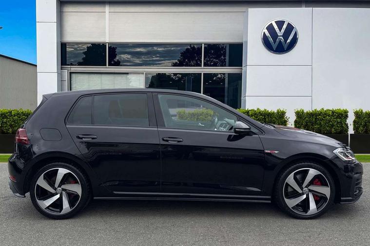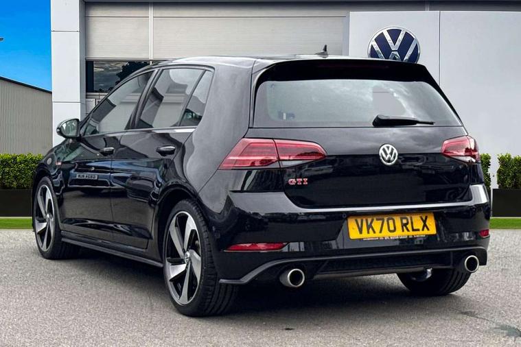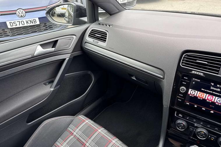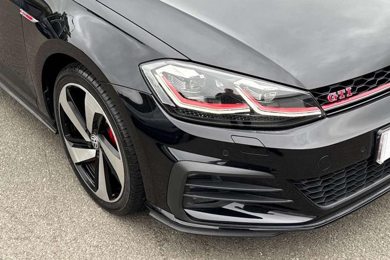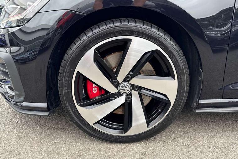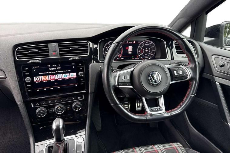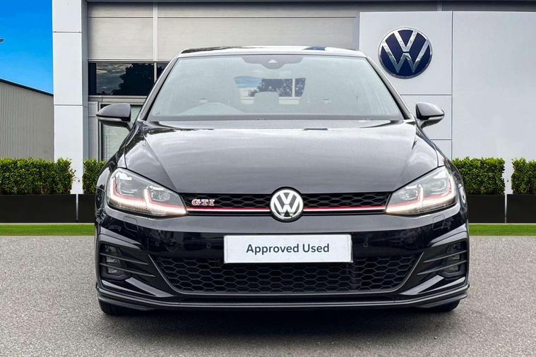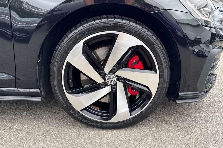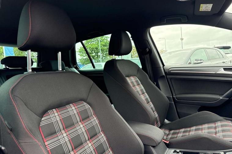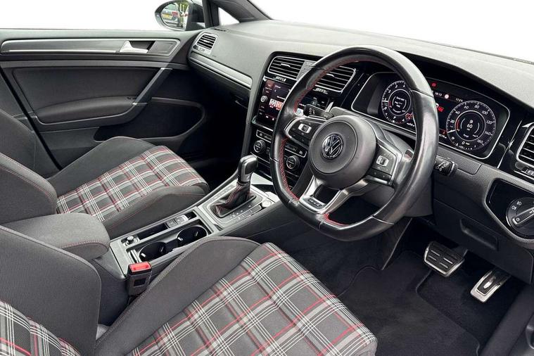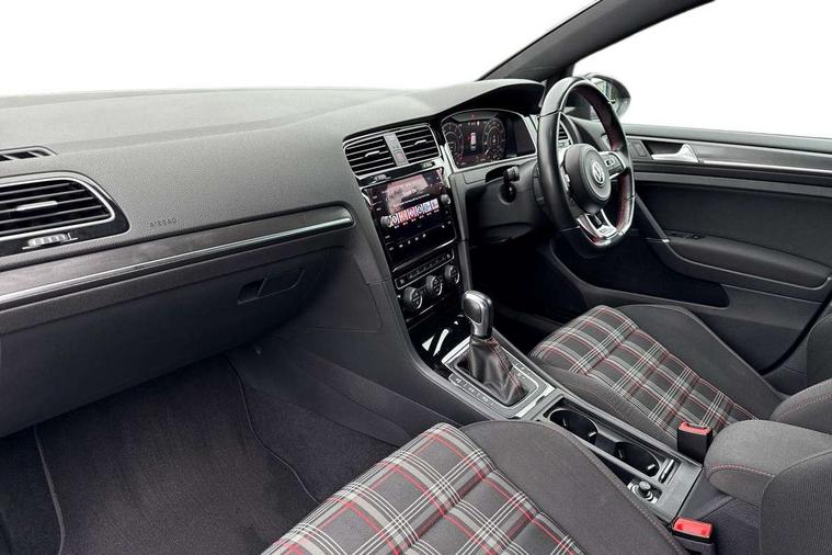 'Lights On' Reminder warning buzzer, ACC - Adaptive cruise control with front assist, forward collision warning, distance monitoring, city emergency brake and speed limiter, Active information display - 12.3" high resolution TFT display, Bluetooth telephone and audio connection for compatible devices, Brake pad wear indicator warning light, Driver alert system, Driving Mode Selection with four preset modes - Eco, normal, sport or individual modes, Multifunction computer with visual gear change recommendation for fuel consumption, Progressive steering, Push tank flap, Rear view camera, Speed limit display, Speedo, rev counter, electronic odometer, trip, service interval display, exterior temperature and fuel gauge, Stop/start system, Think blue trainer driver tips and journey analysis, Unique GTI instrument cluster, Warning buzzer and light for front seatbelts unfastened, Anti-tramp function, Battery regeneration during braking, Mechanical limited slip differential, Composition media system, DAB Digital radio receiver, Driver Personalisation profile selection, MP3/WMA compatability, Multi device interface (MDI) via USB connection, Premium USB cable in choice of either Apple or Android smartphone compatibility, SMS Functionality, Title and cover art display, USB and SD card connectivity, Volkswagen media control, 3D-LED tinted rear light clusters with indicator sweep function, Black front air intake and radiator grille with chrome insert, Body colour door handles, Body colour door mirrors with integrated indicators, Body colour rear roof spoiler, Dusk sensor + automatic driving lights, Electric front windows, Electric rear windows, Electrically adjustable and heated door mirrors, Extended sill strips flared, Front and rear unique GTI badging in red, Fully galvanised body, GTI logo in red on front and back, GTI logo lettering on front wings on right and left, Heated rear windscreen, High level 3rd brake light incorporating LED Technology, Honeycomb front air intake - Black, Honeycomb radiator grille with red stripe, LED daytime running lights incorporating red stripe, LED front fog lights, LED headlights with dynamic light assist, Rear fog lamp, Rear number plate lights incorporating LED technology, Rear window aerial, Rear window wash/wipe with intermittent wipe, Reflectors in all doors, Uniquely shaped front/rear bumpers, Windscreen wipers/ intermittent wipe + 4 position delay, 12V socket in luggage compartment, 3 rear headrests, 4 load lashing points in luggage compartment, 60/40 split folding rear seat backrest, Bag hook in luggage compartment x 2, Black rear diffuser with chrome exhaust tailpipes in left and right, Black roof lining, Climate control - 2 zone electronic air conditioning with automatic air recirculation and allergy filter, Cooled glovebox, Cover for storage compartment in centre, Dust/pollen filter, Front + rear carpet mats, Front centre armrest with storage compartment and two rear air vents, Front seat back storage pockets, Grab handles front x 2, rear x 2 with integrated coat hooks, Height and reach adjustable steering wheel, Illuminated vanity mirrors, Interior light delay, Isofix preparation for 2 rear child seats, Leather gear knob and handbrake grip, Load through provision with rear centre armrest and cupholders x2, Luggage compartment lighting, Overhead storage box, Stainless steel pedals, Storage box in luggage compartment, Storage compartment in roof console with cover, Storage compartments in centre console, Storage compartments in front doors, Storage compartments in rear doors, Stowable luggage compartment cover, Sun visors, Three spoke multifunction leather steering wheel with GTI logo and red stitching including gearknob gaiter, Variable boot floor, height adjustable and removable, Ambient lighting pack - Golf, Convenience Pack - Golf, Mirror pack - Golf, Winter pack - Golf, 3 rear three point seatbelts, Airbags - Driver's and front passenger's, curtain airbag, Driver's knee, front side impact and passenger's airbag deactivation switch, Anti-lock Braking System (ABS) with Hydraulic Brake Assist (HBA), Automatic post collision braking system, Child locks on rear doors, Driver/Passenger optimised head restraints, Electronic parking brake with auto hold, Electronic stability control (ESC) including Electronic differential lock (EDL) and ASR (Traction control) with deactivation via infotainment system, Front ventilated disc brakes and rear disc brakes, Larger diameter brake discs and GTI logo on red brake calipers, Pre crash preventive occupant protection, Three point height adjustable front seatbelts with tensioners, Tyre pressure loss indicator, Alarm with interior protection and deactivation via infotainment system, Electronic engine immobiliser, Keyless entry with start/stop button on centre console, Chrome plated air vent surround, Chrome plated electric mirror adjustment switch surround, Chrome-plated light switch surround, Honeycomb black decorative inserts, Piano black decorative inserts in centre console, Steel space saver spare wheel,