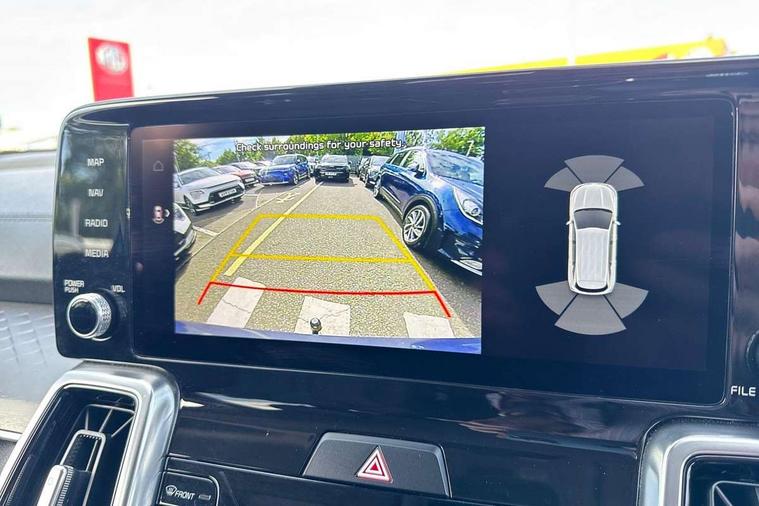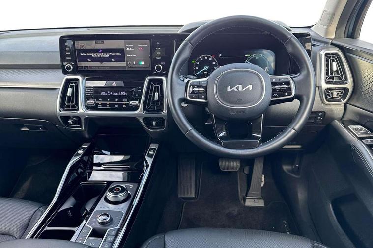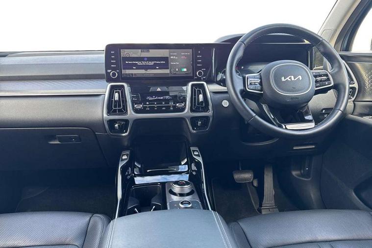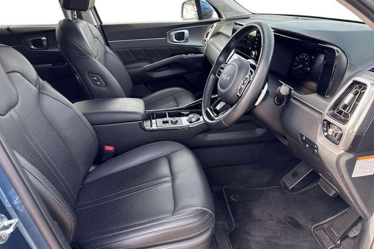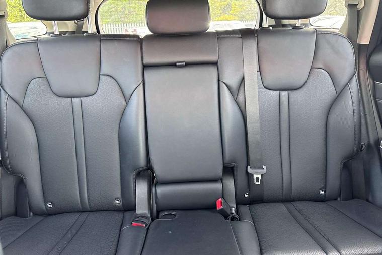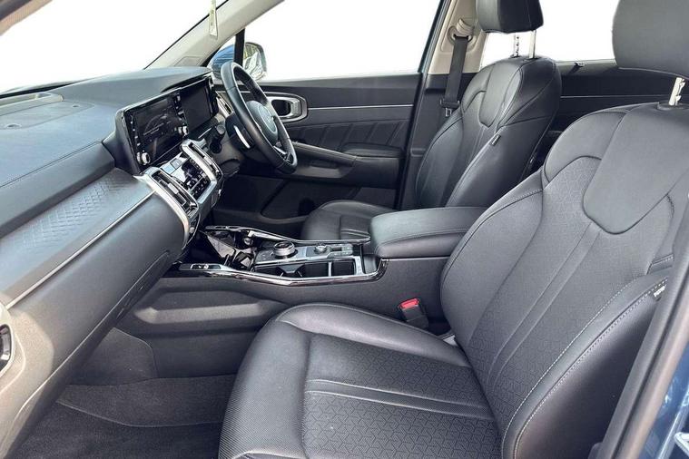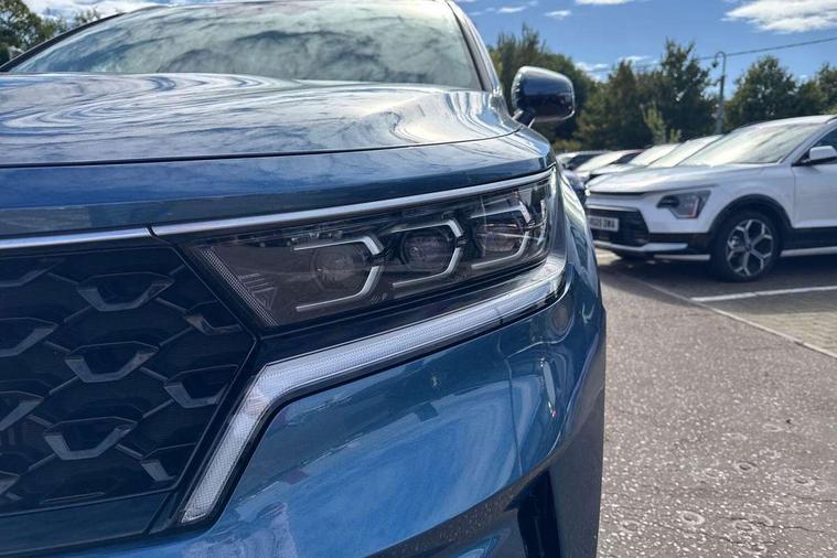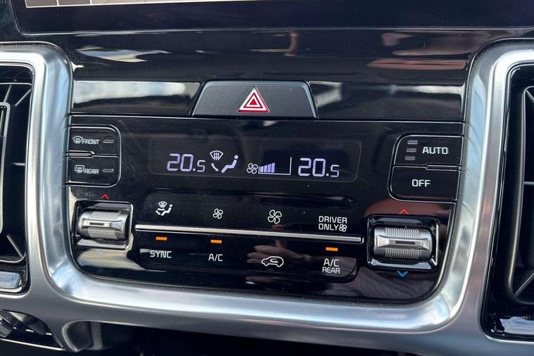 10.25" Touchscreen Satellite Navigation with DAB, Apple car play/Android Auto with voice control, Blind spot collision avoidance assist, Digital cluster, Digital cockpit, Drive mode selector, Driver attention warning, eCall emergency system, Emergency stop signalling system, External temperature gauge, Forward Collision-Avoidance Assist (FCA) - City/Pedestrian/Cyclist/Junction, Front parking sensors, Highway Driving Assist (HDA), Intelligent speed limit assist, Lane follow assist, PAS, Rack mounted power steering, Rear cross traffic assist, Rear parking sensor, Reversing camera system with dynamic guidelines (Integrated into centre fascia screen), Smart cruise control with stop and go functionality, Smart power tailgate, Telematics system with UVO connect services, Trip computer, Wireless Smartphone charger, Intelligent All-wheel drive, Self levelling rear suspension, Terrain mode select (Mud, Snow, Sand), Audio system with 6 speakers, Multi device Bluetooth connection with voice recognition and music streaming, Radio/MP3 player, Steering wheel mounted audio controls, USB port for connection of a media device, All round electric windows auto up/down function, Auto dimming rear view mirror, Automatic defog system, Automatic headlights control, Black side sills, wheel arch body mouldings with silver sill detail, Body colour door mirrors, Body coloured bumpers, Chrome window surround, Electrically folding/adjustable/heated door mirrors with LED indicators, Front and rear silver skid plates, Gloss black radiator grille, Headlamp levelling, Heated rear window, LED Bi-Function headlights, LED daytime running lights, LED front fog lights, LED High-mounted Brake Light, LED rear combination lights, LED rear fog lights, Metal scuff plates, Privacy glass, Rain sensing front wipers, Rear side wing doors, Rear spoiler, Roof rails, Satin chrome exterior door handles, Trailer stability assist, Windscreen Washer Level Warning, 2 seat bench in 3rd row, 2 x 3rd row USB charge port, 2nd row window blinds, 3 bench rear seats in 2nd row, 3 step dual automatic air conditioning, 3 x 2nd row USB charge port and 12V socket, 3 x Front USB charge port and 12V socket, 3 x passenger assist grips, 50/50 split/folding 3rd row of seats, 60:40 split remote folding and reclining 2nd row seats, 8 way power adjustable driver seat with 2 way electric lumbar (sliding, reclining, tilt, height), 8 way power adjustable front passenger seat (sliding, reclining, tilt, height), Air conditioning for 3rd row of seats, Ambient lighting, Center fascia premium etching, Centre console cupholder, Centre console storage box and armrest, Cupholders in rear armrest and doors, Front and rear door storage, Front seatback pockets and net, Gearshift paddles, Heated front seats, Heated steering wheel, Height adjustable head restraints, Illuminated glovebox, Interior door lock/unlock function, ISOFIX Child seat top tethers and anchor fixings, Leather door inserts, Leather trimmed steering wheel, Leather upholstery, Light grey headlining, Load area cover, Luggage area light, Luggage net with hooks, Outer 2nd row heated seats, Passenger walk-in switch, Rear air vents, Rear centre armrests, Row 3 cupholder, Single front passenger seat, Sunvisors with vanity mirror illumination (Driver and front passenger), Tilt/telescopic adjustable steering wheel, 3 point seatbelts on all seats, ABS/EBD, Active front headrests, Downhill brake control, Electronic parking brake with auto hold, Electronic stability control, Front center airbag, Front passenger airbag cut-off switch, Front seatbelt pretensioners, Height adjustable front seatbelts, Hill start assist control (HAC), Impact sensing auto door unlocking, Multi collision brake assist, Rear door child safety locks, Twin curtain airbags, Twin front airbags, Twin front side airbags, Tyre pressure monitoring system, Advanced anti theft alarm system, Deadlocks, Engine Start/Stop Button with Smart Entry System, Immobiliser, Locking wheel nuts, Visible vehicle identification number, Gloss black centre console, 19" Alloy wheels, Temporary spare wheel (space saver),