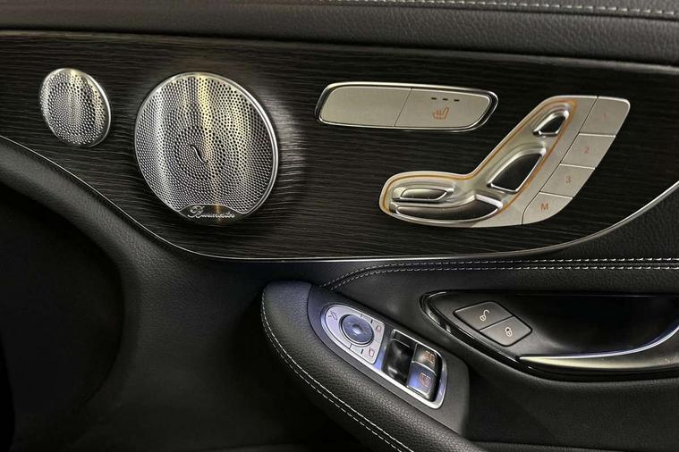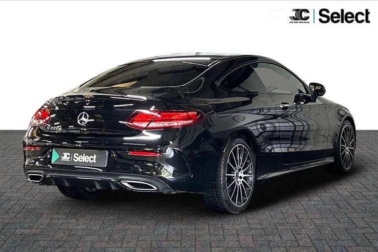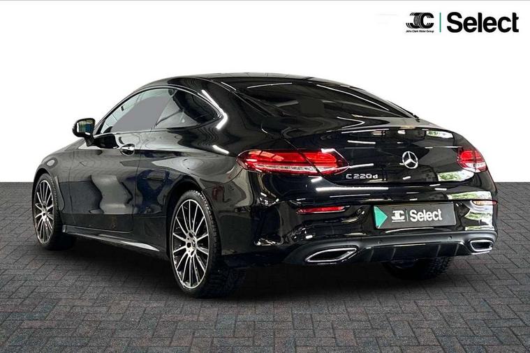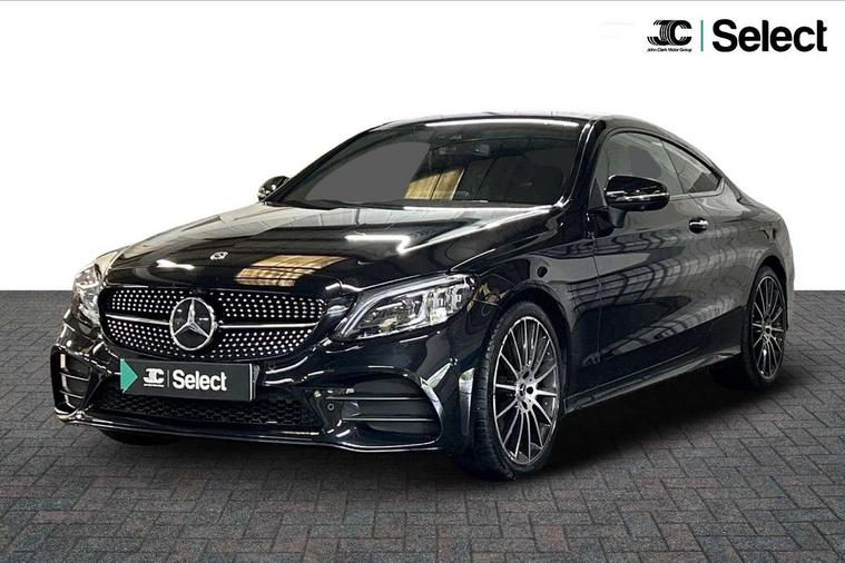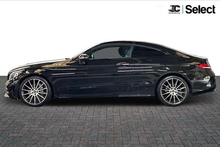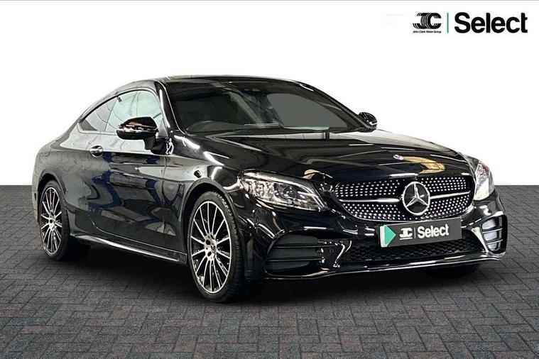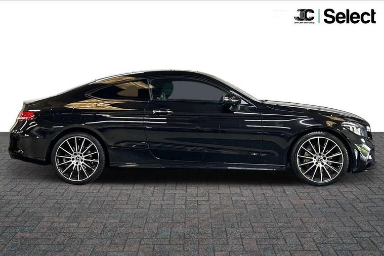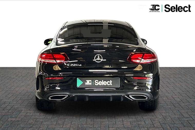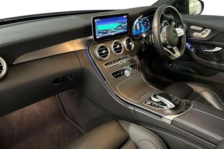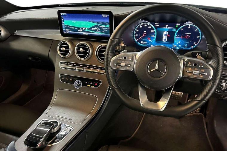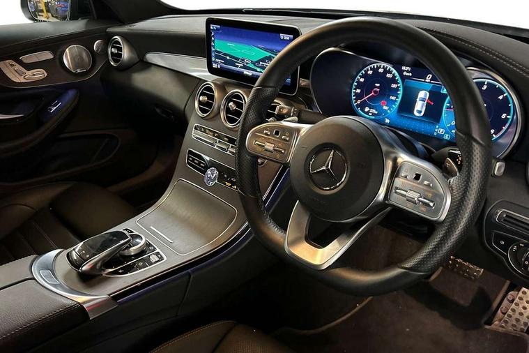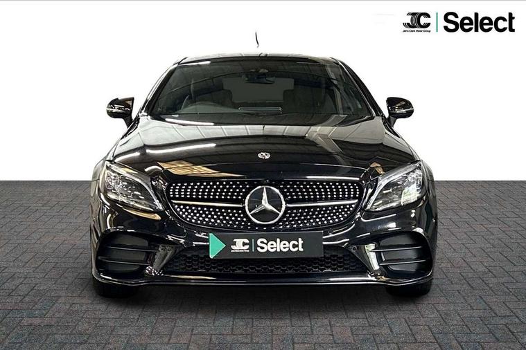 12.3" digital instrument cluster display, Active park assist with parktronic system, Attention assist, Bluetooth interface for hands free telephone, Collision prevention assist plus, Comand Online HDD Nav with media interface, radio/CD/DVD/MP3, 10.25 screen, linguatronic voice control, DYNAMIC SELECT with a choice of driving modes (ECO, Comfort, Sport, Sport+ and Individual), ECO start/stop function, High resolution 10.25" multimedia colour display, Instrument cluster with 5.5-inch TFT multi-function display, Mercedes me connect including emergency call system, accident recovery, breakdown and maintenance management, Multi function trip computer, Outside temperature display, Pre-wiring for SD navigation system, Remote boot release, Reversing camera, Service indicator (ASSYST), Sports direct steer speed sensitive steering, Status display for rear seat belts in instrument cluster, Wireless charging, 66l fuel tank with increased capacity, 9G Tronic plus 9 speed automatic, Agility control sports suspension lowered by 15 mm, Diesel particulate filter, Burmester surround sound system, DAB digital radio tuner, Frontbass loudspeakers, Mid-range sound system, SD card slot, Two USB ports and one SD Card slot in centre console, Adaptive brake lights, AMG bodystyling front and rear aprons, side skirts, Body coloured bumpers, Chrome pins diamond radiator grille with integrated stars, Door sill panels with Mercedes Benz lettering, Electric panoramic glass sunroof, Electric windows with one touch opening/closing and obstruction sensors, Exterior mirrors heated and electronically adjustable, Full LED tail lamps, Green tinted glass, LED daytime running lights, LED Indicators, LED third brake light, Multi beam LED headlights, Privacy glass (rear side windows and rear screen), Radio aerial integrated into rear window, Rain sensor windscreen wipers, Side windows surround in polished aluminium, Visible twin pipe exhaust trim integrated into rear bumper, 2 cupholders in front centre console, 2 rear head restraints, 3-spoke leather multi function AMG steering wheel with flattened bottom section and chrome inserts with perforated leather in grip area, 40:20:40 split folding rear seats, Ambient lighting, AMG sports seats, Auto Mercedes-Benz child seat recognition sensor, Black floor mats with AMG lettering, Electrical height and back adjustment front seat, Front centre armrest with storage compartment, Front head restraints, Front LED reading lights, Heated front seats, Height/reach adjustable steering column, Illuminated glove compartment stowage, Leather upholstery, Sports pedals with stainless steel surfaces and rubber studs, Steering wheel gearshift paddles, Steering wheel touch control buttons for audio and onboard settings, Sunvisors with illuminated vanity mirrors, THERMATIC 2 zone automatic climate control, AMG night package - C Class, Interior lighting package - C Class, Keyless go comfort package - C Class Coupe, Memory pack with Electric adjustable steering wheel - C Class, Mirror package - C Class, Parking package with 360 degree camera - C Class, Seat comfort pack - C Class, Stowage space pack - C Class, 2 rear seatbelts, 3 point automatic seatbelts, Active bonnet, Adaptive brake system with hold function, hill start assist and brake drying function, Anti-lock braking system (ABS), Automatic seatbelt pretensioner for driver and front passenger, Black seat belts, Brake calipers with Mercedes-Benz lettering + perforated brake discs, Dual stage airbags - driver and front passenger, front sidebags, driver kneebag, pelvis bag and windowbags for driver, front and rear passengers, Electronic parking brake, Electronic Stability Programme (ESP), ISOFIX child seat attachment points with top tether in rear, Tyre pressure monitoring system, Warning triangle and first aid kit, Anti-theft alarm system/interior protection with tow-away protection and interior monitoring systems, Central locking with interior switch, automatic locking and crash sensor with emergency opening function, Chrome surround electric key, Immobiliser, Anthracite open pore oak wood trim, Artico man-made leather dashboard, 19" AMG multi spoke alloy wheels painted in black with high sheen finish, TIREFIT with tyre inflation compressor,