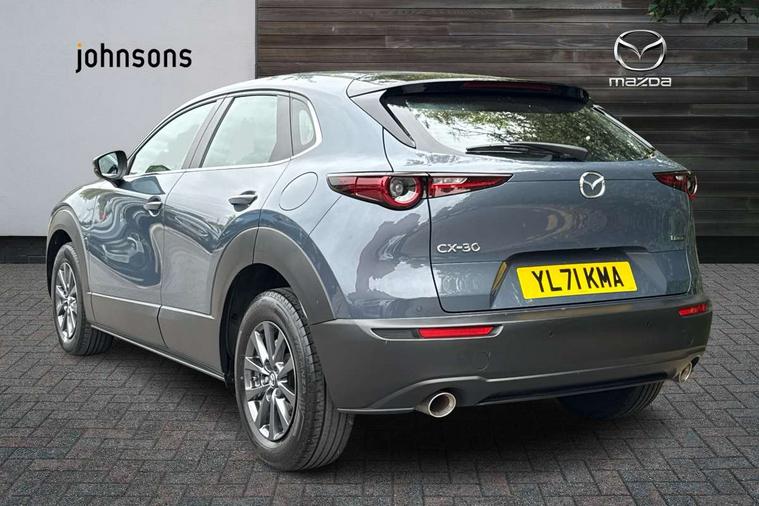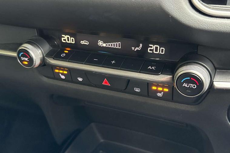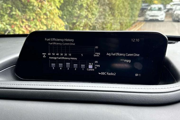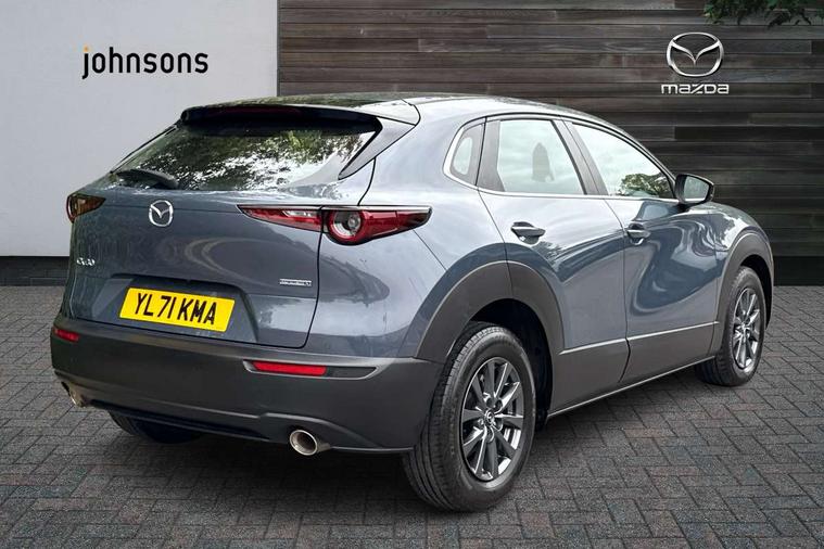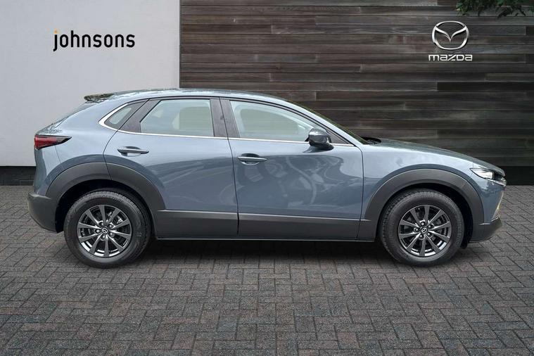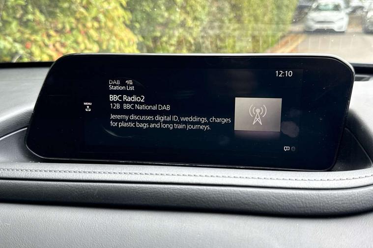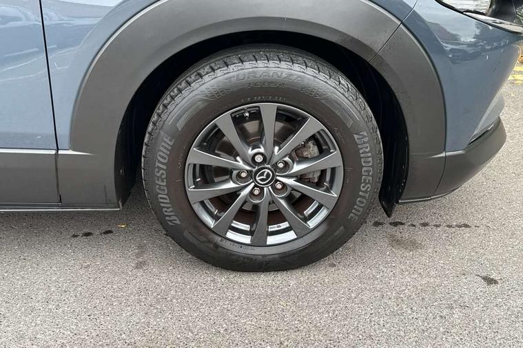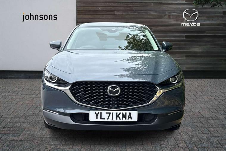 7" TFT Colour driver instrument panel display, 8.8" Colour centre touch screen display with Mazda Connect infotainment, Adaptive cruise control (Mazda radar cruise control), Apple car play/Android Auto, Blind spot monitoring with rear cross traffic alert, Driver attention alert system, E-call with GPS, Emergency stop signalling system, Engine start/stop button, Front and rear parking sensors, Integrated bluetooth, Integrated Mazda navigation system, Intelligent speed assist, Lane keep assist system (LAS) with Lane departure warning system (LDWS), Mazda connected services, PAS, Reversing camera, Service indicator, Traffic sign recognition, Trip computer, i-stop, 2 USB charging ports in front inner central armrest, AM / FM / DAB radio with 8 speakers, Multimedia Commander including separate volume dial, Steering wheel mounted audio/bluetooth controls, B-pillar and C-pillar garnishes in satin black finish, Auto dimming driver's door mirror, Auto dimming rear view mirror, Auto headlight levelling, Body coloured, electrically adjustable, heated auto power folding door mirrors with integrated indicators, Chrome finish signature wing in front grille, Coming/leaving home lighting function, Dual chrome exhaust, Dusk sensing headlights, Electric front/rear windows with one touch auto up/down, Front kodo turn signal, Gloss black rear roof spoiler, LED headlights with halogen daytime running lights and high beam control, LED rear combination lights, Rain sensing front wipers with adjustable speed and intermittent wipe, Rear fog lights, Rear wiper, Satin black front grille, 12V power outlet in centre console, 60/40 split fold down rear seats, Cloth upholstery with interior accents, Dark cloth door panel inserts, Dashboard, door cards and front centre armrest in black cloth, Driver and front passenger visors with covered vanity mirror and driver ticket holder, Driver seat manual slide, recline, height and seat tilt adjust, Driver, front passenger and two rear door storage, Driver, Front passenger and two rear grab handles with coathooks, Dual zone climate control air conditioning with rear air vents, Folding rear centre armrest with two cup holders, Front and rear (x3) head restraints, Front and rear LED lighting, Front armrest, Front centre storage with two cupholders, Front passenger seatback pockets, Front passengers seat manual slide, recline and height adjustment, Gear shift indicator, Glovebox illumination, Heated front seats with 3 stage setting, ISOFIX child seat anchorage points attached on outer rear seats, Leather wrapped gear shift knob, Leather wrapped steering wheel with telescopic and tilt adjustment, LED luggage compartment lighting, Light roof headlining and pillars, Roof mounted sunglasses holder, 3 point ELR front seat belts x2 with pretensioners, 3 point ELR rear seat belts, Anti-lock braking system (ABS), Drivers knee airbag, DSC - Dynamic Stability Control, Electronic parking brake with auto disengage function and auto hold function, Front and rear curtain airbags, Front dual stage driver and single stage front passenger airbags, Front passenger airbag cut-off switch, Front side airbags, Front smart city brake support, G-Vectoring control plus, Hill launch assist, Mild Hybrid system with regenerative braking, Seatbelt reminder for driver/front passenger and rear seats, Traction control system (TCS), Tyre pressure monitoring system (TPMS), Remote central locking with deadlocking and automatic door lock when driving, Smart keyless entry, Thatcham accredited alarm and immobiliser, 16" Grey alloy wheels, Emergency tyre repair kit,