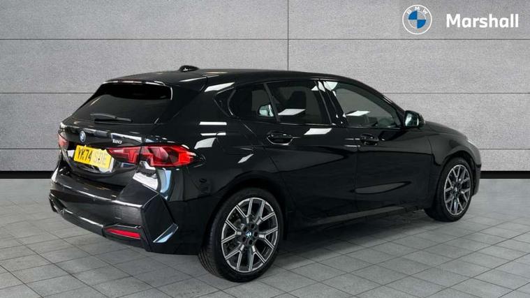 Active guard plus, Attentiveness assist, Bluetooth / WiFi interface for wireless connection of mobile terminal devices and audio streaming, BMW ConnectedDrive online services, BMW Live cockpit plus, BMW Teleservices, Check Control warning system for monitoring of lights and door/luggage compartment open warning, Eco pro mode, Electric power steering with Servotronic steering optimised at all speed ranges, Evasion assistant, Flat airvents in instrument panel with adjustable slats, Front and rear parking sensors, Front axle single joint with specific axle kinematics to minimise drive influences on steering + provide increased rigidity agile driving behaviour, Integrated owners handbook, Left turn warning with brake function, My modes (Personal / Efficient / Sport), Oil sensor for level and grade, On board computer, Optimum shift indicator, Park assist including reversing assistant, lateral parking aid and reversing assist camera, Personal e-SIM, Personal Profile, Pull away assistant, Rigidly mounted rear subframe - Multi link construction with separate spring / damper configuration and excellent driving characteristics, Speed limit Info including no-overtaking indicator, Speed limiter, 49 litre fuel tank, 7 speed automatic transmission with double clutch technology, Aluminium lightweight construction, Anti roll bar front and rear, Balancer shaft, Double VANOS twin scroll turbocharging system, Drive Performance Control, Electronic differential lock, Electronic selector lever, High precision injection, Petrol Particulate Filter, Suspension with twin tube gas filled shock absorbers with degressive characteristic curve, VALVETRONIC engine management, DAB Digital radio, Auto dimming rear view mirror, Automatic windscreen wipers and automatic headlight, Body colour door handles, Body colour mirror caps, Chrome exhaust twin tailpipes round 90mm in left, Direction indicator side lights in exterior mirrors, Electrically adjustable exterior mirror with mirror adjustment switch on drivers armrest and aspheric on driver side, convex on passenger side, Fading support, Follow me home headlights, Front and rear bumper system with replaceable deformation elements, Front and rear electric windows with open and close fingertip control, anti trap facility and comfort closing, Front bumper in Body colour with exclusive Sport air inlets finished in High gloss Black, Front door sill finishers in black plastic with BMW designation in metallic look, Grained matt black roof strip, Green tinted heat protection glazing, Heated rear window, High gloss black exterior mirrors, High gloss shadowline window frame, Recess cover mirror frames and B/C pillar embelisher trim, High level third brake light, Integrated front windscreen with washer jets, Kidney grille in chrome frame with highgloss black struts, LED daytime running lights, LED eyebrow turn indicators, LED front fog lights, LED Headlights, Lightweight engineering, Manual headlight beam throw control, Manual headlight levelling, Matt black air guide grilles, Matt black wheel arch trim, Model badge on tailgate right, Nearside reverse light in rear light cluster, Power folding and heated door mirrors, Preparation for high beam assistant, Rain sensor, Rear bumper in Body colour with exclusive Sport design elements finished in High gloss Black, Rear fog lights, Rear side wing doors, Rear window wiper, Shark fin antenna, Trailer stabilisation logic, Visible VIN plate, Welcome lighting, 12V power socket in front centre console with blanking plug, 3 rear seat head restraints, 3 seat bench in 2nd row, 3 spoke sports leather steering wheel in black leather with black stitching and decorative finisher in pearl chrome, Anthracite front and rear floor mats, Black boot net with lashing eyes, Cargo function on 2nd seat row, Child seat ISOFIX attachment for two outer rear seats and front passenger seat with anchorage points, Conditioned based service, Driver and front passenger backrest net on rear, Driver and front passenger seat heating, Driver side folding compartment in instrument panel, Folding rear clothes hook, Footrest and pedals in black plastic, Four grab handles integrated in roof lining, Front and rear door pockets with bottle holders, Front and rear side armrest integrated into door trim, Front armrest with storage compartment, Glove compartment, Height adjustable front head restraints, Luggage compartment for bag hooks on left and right, foldable luggage compartment liner and four lashing eyelets, Manual adjust steering wheel, Multi-function controls for steering wheel, Rear seat backrest with manual 60:40 split folding with 3 top tether clips integrated on rear of seat panels, Single front passenger seat, Storage compartment in centre console, Storage compartment in luggage compartment, Stowage of the parcel shelf in luggage compartment trim, Sun visors with vanity mirrors and insert tab, Two front centre console cupholders, Type C two USB ports in rear centre console, Upper retaining strap integrated into backrest rear panels, Connected pack professional - 1 Series, Interior lights pack - 1 Series, 2 tone horn, 3 point seatbelts on all seats, front pyrotechnic belt tensioners, stopper and belt force limiters, rear coded belt buckles, Airbags - Front driver/passenger, front and rear curtain head protection, front side, manual deactivation of front passenger airbag, Anti lock braking system (ABS) with brake assist, BMW emergency call, Brake drying, Braking readiness, Child proof locking system in rear door, Comfort modes, Cornering brake control, Crash sensor activating of airbags, Unlocking doors, hazard warning lights, fuel cut off, interior lighting+activation of safety battery terminal clamp, Driver and front passenger seat belt security check, Dynamic stability control + (DSC+), Dynamic Traction Control - DTC, Electrically operated hand brake including automatic hold function, Front and rear disc brakes, Seatbelt warning, Side impact protection, Tyre pressure 