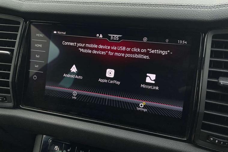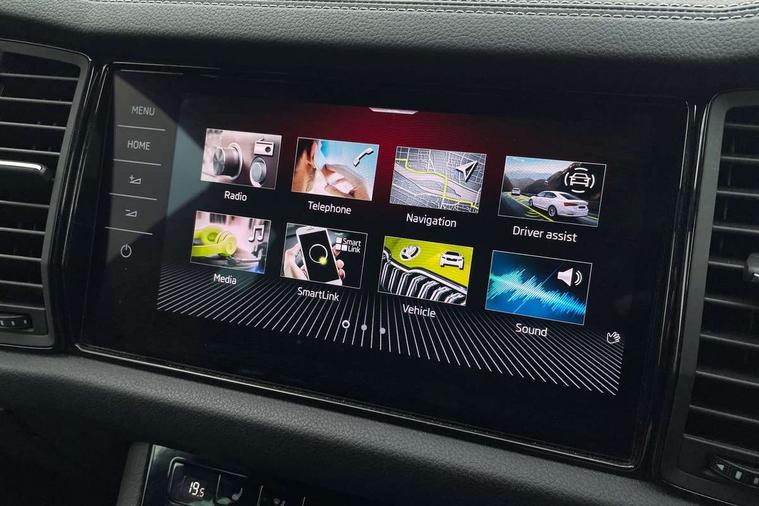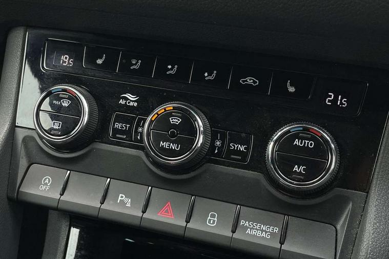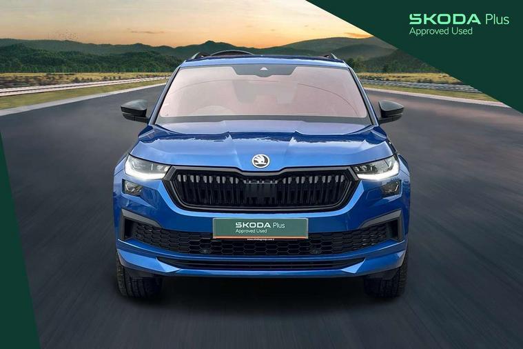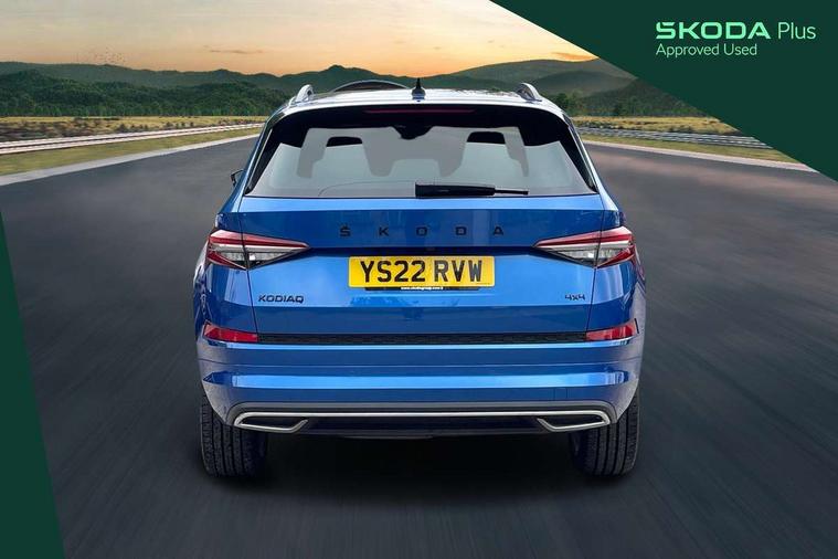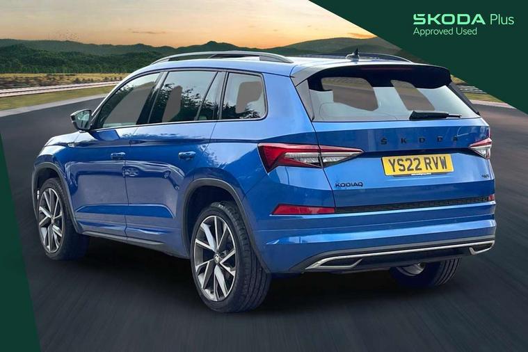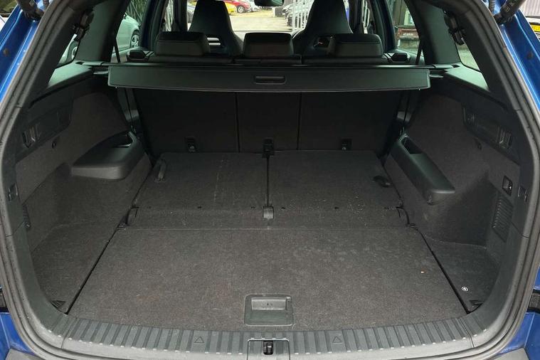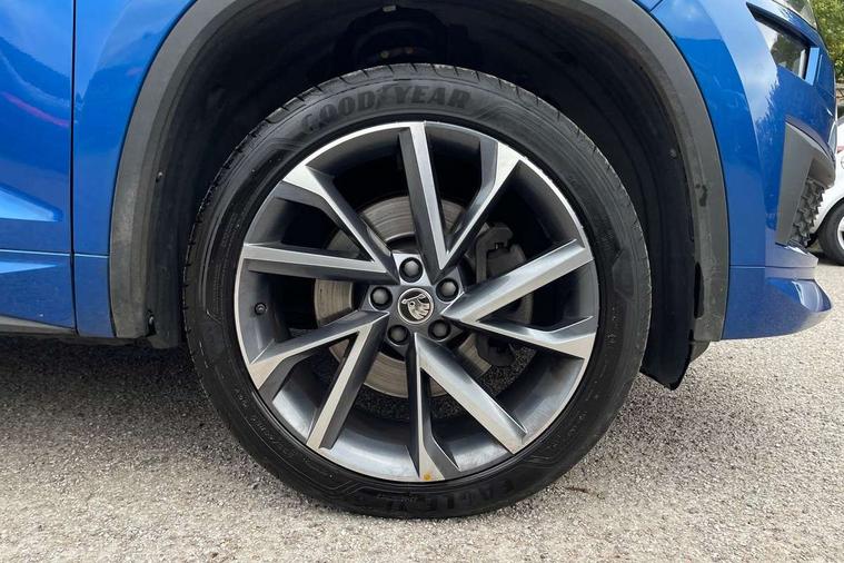 Bluetooth system, Columbus satellite navigation with 9.2" touchscreen, integrated Wi-Fi, web radio, Digital voice enhancement, E-call, ECO Stop/start function, Exterior temperature indicator, Progressive steering, Rear view camera, Smartlink wireless for apple carplay and wired for android auto, Speed limiter, Tailgate unlocking from outside, USB C Port x 2 in front centre console, Wireless charging, 8 Speakers, DAB Digital radio, Aero front windscreen wipers with intermittent function, Aero rear window wiper, Auto dimming rear view mirror, Black roof rails, Black sports styling including front grille and window surrounds, Black wheel arch surrounds, Body colour bumpers, Body colour door handles, Electric adjustable/heated/folding door mirrors, driver side auto dimming with boarding sports and memory function, Electric front and rear windows, Extended rear spoiler with finlets in gloss black, Front fog lights, Full LED matrix headlights with AFS (adaptive front light system), cornering function and AWL (all weather lighting system), Gloss black door mirrors, Headlight washers, Heated rear window, Invisible tailpipe, LED daytime running lights, LED rear fog light, LED third brake light in rear spoiler, Light assistant (coming/leaving home/tunnel light), Off-road style lower front bumper element, Privacy glass, Rain and light sensors, Rear diffuser, Rear LED lights (high functionality) with welcome effect and dynamic indicators, Rear side wing doors, Safety reflectors on front and rear doors, Sportline badge on front fender, Sports front and rear bumpers including lower rear chrome strip, Tailgate lettering in Black, Window control switches with black trim, Without engine designation, 12V socket in boot, 2 rails with 2 hooks, 2 seat bench in 3rd row, 3 seat bench in 2nd row, 4 foldable roof handles with rear coat hooks, 60:40 foldable rear seat with sliding adjustment and backrest angle adjustment, Aluminium pedals, Black roof headlining, Bottle holders in door panel in the 1.5 litre front and 1 litre rear, Cargo storage compartments, Chrome headlight control button, Chrome interior door handles, Coat hooks on B pillar, Covered storage compartment on driver side, Front centre armrest with storage compartment, cup holder and 12V socket, Front courtesy lights, Gear shift lever with chrome frame and black gloss insert, Grey stitching in front and rear armrests and door armrests + door inserts, Height adjustable front headrests, Illuminated and cooled glovebox, Illuminated luggage compartment, Isofix child seat fittings in outer rear seats with top tether, Manually adjustable steering column, Microsuede door panels, Net programme in boot (1x horizontal Net, 2x vertical Nets), Overhead glasses storage compartment, Pollen filter, Rear centre armrest with cupholders, Single front passenger seat, Sliding trunk cover, Small Bags on the inner sides of the front backrests, Sports seats, Sunvisors with illuminated vanity mirrors, Three rear height adjustable headrests, Ticket holder on A Pillar, Umbrella in door panel, Variable boot floor, LED Interior light pack - Kodiaq, Auto door release and activation of warning lights in the event of an accident, Child locks on rear doors, Driver and front passenger airbag with knee airbag and front passenger airbag deactivation, Electronic parking brake with hill start assist, Emergency rear braking signal, ESC (incl. ABS+MSR+ASR+EDS+HBA+DSR+RBS+MKB), Front assist with autonomous emergency braking, Front side airbags with curtain airbags, Fuel cut off safety device, Height adjustable front 3 point seatbelts + pretensioners, Hill hold control, Rear disc brakes, Safety vest holder in door, Seat belt reminder for all seats, Three point rear seat belts, Two tone horn, Tyre pressure monitor, Alarm with interior monitoring and tilt sensor with safe function, Anti-theft wheel bolts, Immobiliser, Keyless entry and start system (KESSY), Remote central locking with 2 keys, Black air vent surround, Carbon finish dashboard and door inserts, Grey stitching in dashboard, 20" Vega Anthracite alloy wheels, Temporary spare wheel (space saver),
