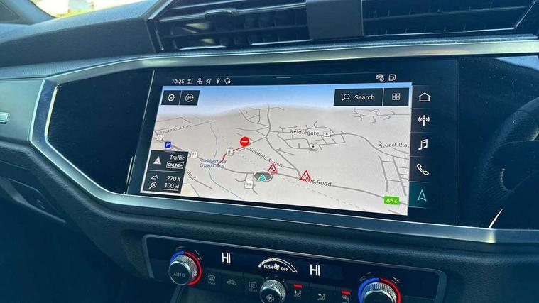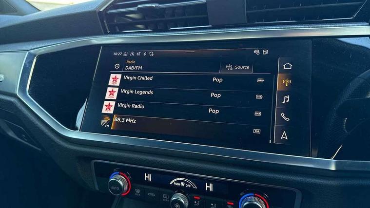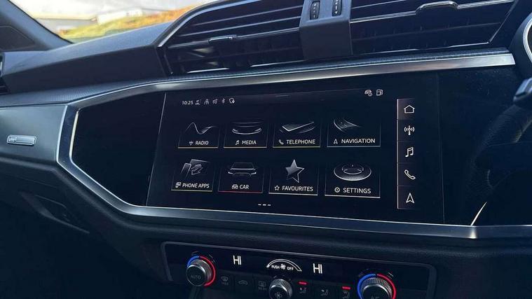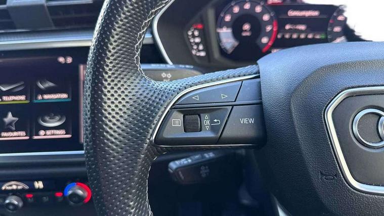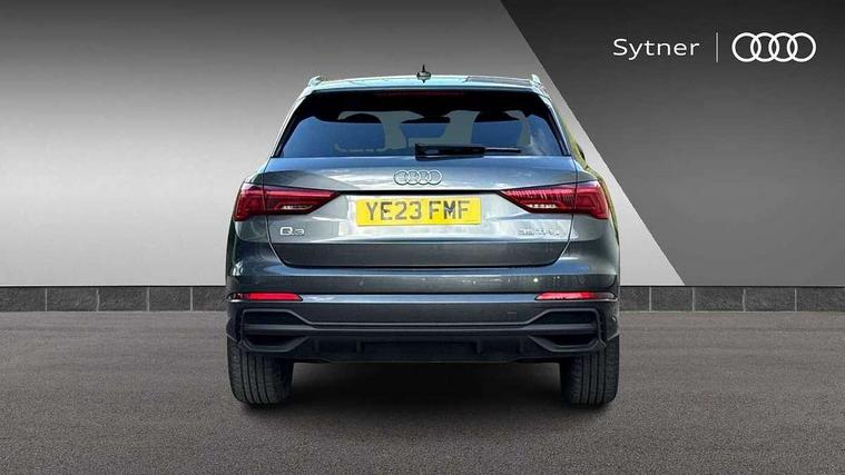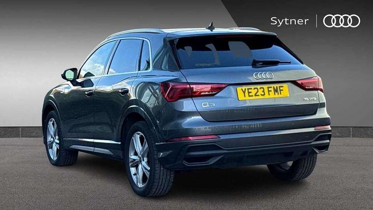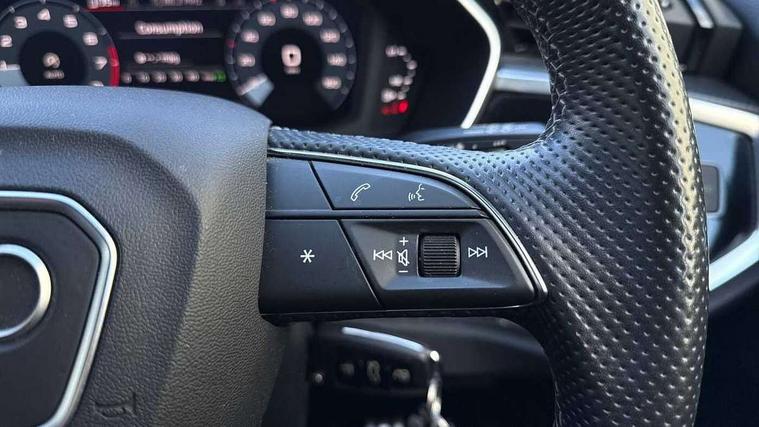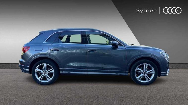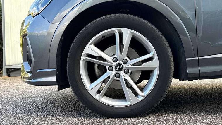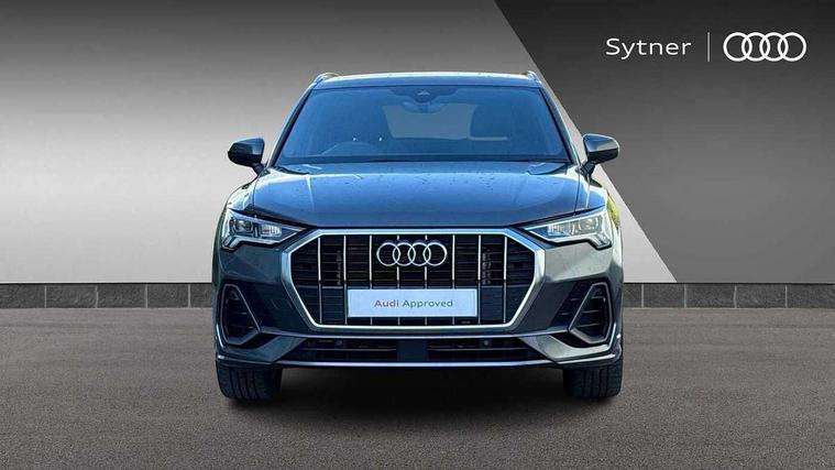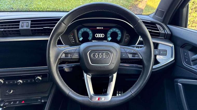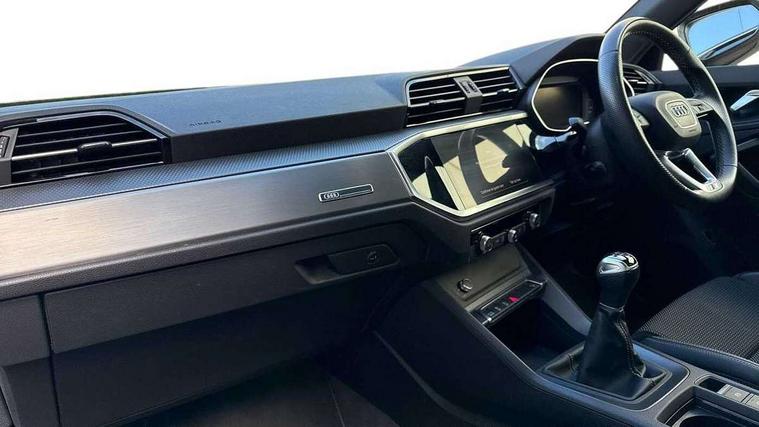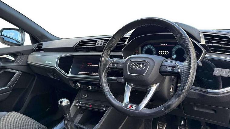 Amazon alexa Integration, Audi drive select, Audi lane departure warning, Audi Virtual Cockpit - 10.25" display, Bluetooth interface, Camera based traffic sign recognition, Cruise control + speed limiter, Legal emergency call, MMI Navigation Plus with high resolution 10.1 inch touchscreen colour display, Power operated tailgate, Progressive steering, Rear parking sensors, Service interval indicator, Smartphone interface includes wireless Apple carplay/Android Auto, Start stop system with recuperation, Voice control system with natural language interaction, Sports suspension, 2 USB-C ports with charge and data functions, 6 passive loudspeakers, DAB digital radio module, Acoustic windscreen, Aluminium roof rails, Aluminium window trim, Anthracite black radiator grille, Auto dimming frameless rear view mirror, Body colour front spoiler blade, Body coloured bumpers, Electrically folding, adjustable and heated door mirrors with integrated LED side indicators and kerb view function for passenger side, Front and rear electric windows, Front fog lights, Front side air inlets in matt platinum grey, Grille vertical bars in aluminium silver/Matt, High gloss black finish B and C pillars, LED Dynamic rear indicators, LED headlights with LED daytime running lights, LED rear lights, LED third brake light, Privacy glass dark tinted rear and rear-side windows (from B-pillar backwards), Rain and light sensors, Rear diffuser grille in grained matt black, Rear diffuser strip in matt anthracite black, Rear side wing doors, Rear wiper, S line badges on front wings, S Line front and rear bumpers, Side skirt insert in matt Platinium grey, Variable front intermittent wipers, 12V socket in rear centre console, 3 seat bench in 2nd row, 3 spoke leather multifunction steering wheel features S badging and grips in perforated leather with contrast stitching, 40:20:40 folding with manual adjustment for 60:40 forwards/backwards position and backrest angle, Adjustable rear seat bench/backrest with centre armrest and cupholder, Black cloth headlining, Dual zone electronic climate control, Front and rear black floor mats with contrast stitching in rock grey, Front and rear headrests, Front and rear roof module including reading lights, Front centre armrest, Glove compartment lighting, Height and reach adjustable steering wheel, Illuminated door sill trims with S logo, ISOFIX child seat mounting for front passenger with airbag deactivation and outer rear seat including top tether attachment point for outer rear seats, Luggage compartment light, Manual front seats with height adjustment, Perforated leather gearknob, Single front passenger seat, Stainless steel luggage compartment sill finisher, Stainless steel pedals, Ambient lighting pack - Q3, Non smoking pack - Q3, 3x3 point rear seatbelts, 6 airbags - Driver, front passenger, curtain and side windows, Audi pre-sense front with pedestrain and cyclist recognition, Electrically operated child locks on rear doors, Electromechanical parking brake, Electronic stabilisation control including ABS, ASR and EDL, Front seatbelt reminder, Hill descent control, Hill hold assist, Pre sense basic, Seatbelt monitoring, Tyre pressure warning, Warning triangle and first aid kit, Anti theft alarm, Anti theft wheel bolts, Immobiliser, Remote central locking, Aluminium look interior elements, Dark matt brushed aluminium inlay, Detail dashboard around MMI touch colour display in glass look, black with surround in aluminium look, Leatherette door armrest,