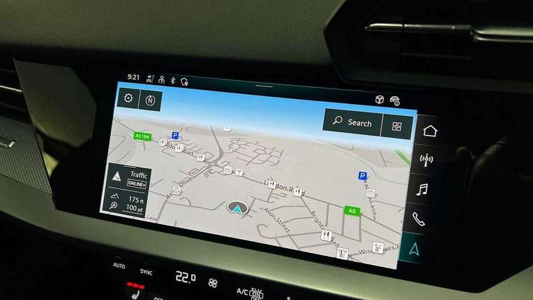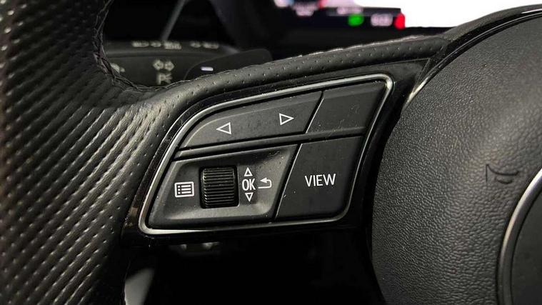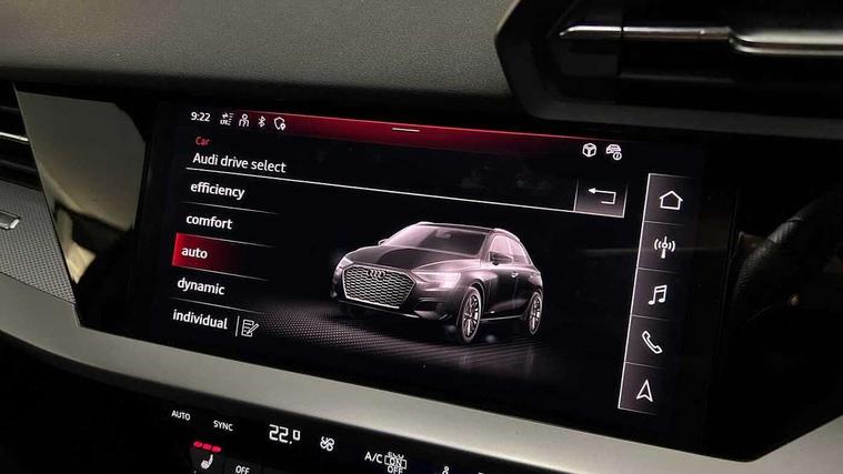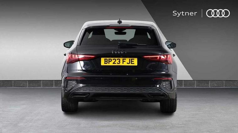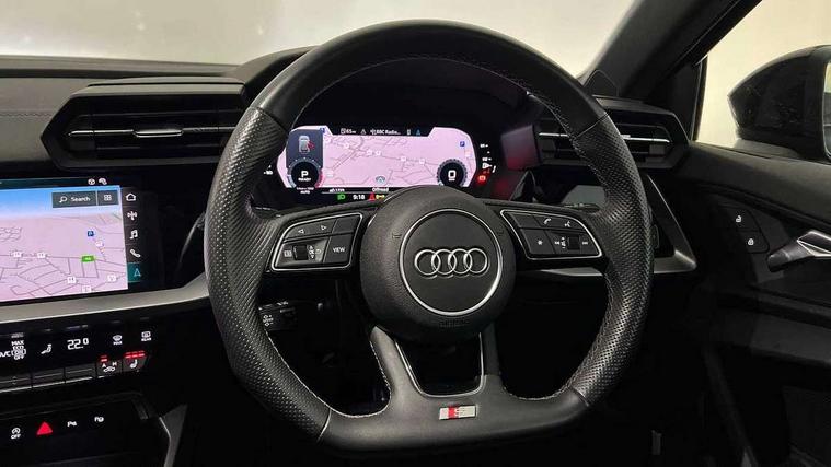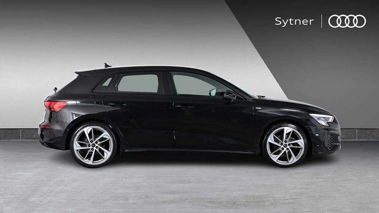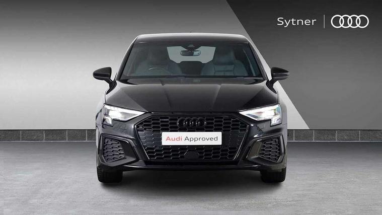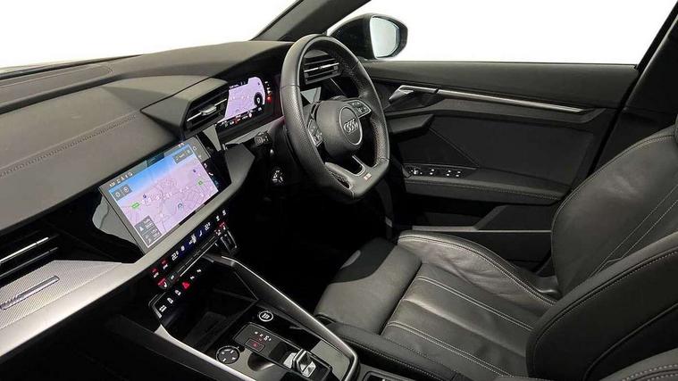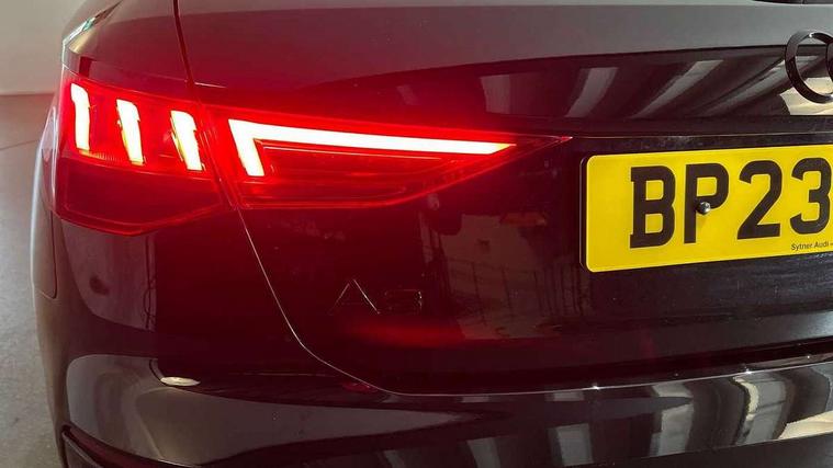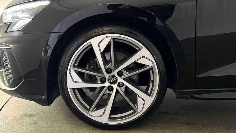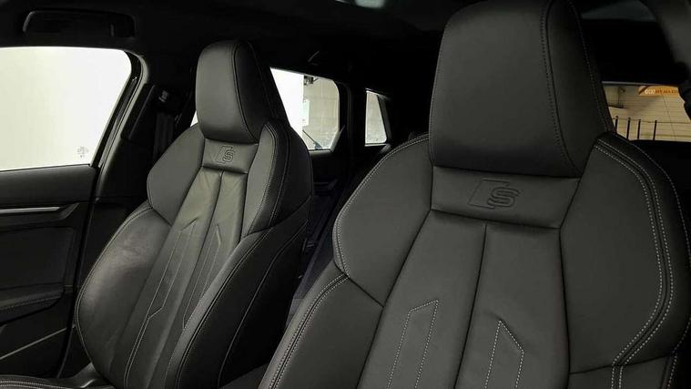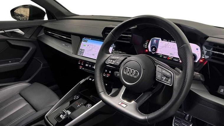 Audi drive select (Auto, Comfort, Dynamic, Efficiency and Individual), Audi smartphone interface, Audi Virtual Cockpit - 10.25" digital and colour instrument cluster, Automatic start/stop system with recuperation, Bluetooth interface, Camera based traffic sign recognition, Collision avoidance assistant, e-Call (emergency call), Electromechanical power speed sensitive steering, Lane departure warning system, MMI Navigation Plus with high resolution 10.1" colour touch screen display, Service indicator, Trip computer, Voice control system with natural language interaction, Sports suspension, 2xUSB-C connection with data and charging functions, 6 passive loudspeakers, DAB Digital radio, 3rd brake light, Acoustic glass windscreen, Audi beam uses LEDs to project the Audi logo onto the ground as you exit your A3, Auto dimming frameless rear view mirror, Electrically adjustable/heated/folding/auto dimming door mirrors with integrated LED indications + kerb view function for passenger side, Front electric windows, Illuminated door sills with aluminium inserts at the front with S logo, LED daytime running lights, LED headlights with LED rear lights and dynamic rear indicators, Light and rain sensors, Privacy glass - dark tinted rear window, rear door and side windows, Rear electric windows, Rear side air outlets in grained matt black, Rear side wing doors, Rear wiper, S roof spoiler, 12V socket and storage compartment in front centre console, 3 seat bench in 2nd row, 4 way electrically adjustable lumbar support for driver and front passenger, 60/40 split folding rear seat bench, Black cloth headlining, Dual zone electronic climate control, Front and rear centre armrest in artificial leather, Front and rear headrests, Front/rear floor mats, Height and reach adjustable steering wheel, Interior lighting - glove compartment light and right hand side, Luggage compartment floor covering, Manual boot compartment lid, Seat side bolsters, Single front passenger seat, Stainless steel pedals and front footrest in black, Twin leather upholstery with front sports seats S embossed logo, Aluminium interior elements pack - A3 Sportback, Black styling pack - A3 Sportback/Black edition, LED interior lighting pack - A3 Sportback, 3x3 point rear seat belts, Driver and front passenger airbag with passenger airbag deactivation, Electronic Stabilisation Control (ESC) including ABS, ASR and EDL, First aid kit with warning triangle and 2 safety vests, Front side airbags with head airbags and interaction airbag, Pre-sense front with pedestrian and cyclist detection, Seatbelt monitoring, Tyre pressure loss indicator, Anti theft alarm, Anti-theft wheel bolts, Electronically operated child locks, Immobiliser, Remote control central locking, Dark spectrum aluminium inlays, accent surfaces in the dashboard and centre console in platinum grey silk effect paint finish, 19" 5 arm trapezoid design alloy wheels in matt grey with diamond cut finish,