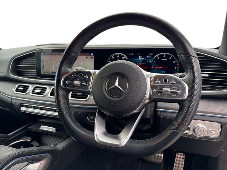 Attention assist, Blind spot assist, Brake wear warning display, Cockpit display 12.3" widescreen digital instrument cluster, Cruise control with variable speed limiter, Direct steer speed sensitive steering, DYNAMIC SELECT with a choice of driving modes (ECO, Comfort, Sport and Individual), Easy-pack tailgate - Powered opening/closing automatically, ECO start/stop function, Geofencing, Hard-disk navigation, Hey Mercedes Voice activation, High resolution 12.3" multimedia colour display, Lane keeping assistant (LKA), MBUX augmented reality for navigation, Mercedes me connect including emergency call system, accident recovery, breakdown and maintenance management, Outside temperature display, Remote boot release, Service indicator (ASSYST), Smartphone integration with Apple CarPlay and Android auto, Speed limit assist, Status display for rear seat belts in instrument cluster, Traffic Sign Assist, Traffic sign recognition including wrong way warning function and display of posted speed limits in the instrument cluster, Trip computer in multifunction display showing current fuel consumption, Wireless charging system for mobile devices, 3.7 kW monophase on board charger, 85 litre fuel tank, Agility control suspension with selective damping system and lowered by 15mm, Charging cable for household sock (mode 2) - 8m, 8A, Charging cable for wallbox and public charging stations (mode 3) - 8m, 16A, Diesel particulate filter (DPF), Incorrect fuelling protection, DAB Digital radio, Dual bluetooth interface, 2 USB ports (type C), Hard disk navigation with MBUX multimedia system, Adaptive brake lights, Adaptive high beam assist, Aerial for GPS, Aluminium look, illuminated running boards with rubber studs, AMG bodystyling front and rear aprons and side skirts in polished aluminium, Body colour door mirrors, Body coloured bumpers, Electric windows with one touch opening/closing and obstruction sensors, Exterior mirrors heated and electronically adjustable, Front green tinted glass, LED rear lights, Multi beam LED headlights, Privacy glass - heat insulating dark tinted glass, Radiator grille with integrated star and single louvre in matt iridium silver with chrome trim, Radio aerial integrated into rear window, Rain sensing windscreen wipers, Rear wiper, Roof rail system, Top surround of side windows in polished aluminium, Visible twin pipe exhaust system integrated into bumper, Waistline in polished aluminium, 3 spoke AMG multifunction steering wheel with touch control buttons, trimmed in black nappa leather with flattened bottom section, 4 way adjustable front head restraints and 2 way rear head restraints, 4 way lumbar support, 40:20:40 split folding rear seats, AMG brushed stainless steel sports pedals with rubber studs, AMG floor mats with AMG lettering, Artico man-made leather upper dashboard with contrast topstitching, Automatic child seat recognition sensor, Black fabric roof liner, Central stowage compartment with 12 V socket in centre console, Chrome door pins, Courtesy lights in rear grab handles with reading light functionality, Four way partially front electric seat adjustment, Front centre armrest with stowage compartment and illuminated grab handles, Gearshift paddles on steering wheel, Glasses compartment in overhead control panel, Glove compartment - lockable, air conditioned and illuminated, Heated front seats, Interior lighting - 64 colour Ambient lighting, Nappa leather upholstery, Seat occupancy sensor for front passenger seat, Second row three seats, Sports steering wheel, Steering column manually adjustable for height and reach, Sunvisors with illuminated vanity mirrors, Touchpad, Two zone automatic climate control, Airmatic package - GLE, Anti theft Protection package - GLE, Memory package - GLE, Mirror package - GLE, Parking package with 360 camera - GLE, Active bonnet, Active braking assist, Adaptive brake system with HOLD function and brake drying in the wet, Airbags - driver and front passenger, with extended adaptivity for front passenger airbag, Airbags - sidebag for driver and front passenger with combined thorax/pelvis bag, Airbags - windowbags, Anti-lock braking system (ABS), Childproof locks manually operated for rear doors and electrically operated for rear power windows, Drivers knee airbag, Electronic parking brake, Electronic Stability Programme (ESP), ISOFIX child seat attachment points two outer rear seats, Perforated front brake discs and brake calipers with Mercedes-Benz lettering, Pre-Safe anticipatory safety system, Three point rear seat belts, Tyre pressure monitoring system and loss warning system, Warning triangle and first aid kit, Alarm system/interior protection/immobiliser, Central locking with interior switch, automatic locking and crash sensor with emergency opening function, Chrome surround electric key, Keyless Go starting function, Dashboard and door, anthracite open pore oak wood trim, Trim - Centre console, anthracite open pore oak wood trim, 22" AMG 5 twin spoke tremolite grey with high sheen finish light alloy wheels, Summer tyres with noise reducing absorber, TIREFIT with tyre inflation compressor,