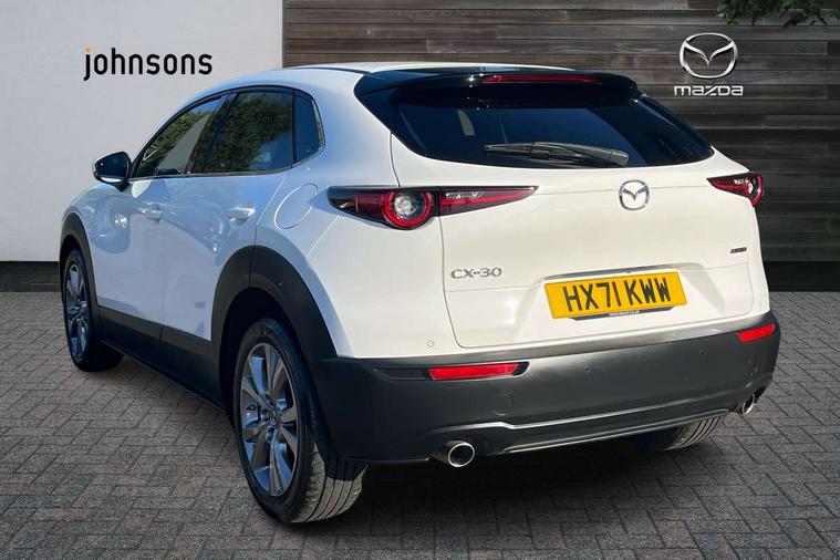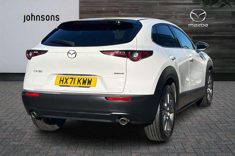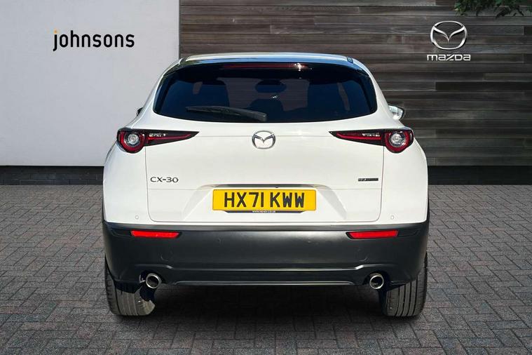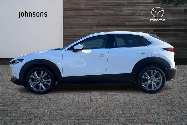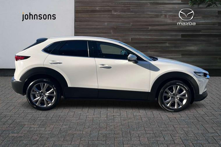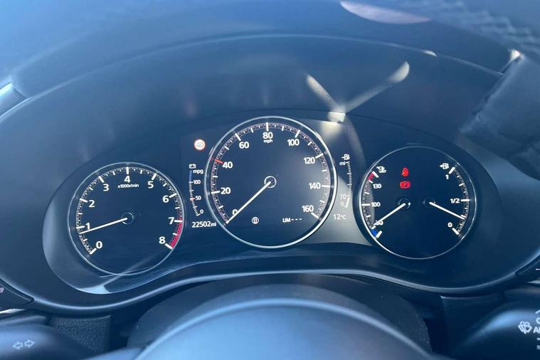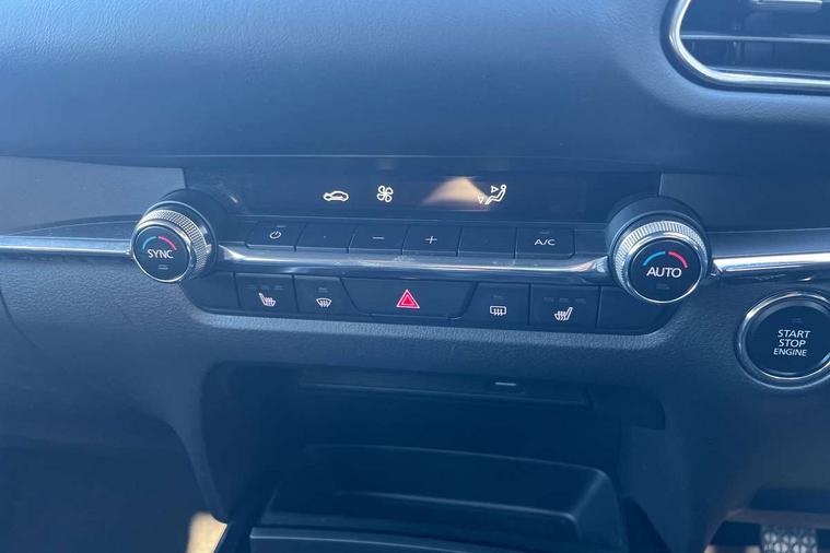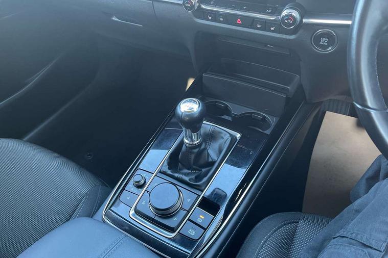 7" TFT Colour driver instrument panel display, 8.8" Colour centre touch screen display with Mazda Connect infotainment, Adaptive cruise control (Mazda radar cruise control), Apple car play/Android Auto, Blind spot monitoring with rear cross traffic alert, Driver attention alert system, E-call with GPS, Emergency stop signalling system, Engine start/stop button, Front and rear parking sensors, Integrated bluetooth, Integrated Mazda navigation system, Intelligent speed assist, Lane keep assist system (LAS) with Lane departure warning system (LDWS), Mazda connected services, PAS, Power lift gate, Reversing camera, Service indicator, Traffic sign recognition, Trip computer, Cylinder Deactivation, i-stop, 2 USB charging ports in front inner central armrest, AM / FM / DAB radio with 8 speakers, Multimedia Commander including separate volume dial, Steering wheel mounted audio/bluetooth controls, Adaptive LED Headlights, Auto dimming driver's door mirror, Auto headlight levelling, B-pillar and C-pillar garnishes in piano black finish, Body coloured, electrically adjustable, heated auto power folding door mirrors with integrated indicators, Chrome finish signature wing in front grille, Coming/leaving home lighting function, Dual chrome exhaust, Dusk sensing headlights, Electric front/rear windows with one touch auto up/down, Frameless auto dimming interior rear view mirror, Front kodo turn signal, Gloss black front grille, Gloss black rear roof spoiler, High beam assist, LED signature daytime running lights, Privacy glass (rear side windows and rear screen), Rain sensing front wipers with adjustable speed and intermittent wipe, Rear fog lights, Rear wiper, Signature LED rear combination lights, 12V power outlet in centre console, 60/40 split fold down rear seats, Chrome horn pad ring, Chrome interior trim accents with steering wheel centre bezel, surround of engine start / stop button and glove box handle, Cloth upholstery with interior accents, Dark cloth door panel inserts, Dashboard, door cards and front centre armrest in black cloth, Driver and front passenger visors with covered vanity mirror and driver ticket holder, Driver seat manual slide, recline, height and seat tilt adjust, Driver, front passenger and two rear door storage, Driver, Front passenger and two rear grab handles with coathooks, Dual zone climate control air conditioning with rear air vents, Folding rear centre armrest with two cup holders, Front and rear (x3) head restraints, Front and rear LED lighting, Front armrest, Front centre storage with two cupholders with lid, Front passenger seatback pockets, Front passengers seat manual slide, recline and height adjustment, Gear shift indicator, Glovebox illumination, Heated front seats with 3 stage setting, ISOFIX child seat anchorage points attached on outer rear seats, Leather wrapped gear shift knob, Leather wrapped steering wheel with telescopic and tilt adjustment, LED luggage compartment lighting, Light roof headlining and pillars, Roof mounted sunglasses holder, 3 point ELR front seat belts x2 with pretensioners, 3 point ELR rear seat belts, Anti-lock braking system (ABS), Drivers knee airbag, DSC - Dynamic Stability Control, Electronic parking brake with auto disengage function and auto hold function, Front and rear curtain airbags, Front dual stage driver and single stage front passenger airbags, Front passenger airbag cut-off switch, Front side airbags, Front smart city brake support, G-Vectoring control plus, Hill launch assist, Mild Hybrid system with regenerative braking, Seatbelt reminder for driver/front passenger and rear seats, Traction control system (TCS), Tyre pressure monitoring system (TPMS), Remote central locking with deadlocking and automatic door lock when driving, Smart keyless entry, Thatcham accredited alarm and immobiliser, 18" Silver alloy wheels, Emergency tyre repair kit,