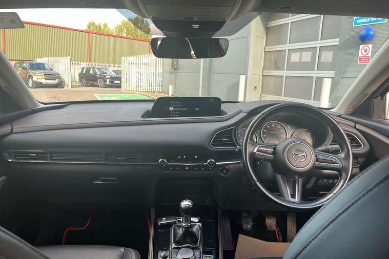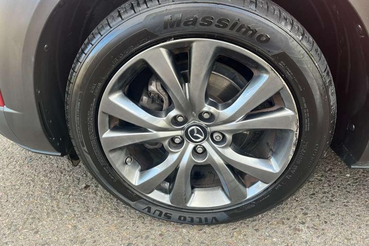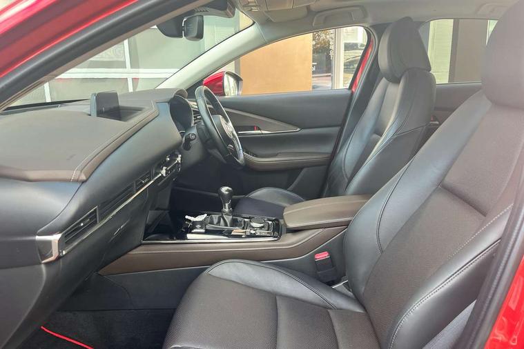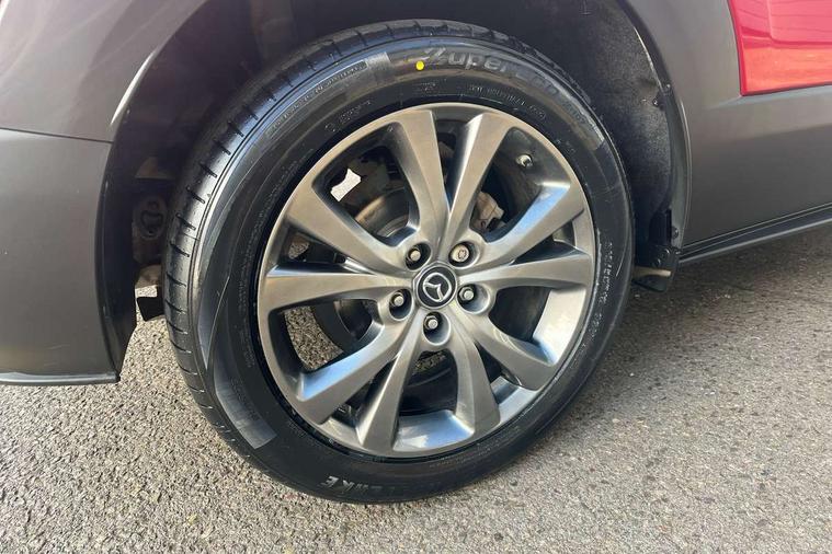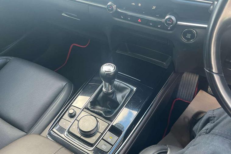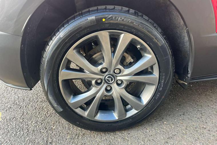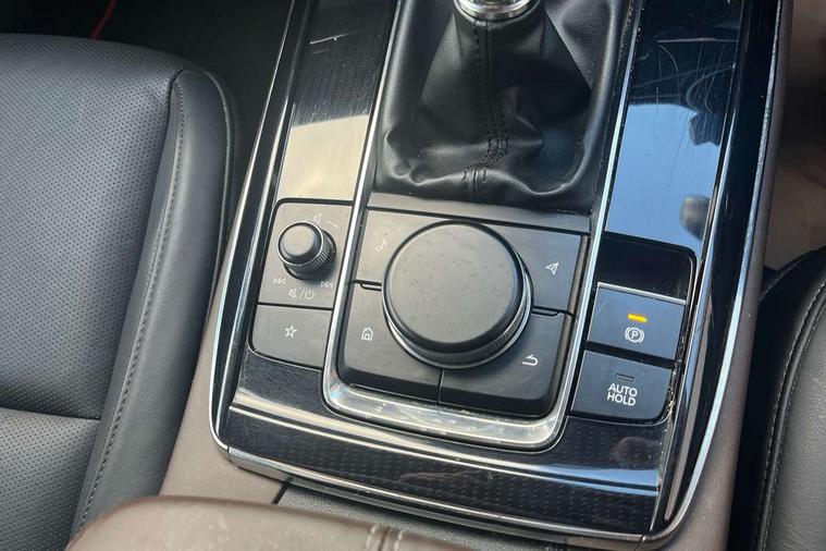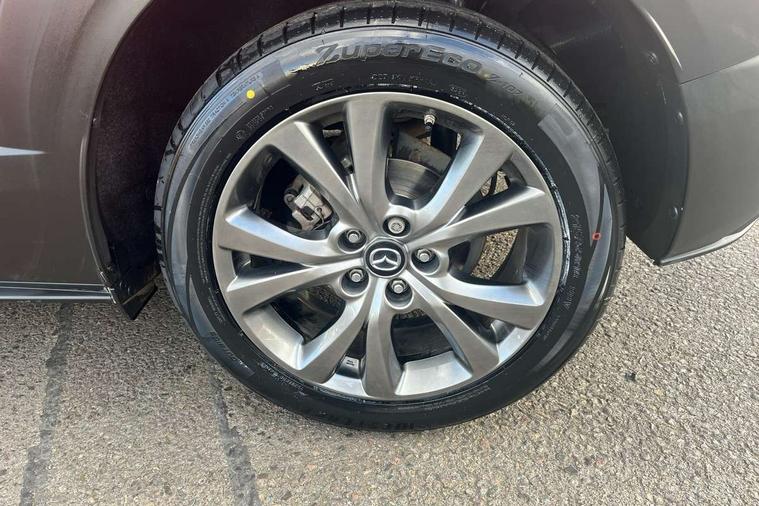 7" TFT Colour driver instrument panel display, 8.8" Colour centre touch screen display with Mazda Connect infotainment, Adaptive cruise control (Mazda radar cruise control), Apple car play/Android Auto, Blind spot monitoring with rear cross traffic alert, Driver attention alert system, E-call with GPS, Emergency stop signalling system, Engine start/stop button, Front and rear parking sensors, Integrated bluetooth, Integrated Mazda navigation system, Intelligent speed assist, Lane keep assist system (LAS) with Lane departure warning system (LDWS), Mazda connected services, PAS, Power lift gate, Reversing camera, Service indicator, Tailgate, Traffic sign recognition, Trip computer, Windscreen projected colour active driving display (HUD), i-stop, 2 USB charging ports in front inner central armrest, AM/FM and DAB radio, Bose surround sound system with 12 Speaker, Bose center point, Bass match and audio pilot technology, Multimedia Commander including separate volume dial, Steering wheel mounted audio/bluetooth controls, Adaptive LED Headlights, Auto dimming driver's door mirror, Auto headlight levelling, B-pillar and C-pillar garnishes in piano black finish, Body coloured, electrically adjustable, heated auto power folding door mirrors with integrated indicators, Chrome finish signature wing in front grille, Coming/leaving home lighting function, Door mirrors with adjustable memory and tilt-down function when reversing, Dual chrome exhaust, Dusk sensing headlights, Electric front/rear windows with one touch auto up/down, Frameless auto dimming interior rear view mirror, Front kodo turn signal, Gloss black front grille, Gloss black rear roof spoiler, High beam assist, LED signature daytime running lights, Power tilt/slide sunroof, Privacy glass (rear side windows and rear screen), Rain sensing front wipers with adjustable speed and intermittent wipe, Rear fog lights, Rear side wing doors, Rear wiper, Signature LED rear combination lights, Third brake light, 12V power outlet in centre console, 3 seat bench in 2nd row, 60/40 split fold down rear seats, Chrome horn pad ring, Chrome interior trim accents with steering wheel centre bezel, surround of engine start / stop button and glove box handle, Dashboard, door cards and front centre armrest in rich brown leather, Driver and front passenger visors with covered vanity mirror and driver ticket holder, Driver's seat, power tilt, slide, recline, height and lumbar adjustment, Driver, front passenger and two rear door storage, Driver, Front passenger and two rear grab handles with coathooks, Dual zone climate control air conditioning with rear air vents, Folding rear centre armrest with two cup holders, Front and rear (x3) head restraints, Front and rear LED lighting, Front armrest, Front centre storage with two cupholders with lid, Front passenger seatback pockets, Front passengers seat manual slide, recline and height adjustment, Gear shift indicator, Glovebox illumination, Heated front seats with 3 stage setting, Heated steering wheel, ISOFIX child seat anchorage points attached on outer rear seats, Leather upholstery with interior accents, Leather wrapped gear shift knob, Leather wrapped steering wheel with telescopic and tilt adjustment, LED luggage compartment lighting, Light roof headlining and pillars, Rear armrest inner material in cloth, Roof mounted sunglasses holder, Single front passenger seat, 3 point ELR front seat belts x2 with pretensioners, 3 point ELR rear seat belts, Anti-lock braking system (ABS), Drivers knee airbag, DSC - Dynamic Stability Control, Electronic parking brake with auto disengage function and auto hold function, Front and rear curtain airbags, Front dual stage driver and single stage front passenger airbags, Front passenger airbag cut-off switch, Front side airbags, Front smart city brake support, G-Vectoring control plus, Hill launch assist, Manual child lock in rear doors, Mild Hybrid system with regenerative braking, Seatbelt reminder for driver/front passenger and rear seats, Traction control system (TCS), Tyre pressure monitoring system (TPMS), Remote central locking with deadlocking and automatic door lock when driving, Smart keyless entry, Thatcham accredited alarm and immobiliser, Dark vinyl door panel inserts, 18" Bright alloy wheels, Emergency tyre repair kit,