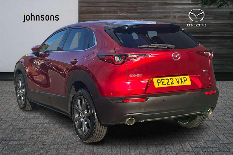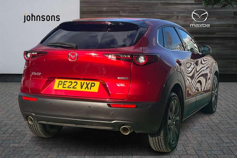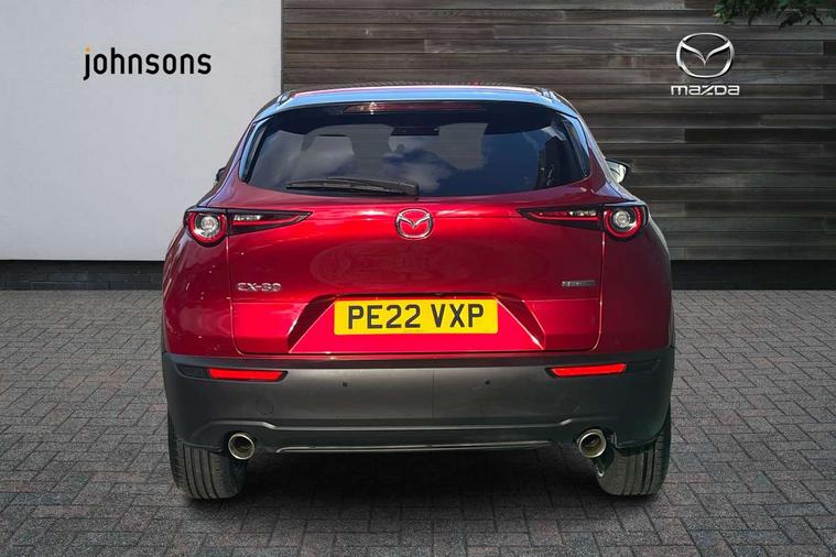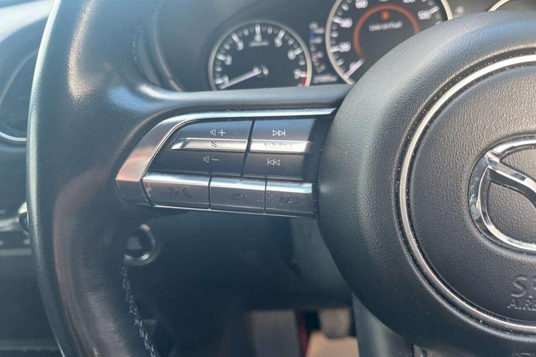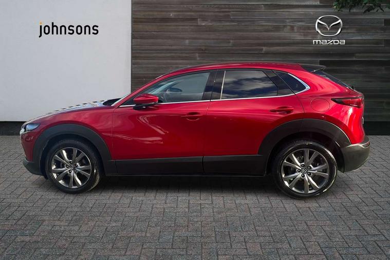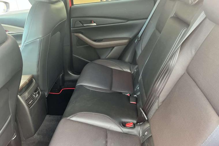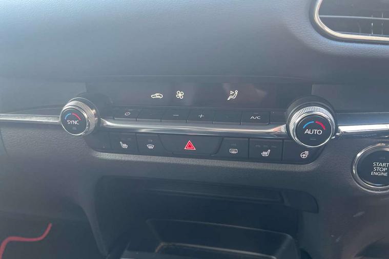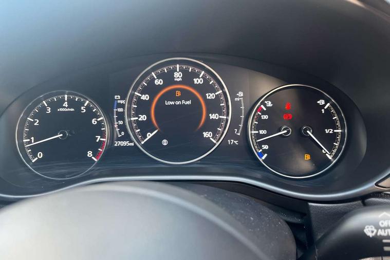 7" TFT Colour driver instrument panel display, 8.8" Colour centre touch screen display with Mazda Connect infotainment, Adaptive cruise control (Mazda radar cruise control), Apple car play/Android Auto, Blind spot monitoring with rear cross traffic alert, Driver attention alert system, E-call with GPS, Emergency stop signalling system, Engine start/stop button, Front and rear parking sensors, Integrated bluetooth, Integrated Mazda navigation system, Intelligent speed assist, Lane keep assist system (LAS) with Lane departure warning system (LDWS), Mazda connected services, PAS, Power lift gate, Reversing camera, Service indicator, Tailgate, Traffic sign recognition, Trip computer, Windscreen projected colour active driving display (HUD), i-stop, 2 USB charging ports in front inner central armrest, AM/FM and DAB radio, Bose surround sound system with 12 Speaker, Bose center point, Bass match and audio pilot technology, Multimedia Commander including separate volume dial, Steering wheel mounted audio/bluetooth controls, Adaptive LED Headlights, Auto dimming driver's door mirror, Auto headlight levelling, B-pillar and C-pillar garnishes in piano black finish, Body coloured, electrically adjustable, heated auto power folding door mirrors with integrated indicators, Chrome finish signature wing in front grille, Coming/leaving home lighting function, Door mirrors with adjustable memory and tilt-down function when reversing, Dual chrome exhaust, Dusk sensing headlights, Electric front/rear windows with one touch auto up/down, Frameless auto dimming interior rear view mirror, Front kodo turn signal, Gloss black front grille, Gloss black rear roof spoiler, High beam assist, LED signature daytime running lights, Power tilt/slide sunroof, Privacy glass (rear side windows and rear screen), Rain sensing front wipers with adjustable speed and intermittent wipe, Rear fog lights, Rear side wing doors, Rear wiper, Signature LED rear combination lights, Third brake light, 12V power outlet in centre console, 3 seat bench in 2nd row, 60/40 split fold down rear seats, Chrome horn pad ring, Chrome interior trim accents with steering wheel centre bezel, surround of engine start / stop button and glove box handle, Dashboard, door cards and front centre armrest in rich brown leather, Driver and front passenger visors with covered vanity mirror and driver ticket holder, Driver's seat, power tilt, slide, recline, height and lumbar adjustment, Driver, front passenger and two rear door storage, Driver, Front passenger and two rear grab handles with coathooks, Dual zone climate control air conditioning with rear air vents, Folding rear centre armrest with two cup holders, Front and rear (x3) head restraints, Front and rear LED lighting, Front armrest, Front centre storage with two cupholders with lid, Front passenger seatback pockets, Front passengers seat manual slide, recline and height adjustment, Gear shift indicator, Glovebox illumination, Heated front seats with 3 stage setting, Heated steering wheel, ISOFIX child seat anchorage points attached on outer rear seats, Leather upholstery with interior accents, Leather wrapped gear shift knob, Leather wrapped steering wheel with telescopic and tilt adjustment, LED luggage compartment lighting, Light roof headlining and pillars, Rear armrest inner material in cloth, Roof mounted sunglasses holder, Single front passenger seat, 3 point ELR front seat belts x2 with pretensioners, 3 point ELR rear seat belts, Anti-lock braking system (ABS), Drivers knee airbag, DSC - Dynamic Stability Control, Electronic parking brake with auto disengage function and auto hold function, Front and rear curtain airbags, Front dual stage driver and single stage front passenger airbags, Front passenger airbag cut-off switch, Front side airbags, Front smart city brake support, G-Vectoring control plus, Hill launch assist, Manual child lock in rear doors, Mild Hybrid system with regenerative braking, Seatbelt reminder for driver/front passenger and rear seats, Traction control system (TCS), Tyre pressure monitoring system (TPMS), Remote central locking with deadlocking and automatic door lock when driving, Smart keyless entry, Thatcham accredited alarm and immobiliser, Dark vinyl door panel inserts, 18" Bright alloy wheels, Emergency tyre repair kit,