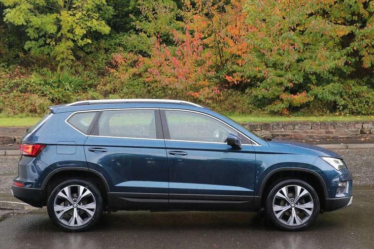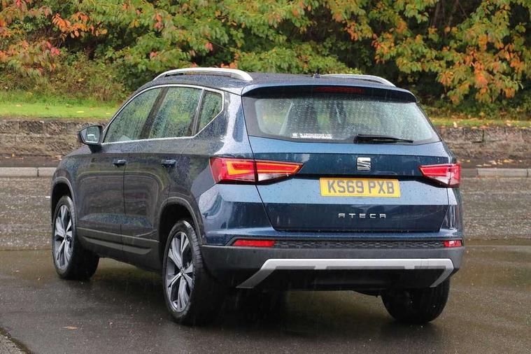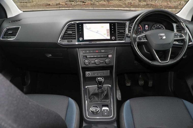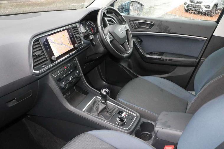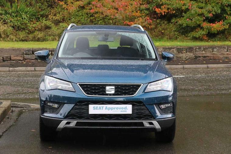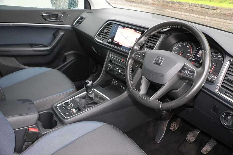 'Lights On' Reminder warning buzzer, 3.5" driver's display, Cruise control, Digital clock, Driver alert system, Electric speed sensitive power steering, Front assist city emergency braking and pedestrian protection, Full Link Smartphone Integration with Mirror Link, Apple Car Play, Google Android Auto, Low fuel warning light, Multi function display, Outside temperature gauge, Remote fuel flap release, RPM counter, Satellite navigation system, SEAT drive profile with driving experience button, SEAT logo boot release, Self parking functionality (includes front and rear parking sensors), Trip computer, Comfort suspension, XDS electronic differential lock, SEAT USB media cable, Steering wheel mounted audio/phone controls, Armrest with air outlet in rear, Black wheel arch extensions, Body colour bumpers, Body colour door handles, Body colour door mirrors, Chrome front grille frame, Chrome headlight surround, Chrome roof rails, Chrome side window trim, Door mirrors with welcome light silhouette, Electric adjustable/heated/folding door mirrors, Front and rear electric windows, Full LED headlights, Hidden exhaust pipe, LED daytime running lights, LED front fog lights, Matt black radiator grille, Rear fog lights, Rear LED tail lights, Rear wash/wipe, 12v socket in front, 4 Lashing eyes in boot, 60/40 split folding rear seat, Active head restraints, Adjustable front armrest with storage compartment, Ambient spot lighting and front footwell illumination, Cloth upholstery with front comfort seats, Driver and passenger seats, height-adjustable, with lumbar adjustment and height-adjustable headrests, Driver and passenger sun visor, covered and illuminated mirror, driver sun visor with card holder, Dual zone climate control, Front courtesy lights, Front cupholders, Front reading lights, Front seat back storage pockets, Gear shift indicator, Illuminated boot, Illuminated glovebox, Instrument lighting with brightness control, ISOFIX points in outer rear seats with top tether anchorage points, Leather steering wheel and gear knob, Rear armrest and easy back seat release mechanism from boot, Rear head restraints, Rear reading lights, Storage box under drivers seat, Navigation system pack - Ateca, 3x3 point rear seatbelts, ABS, Automatic post collision braking, Driver/Front Passenger airbags, Drivers knee airbag, Electronic parking brake with auto hold, Electronic stability control, ESP+EBA, Front and rear seatbelt reminder, Front passenger airbag deactivation, Front side airbags, Hill hold control, Tiredness recognition system, Traction control, Twin curtain airbags, Tyre pressure monitoring system, 2 folding remote keys with window open/close function, Immobiliser, Locking wheel bolts, Remote central locking, Volumetric alarm with back up horn, Chrome interior detailing, 18" Performance machined alloy wheels 36/2,