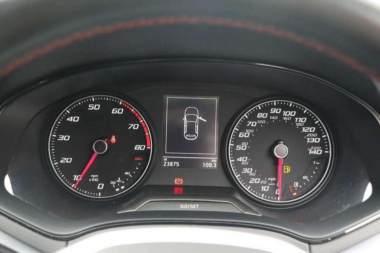 'Lights On' Reminder warning buzzer, 8" Digital cockpit, 9.2" touchscreen navigation system with type C USB socket, Voice control and DAB/AM/FM radio, Auto start and stop system, Bluetooth audio streaming with handsfree system, Digital clock, E-call, Full link smartphone integration with mirror link, wireless apple carplay, Google android auto + USB Type C cable for apple and android devices, Lane assist, Low fuel warning light, Outside temperature gauge, Power Steering, Seat connect with safety, service, remote and online, SEAT drive profiles and ECO function, SEAT logo boot release, Speed limiter, Trip computer, Sports suspension, Auxiliary input socket, Radio/MP3 player, SD card slot, Steering wheel mounted controls, Anti theft roof antenna, Auto dimming rear view mirror, Automatic rain sensing wipers, Black door mirrors, Body colour bumpers, Body colour door handles, Brilliant black window surrounds, Dark tinted rear windows, Electric adjustable/heated/folding door mirrors, Electric front windows, Electric headlight adjustment, Electric rear windows, Front/rear fog lights, FULL LED automatic headlights with dynamic headlight range control, coming and leaving home, LED daytime running lights, LED tail lights, Rear roof spoiler with FR twin exhausts, Rear side wing doors, Rear wiper, Third brake light, 3 seat bench in 2nd row, 60/40 split folding rear seat, Ambient interior lighting, Chrome detailing and black headlining, Cloth upholstery, Dual zone climate control with combination filter, Front courtesy lights, Front cupholders x 2, Front reading lights, Gear shift indicator, Glovebox, Height adjustable front and rear headrests (five), Height adjustable front seats, Height/reach adjust steering wheel, Illuminated air vent surrounds, Illuminated boot, Instrument lighting with brightness control, Isofix, Leather multifunction flat bottomed sports steering wheel, Passenger sunvisor, Single front passenger seat, Sports seats, Sunvisors with mirror and driver side card holder, 3 point seatbelts on all 3 rear seats, ABS, Active front headrests, Child locks on rear doors, Electronic stability control, Energy recovery system, Front assist forward collision warning and autonomous emergency braking, Front driver and passenger side airbags with curtain airbag and front passenger airbag deactivation, Hill hold control, Multi-Collision braking, Seat belt reminder for front and rear seats, Tiredness recognition system, Tyre pressure monitoring system, Electronic engine immobiliser, Locking wheel bolts, Perimeter alarm and interior monitoring with backup horn and tow away protection, Remote central locking + deadlocks, 17" Alloy wheels in Brilliant silver,