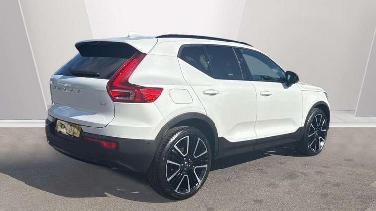 12.3" Progressive Driver Display, 360 degree surround view parking camera with side proximity sensors, 9" centre console portrait touch screen, Adjustable steering wheel force, Android auto (Wired), Apple carplay (wired), Bluetooth handsfree system, Driver alert control, Driver assistance (pilot assist and adaptive cruise control), Driver awareness - Blind spot information system with steer assist, cross traffic alert with autobrake and rear collision warning and mitigation, E-call, Front park assist, Google automotive services - Enabled entertainment apps, navigation with google maps, voice recognition with google assistant, Hands free power tailgate, Intelligent speed assistance, Lane keeping aid, Oncoming Lane Mitigation, Rear park assist, Speed sensitive steering, Volvo cars services with app - Driving journal, emergency and breakdown call, engine remote start, remote door locking/unlocking and vehicle dashboard, Wireless/Inductive Mobile Phone Charging, Automatic transmission with start/stop and manual change functions, Dynamic chassis, DAB Digital radio, Premium Sound by Harman Kardon, Dolby Pro Logic II Surround Sound, Dirac Unison, 12 speakers/600W and subwoofer, Steering wheel mounted remote controls, Active bending pixel LED headlights with adaptive shadow technology, Active high beam incorporating daytime running lights, Adaptive brake lights with high level LED brake lights, Auto dimming feature for exterior door mirrors, Auto dimming interior mirror, Automatic headlamp levelling, Dark tinted windows - rear side windows and rear screen, Front aluminium tread plates, Front and rear electric windows, Headlight cleaning system, High gloss black front and rear skid plate, High gloss black front bumper deco, High gloss black mesh front grille with high gloss black surround, High gloss black window trim, Home safe and approach lighting, Integrated roof rails in high gloss black, LED front fog lights with cornering function, Power glass tilt and slide panoramic sunroof with sun curtain, Puddle lights, Rain sensor with automatic windscreen wiper activation, Rear side wing doors, Rear wiper, Roof antenna, Roof spoiler, Visible VIN plate, 12V socket in front tunnel console and luggage compartment, 2-Zone electronic climate control with CleanZone air quality system and pollen filter, 3 seat bench in 2nd row, 3 Spoke tailored steering wheel with chrome trim, 60/40 versatile split folding rear seat, Centre console cupholders and storage, Flexible load floor and grocery bag holder, Floor mats, Front cabin courtesy lights, Front door pocket, front cupholder, ambient front door, rear reading, rear courtesy, instrument panel and tailgate lighting, Front footwell illumination, Front headrests, Front reading lights, Front seat cushion extensions, Front side step illumination (under door), Glovebox bag hook, Heated front seats, Height/reach adjustable steering column, High gloss centre tunnel deco, Illuminated glovebox, Illuminated luggage compartment, Illuminated vanity mirrors + ticket holder, Integrated waste bin, Isofix attachments on outer rear seats, Load cover, Load protection net, Multi directional lumbar support for driver and passenger seat, Power driver seat with memory + exterior mirrors memory, Power folding rear headrests, Power passenger seat, Rear armrest with cupholders, Single front passenger seat, Underfloor cargo storage, Climate pack without heated front seats - XC40, 3x3 point rear seatbelts, City safety with steering support with Pedestrian + cyclist + front collision warning with full auto brake and rear auto brake, Driver and passenger airbags, Drivers knee airbag, Electronic parking brake with auto hold, First aid kit, Front and outer rear seatbelt reminder and pretensioners, Front seats SIPS airbags, Hill descent control, Hill start assist, Inflatable curtain, Passenger airbag cut-off device, Power child locks on rear doors, Road sign information display, Run off Road Protection, SIPS (Side Impact Protection System), Slippery road and hazard light alert, Stability and Traction Control with Spin control, Engine Drag Control and Corner Traction Control, Tyre pressure monitoring system, Vehicle deceleration control with Anti-lock Brake System, Electronic Brake Distribution and Emergency Brake Assist, Warning triangle, WHIPS whiplash protection system - front, 2 x Key integrated remote control central locking including with deadlocking system and auto open/close windows and sunroof, Anti-theft alarm including immobiliser/volume sensor + level sensor, Keyless drive includes keyless entry and keyless start, Locking wheel nuts,