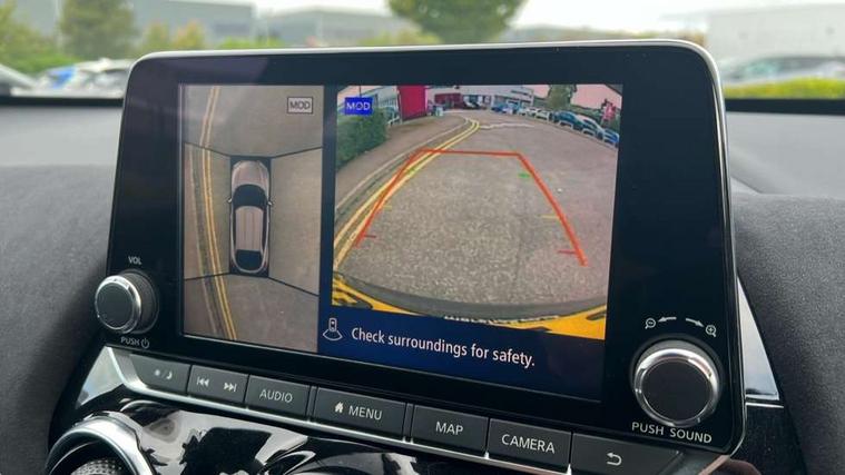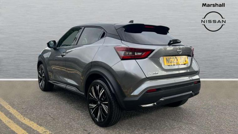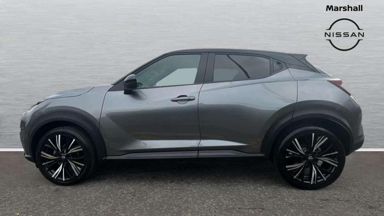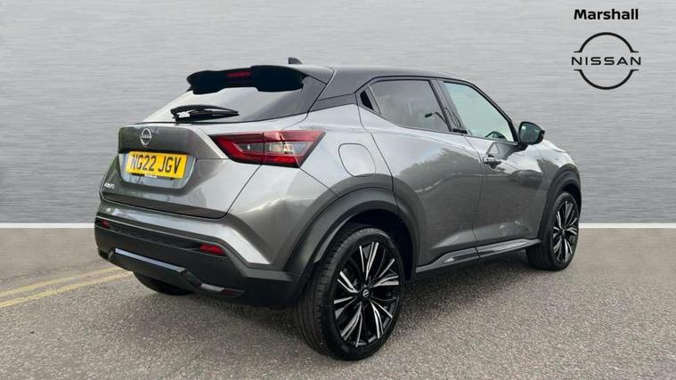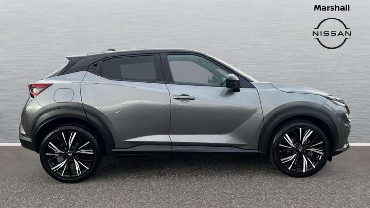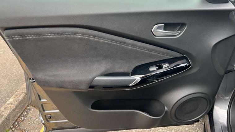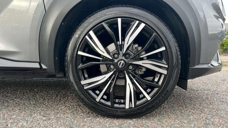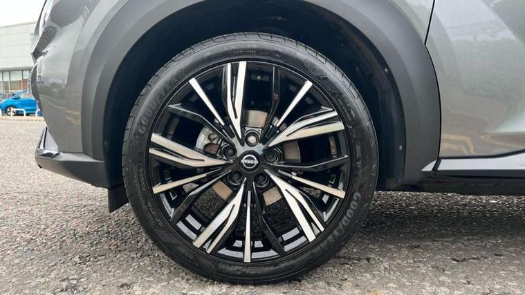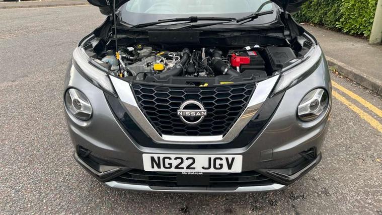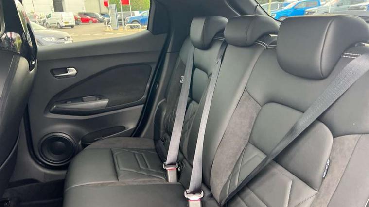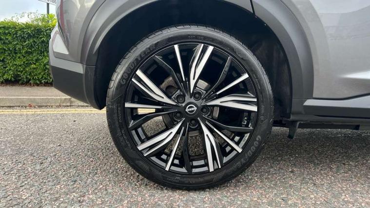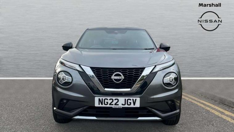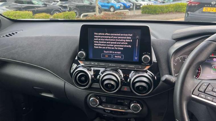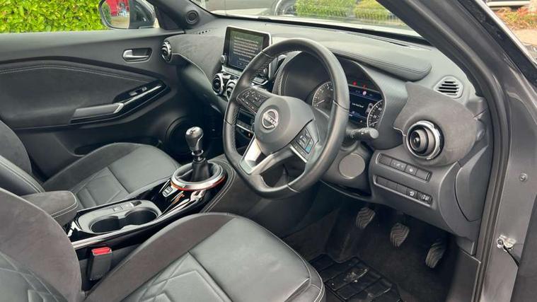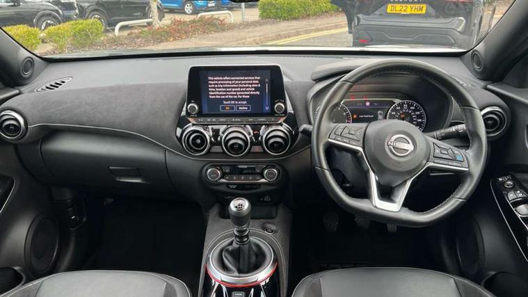 7" full colour TFT screen combimeter, Apple CarPlay and Google Android auto, Drive modes select (Eco, normal and sport), Emergency and breakdown call, Front parking sensor, Idle start/stop system, Intelligent lane intervention, Lane departure warning system, Nissan connect 8" touch screen entertainment system, Nissan connect nav with TomTom traffic, Nissan connect services and Wifi connection, Outside temperature sensor, Power Steering, Rear parking sensor, Traffic sign recognition, Trip computer, Voice recognition, Gasoline particulate filter, 10 Bose speakers 6 speakers and 2 headrest speakers for driver/passenger seats, Bluetooth system, USB, Aux-in and 12V socket, Bose personal sound stage control, DAB Digital radio, Rear console USB port, Auto dimming interior rear view mirror, Auto headlights, Automatic hazard signal with emergency stop signal, Body colour bumpers, Body colour door handles, Electrically adjustable door mirrors with integrated indicators, Follow me home headlights, Front and rear electric window with one touch driver window, Heated and auto folding door mirrors, High beam assist, LED daytime running lights, LED front fog lights, LED headlamps, LED rear fog lamp, LED rear lamps, Rain sensor windscreen wipers, Rear privacy glass, Rear side wing doors, Rear wiper, Satin silver front bumper finisher, Thermaclear heated windscreen, Three blink turn signal, 3 height adjustable rear headrests, 3 seat bench in 2nd row, 60/40 split folding rear seat, Automatic climate control, Card holder on driver sunvisor, Door ambient lighting, Driver and passenger sliding and reclining seats, Driver seat back pocket, Driver side rear coat hanger, Driver/passenger sunvisors and vanity mirrors, Front and rear cabin lights, Front armrest, Front door pockets with bottle holders, Front head restraints, Front passenger isofix child seat anchorage point, Front/rear passenger grab handles, Gear console ambient circle lighting, Grey synthetic leather kneepad, Heated front seats, Height adjustable driver's seat, Height adjustable passenger seat, Internal chrome door handles, Leather gearshift knob, Leather steering wheel, Luggage board, Luggage space lighting, Monoform sporty seats, Multifunction steering wheel, Passenger seat back pocket, Rear door bottle holders, Single front passenger seat, Telescopic steering wheel adjustment, Two cupholders in front centre console, Two rear isofix child seat anchorage points with top tether, Welcome light and console tray ambient lighting, Advanced safety shield pack - Juke, ABS with EBD and brake assist, Active ride control, Active Trace Control, Driver and passenger airbags, Driver and passenger side airbags, Electric handbrake with auto hold function, Electronic Stability Programme (ESP), Front and rear curtain airbags, Height adjustable seatbelts, Hill start assist, Intelligent emergency braking with pedestrian and cyclist recognition, Rear door child safety locks, Seatbelt reminder for driver/front passenger and rear seats, Single tone horn, Three 3 point rear seatbelts, Traction control, Tyre pressure monitoring system, VDC Dynamic Vehicle Control, Ventilated rear brake discs, Alarm, Immobiliser, Intelligent key and start push button with walk away lock and approach unlock functions, Remote central locking, 19" Akari alloy wheels,