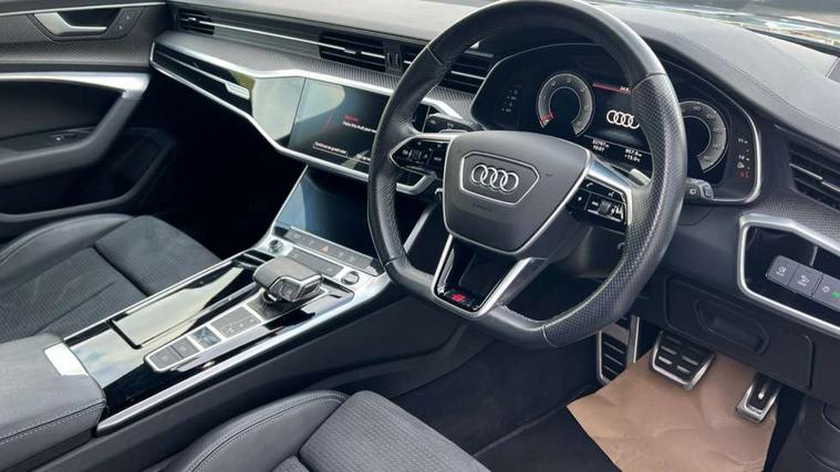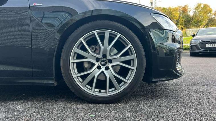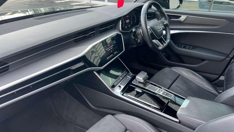 7" high resolution colour driver information display system, Audi connect safety and service (e-call), Audi connect with Amazon Alexa Integration, Audi drive select, Audi parking system plus - acoustic and visual park assist system for front and rear, Automatic start/stop system with coasting functionality, Bluetooth interface, Lane departure warning system, Power operated tailgate, Progressive steering, Rear view camera, Service interval indicator, Smartphone interface includes wireless Apple carplay/Android Auto, Voice control system, 12V Mild hybrid, 24 litre AdBlue tank, Diesel particulate filter, Quattro on demand, Sports suspension, Audi front music interface, Audi sound system, Auxiliary input socket, DAB Digital radio, USB connection, All weather LED headlights, Black roof rails, Electric front/rear windows, Frameless auto dimming interior rear view mirror, Front intermittent wipers, Gloss black highlights on the exterior area of the Audi Single frame, Gloss black highlights on the front and rear bumpers, Gloss black highlights on the radiator grille, Gloss black highlights on the side windows trim strips, Headlight washers, Heat insulating darkened glass in side and rear windows, Heat insulating glass in windshield, LED rear lights, LED signature front daytime running light, LED third brake light, Matt black rear diffuser with diffuser strip and tailpipes in chrome, Matt black side air intake grille with inlay in matt aluminium, Privacy glass, Rain and light sensors, Rear roof spoiler, Rear side wing doors, Rear wiper, 2 zone deluxe electronic climate control, 4 way electric lumbar support for driver and front passenger, 40/20/40 split folding 3 rear seat bench in 3 parts with rear centre armrest, Black cloth headlining, Black front and rear carpet floor mat, Black steering wheel insert, Electrically adjustable front seats with driver memory, Front centre armrest, Front head restraints, Heated front seats, Height/reach adjust steering wheel, Illuminated door sill trims with S logo, Illuminated sun visors with vanity mirrors, ISOFIX child seat mounting and Top Tether with front passenger airbag deactivation, Leather gear knob, Luggage compartment system, Rear headrests, Single front passenger seat, Stainless steel pedals and foot rest, LED Interior Ambient Lighting Pack - A6, Non smoking pack - A6, Technology pack - A6, 3 point seatbelts on all seats, Airbags - Front side, front and rear including head, Audi pre-sense front, Black seatbelts, EBD - Electronic brakeforce distribution, Electromechanical parking brake, Electronic Stability Control (ESC) including ABS, ASR and EDL, Extended pedestrian protection measures, Manual child proof rear door locks, Seatbelt monitoring, Tyre pressure warning light, Warning triangle and first aid kit, Anti theft alarm with tow away protection, Anti-theft wheel bolts and wheel loosening detection, Immobiliser, Keyless Go, Remote central locking, Carbon twill inlays, 20" 5 V spoke star design Audi sport cast aluminium alloy wheels in matt titanium look,