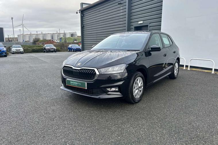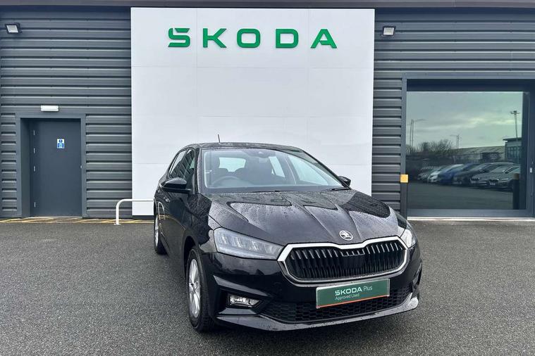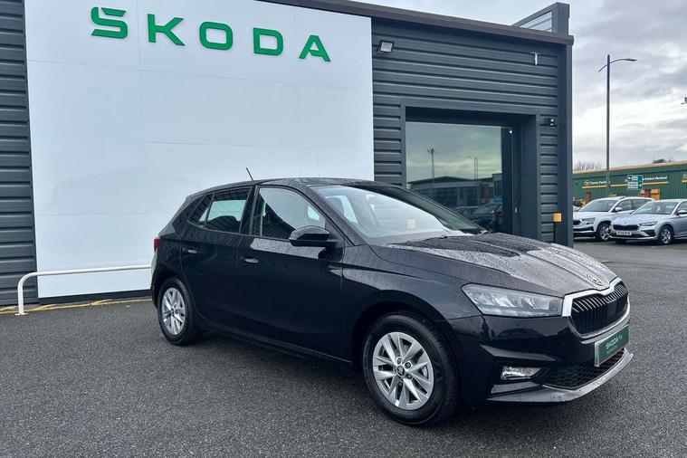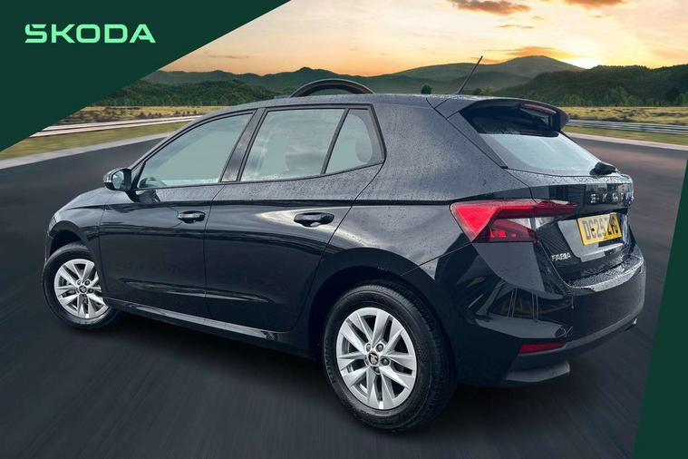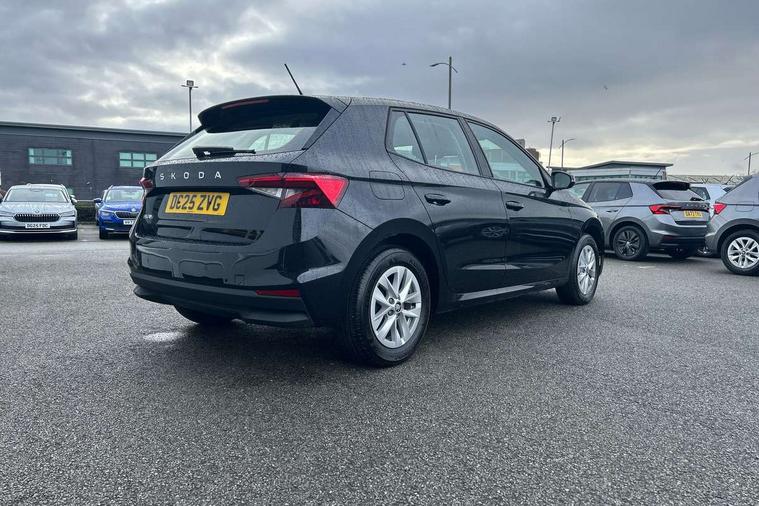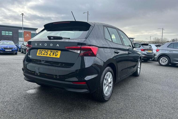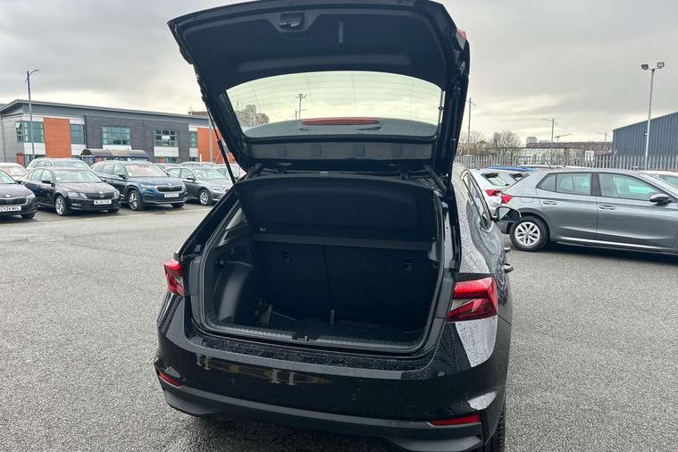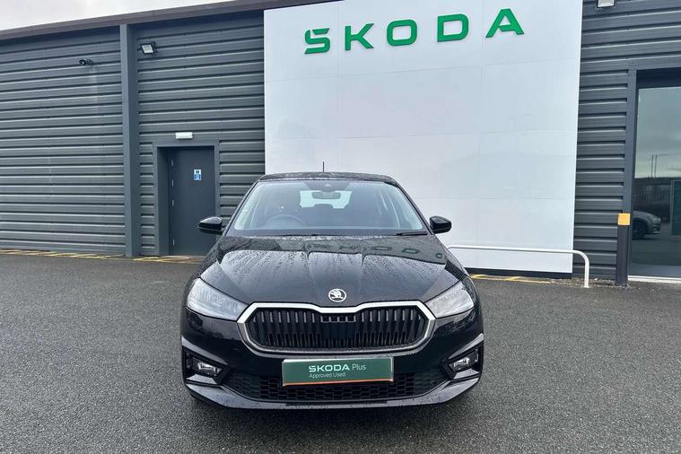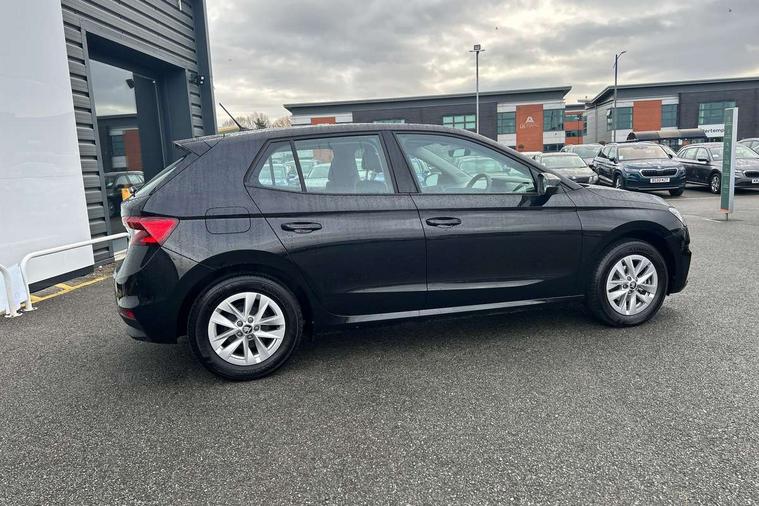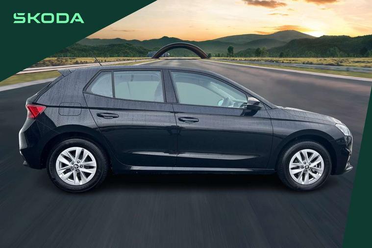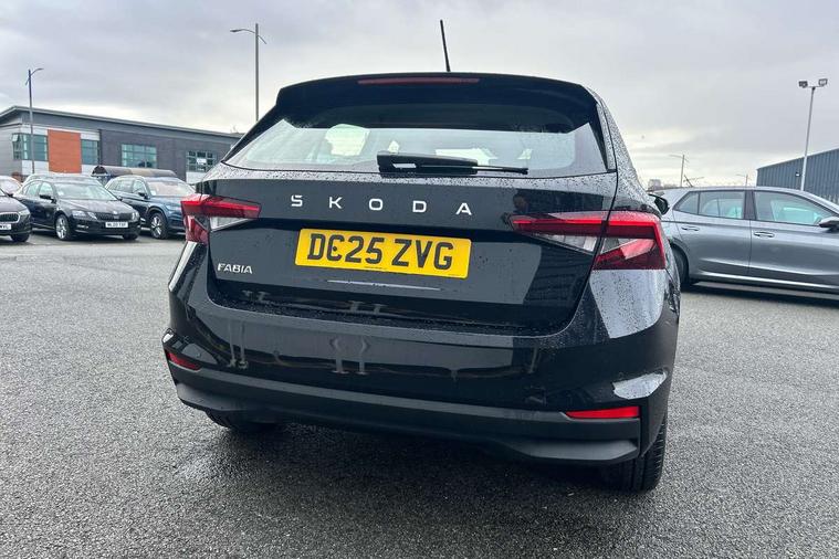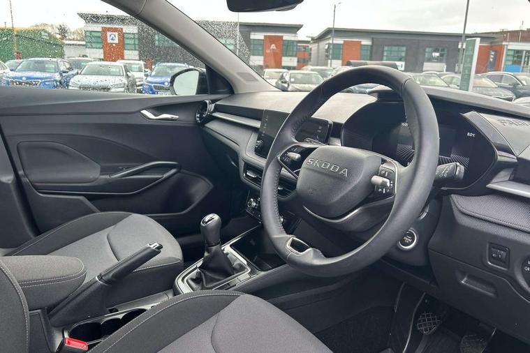 8" Digital instrument display, Advanced driver attention and drowsiness monitor, Bluetooth connection, Driver alert system, Electromechanical power steering, Exterior temperature gauge, Service interval indicator, Traffic sign recognition, Wireless SmartLink for Apple CarPlay and Android Auto, 6 Speakers (4 in front and 2 in rear), 8.25" Skoda infotainment touchscreen display, Auxiliary socket for external MP3 player, DAB digital radio reception, Auto dimming rear view mirror, Body colour door mirrors, Body coloured bumpers, Door mirror integrated indicators, Front and rear electric windows, Front window wiper intermittent control, Headlight range control - Automatic, Ice scraper in fuel cap, LED daytime running lights with coming and leaving home feature, LED rear lights, Rear LED fog light, Rear side wing doors, Rear window wiper with washing nozzles, Roof mounted spoiler, SKODA tailgate lettering in chrome, Third brake light, Unique dark chrome design logo on alloy wheels, 2 reading lights in front and 2 reading lights in rear, 3 rear headrests, Backrest split and folding, Central console with removable cup holder and storage box, Chrome handbrake release button, Dual zone air conditioning with climatronic electronic control, Fabric upholstery, Front centre armrest, Gearshift knob/handle in leather, Grain satin black interior door handles, Hand brake lever handle in leather, Height adjustable front headrests, Height adjustable front seats, Height adjustable steering wheel, ISOFIX and TopTether anchorage points to the outer rear seats, ISOFIX and TopTether on the front passenger seat, Luggage compartment lighting, Manually adjustable lumbar support in front seats, Pollen filter, Rear seat bench unsplit, Single front passenger seat, Skoda lettering on steering wheel, Storm grey headlining, Sun visors with mirror and airbag label on passenger side, Textile floor mats, Ticket holder, Umbrella in drivers door, Ambient lighting pack - Fabia Hatchback, 3-point height adjustable front seats belts with pretensioner and force limiter, Automatic warning lights in case of crash, Driver and passengers airbag with switch off function, e-Call+, ESC including ABS, MSR, ASR, EDS, HBA and XDS, Front and rear seat belt warning, FRONT ASSIST (AEB City and AEB Inter Urban), Front side airbags, Head airbags, One tone horn, Pedestrian protection, Three rear 3-points safety seat belts with pretensioner and force limiter including stop function for outer rear seat belts, Tyre pressure monitoring system, Anti-theft alarm system including immobiliser, interior monitoring, backup horn, and towing protection, Central locking with radio remote control, interior controls, SAFE function and 2 foldable keys, Black painted air vents, Grain satin black central console cover, Metallic grey upper decorative trim, Satin black door and side trim panel in front, Textile Kota grey lower decorative inserts, Anti-theft wheel bolts protection, Super-low rolling resistance tyres,