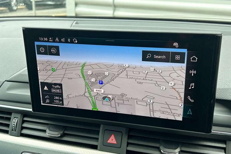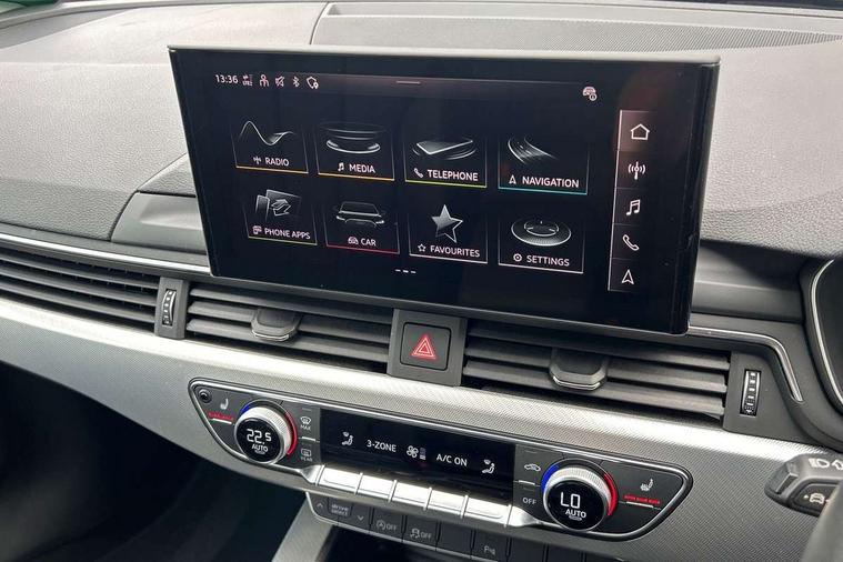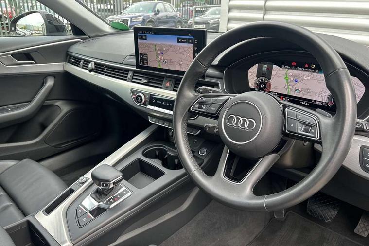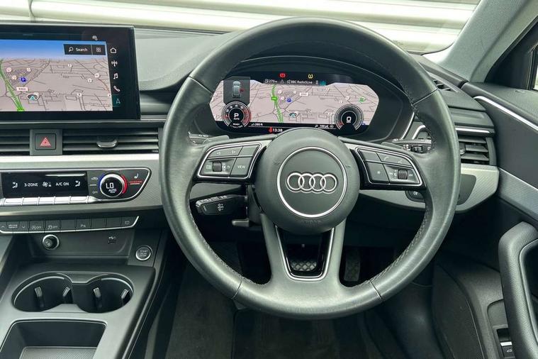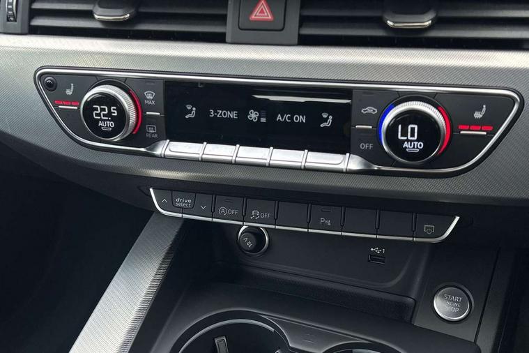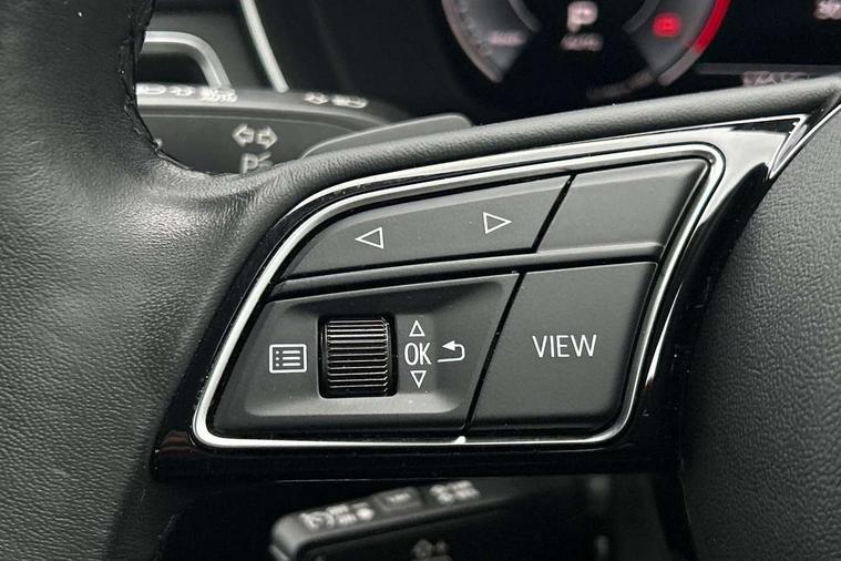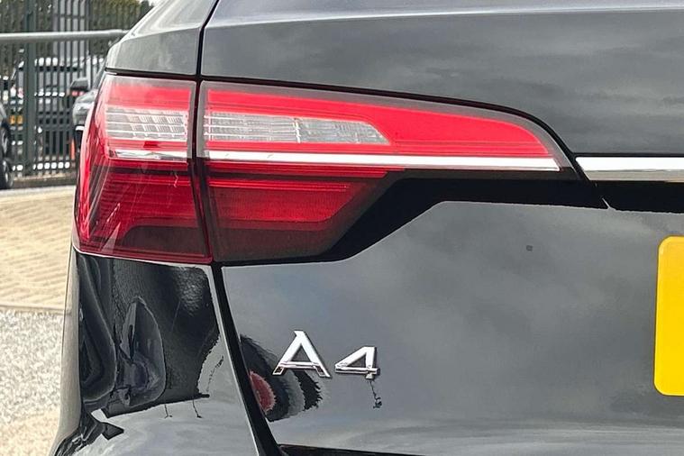 Audi connect safety and service (e-call), Audi drive select, Audi smartphone interface, Audi virtual cockpit, Automatic start-stop system with coasting functionality and efficiency programme, Bluetooth interface, Camera based traffic sign recognition, Electromechanical power steering, Email, calendar and text messages displayed via MMI, Front and rear parking sensors, Lane departure warning, MMI Navigation plus with MMI touch includes 10.1" high resolution colour MMI display, 3D map, Power operated tailgate, Rear view camera, Voice control system, 54 litre fuel tank, Comfort dynamic suspension, 2 USB charging ports, 8 passive loudspeakers, DAB digital radio reception, Aluminium roof rails, Auto dimming rear view mirror, Body colour door handles, Body colour side sill trim, Body coloured door mirrors, Electric adjustable/heated/folding door mirrors with auto dimming, LED headlights and rear lights with LED daytime running lights, LED third brake light, Matt aluminium silver tailpipe trim, Rain and light sensors, Rear side wing doors, Rear wiper, S Line roof edge spoiler, Sport front and rear bumpers with side skirts, Variable intermittent front wash/wipe, Windscreen with acoustic glazing, 3 spoke high multi-function leather sport steering wheel with paddle shift and height and reach adjustable, 4 way electric lumbar support for driver and front passenger, 40/20/40 split folding 3 rear seat bench in 3 parts with rear centre armrest, Black carpets, Contrast stitching on seats, steering wheel and gear lever gaiter, Deluxe 3 zone electronic climate control, Door sill trims with aluminium inlay, Electric load area cover, Front and rear head restraints, Front centre armrest, Heated front seats, ISOFIX child seat mounting and top tether, Manual seat adjustment, Single front passenger seat, Twin leather upholstery + front sports seats, High gloss package - A4, LED Interior light pack - A4/S4, 3 rear seatbelts, 6 airbags - Driver, front passenger, curtain and side windows, Attention and drowsiness assist, Electronic Stabilisation Control (ESC) including ABS, ASR and EDL, Hill hold assist, Multi collision brake assist, Pop-up bonnet for pedestrian protection, Pre sense city, Rear door child safety locks, Seatbelt monitoring, Warning triangle and first aid kit, Anti theft alarm, Anti theft wheel bolts, Central locking, Keyless Go, Aluminium ellipse silver inlays, Tool kit, Tyre repair kit,