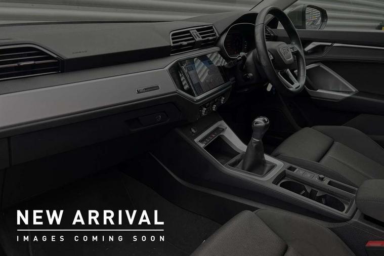Audi connect safety and service (e-call), Audi drive select, Audi lane departure warning, Audi Virtual Cockpit - 10.25" display, Bluetooth interface, Camera based traffic sign recognition, Cruise control + speed limiter, MMI Navigation Plus with high resolution 10.1 inch touchscreen colour display, Power operated tailgate, Progressive steering, Rear parking sensors, Service interval indicator, Smartphone interface includes wireless Apple carplay/Android Auto, Start stop system with recuperation, Voice control system with natural language interaction, Diesel particulate filter, Sports suspension, 2 USB-C ports with charge and data functions, 6 passive loudspeakers, DAB digital radio module, Acoustic windscreen, Aluminium window trim, Auto dimming frameless rear view mirror, Bumpers and underbody protection in contrasting manhattan grey paint finish, Diffuser grille in grained matt black, Diffuser trim in manhattan grey metallic, Door sill trims with illuminated aluminium inlay, Electrically folding, adjustable and heated door mirrors with integrated LED side indicators and kerb view function for passenger side, Front and rear electric windows, Front fog lights, Front side air inlets in Manhattan grey metallic, Grille surround in aluminium silver matt, High gloss black finish B and C pillars, Honeycomb design radiator grille in matt titanium black, LED headlights with LED daytime running lights and dynamic rear indicator, LED rear lights, Rain and light sensors, 12V socket in rear centre console, 3 spoke multi-function leather steering wheel, 40:20:40 folding with manual adjustment for 60:40 forwards/backwards position and backrest angle, Adjustable rear seat bench/backrest, Dual zone electronic climate control, Front and rear floor mats, Front and rear headrests, Front and rear roof module including reading lights, Front centre armrest, Glove compartment lighting, Height and reach adjustable steering wheel, ISOFIX child seat mounting for front passenger with airbag deactivation and outer rear seat including top tether attachment point for outer rear seats, Luggage compartment light, Lunar silver cloth headlining, Manual front seats with height adjustment, Stainless steel luggage compartment sill finisher, Non smoking pack - Q3, 3x3 point rear seatbelts, 6 airbags - Driver, front passenger, curtain and side windows, Audi pre-sense front with pedestrain and cyclist recognition, Electrically operated child locks on rear doors, Electromechanical parking brake, Electronic stabilisation control including ABS, ASR and EDL, Hill descent control, Hill hold assist, Pre sense basic, Seatbelt monitoring, Tyre pressure warning, Warning triangle and first aid kit, Anti theft alarm, Anti theft wheel bolts, Remote central locking, Black dashboard, Detail dashboard around MMI touch colour display in glass look, black with surround in aluminium look, Micrometallic silver inlay,