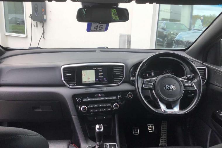 4.2" supervision colour cluster display, 7" touchscreen satellite navigation with European mapping and traffic messaging channel, Android auto with voice control, Apple car play with voice control, Bluetooth connectivity with voice control, Cruise control + speed limiter, Digital clock, Driver attention warning, Emergency stop signalling system, Front parking sensor, Kia connected services featuring TomTom live, Lane keep assist, Rear parking sensor, Reversing camera, Speed limit information, Speed sensitive power steering, Trip computer, Windscreen washer level indicator, Intelligent Stop and Go, 6 speaker audio system, Bluetooth audio streaming, DAB Radio with MP3, Steering wheel mounted audio controls, USB/iPod/auxiliary input connections, All round electric windows with drivers auto up/down function, Auto dimming rear view mirror, Automatic defog system, Automatic headlights, Black wheel arch body mouldings and side sills with dark chrome insert, Body colour door handles with chrome inserts, Body colour door mirrors, Chrome window surround, Cornering light, Dark chrome front bumper insert, Dark chrome grille surround, Electrically adjustable/heated/folding door mirrors with LED indicators, High beam assist, High gloss black blade mesh radiator grille, LED Bi-Function headlights, LED daytime running lights, LED ice cube front fog lights, LED rear lights, Privacy glass (rear side windows and rear screen), Rain sensing front wipers, Rear spoiler, Rear wiper, Roof rails, Shark fin antenna, Silver painted front and rear skid plates, Speed sensitive front wipers, Tinted glass, Trailer stability assist, Welcome and follow-me home light functionality, Wide view drivers door mirror, Windscreen wiper de-icer, 12V power in front and rear centre console, 3 x passenger assist grips, 60/40 split folding rear seat, Air filter, All-round height adjustable headrests, Black headlining, Centre cabin light, Centre console storage box, Chrome boot sill guard, D-Shaped sports leather steering wheel and perforated inserts with GT-Line logo, Door armrest in leather, Driver and front passenger side sunvisors with illuminated vanity mirrors, Drivers seat power lumbar support, Dual zone automatic air conditioning, Front and rear door storage, Front cabin LED map light with sunglasses case, Front door courtesy reflectors, Front seat and rear pockets, Front/rear centre armrests, Gear shift indicator, Glovebox illumination, Heated front and outer rear seats, Illuminated glovebox, Interior door lock/unlock function, ISOFIX Child seat top tethers and anchor fixings, Leather trimmed gearshift, Leather upholstery, Luggage area light, Luggage area load cover, Luggage net with hooks, Perforated leather sports steering wheel, Rear centre armrest with cupholder, Rear coat hooks, Rear headrests, Satin chrome interior door handles, Stainless steel pedals, Stainless Steel Scuff Plates, Tilt/telescopic adjustable steering wheel, Ventilation ducts to rear compartment, 3x3 point rear seatbelts, Active front headrests, All round 3-point seatbelts, Anti-lock braking system with electronic brakeforce distribution, Dual front side airbags, Electronic stability control with downhill brake control, ESP + traction control, Front passenger airbag cut-off switch, Front seatbelt pretensioners + load limiters, Height adjustable front seatbelts, Hill start assist control (HAC), Impact sensing auto door unlocking, Rear door child safety locks, Twin curtain airbags with roll over sensor, Twin front airbags, Tyre pressure monitoring system, Advanced anti-theft system including immobiliser and alarm, Door deadlocks, Engine Start/Stop Button with Smart Entry System, Locking wheel nuts, Speed sensitive auto door locking, Visible vehicle identification number, High gloss black centre fascia, 19" alloy Wheels B-type, Temporary spare wheel,