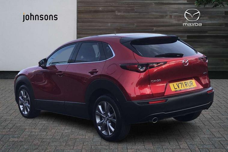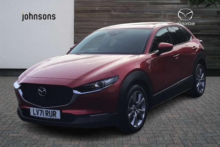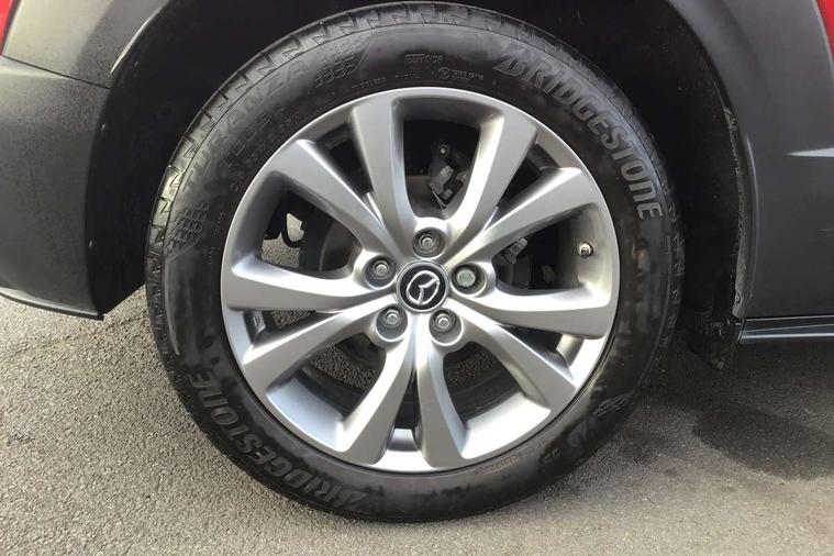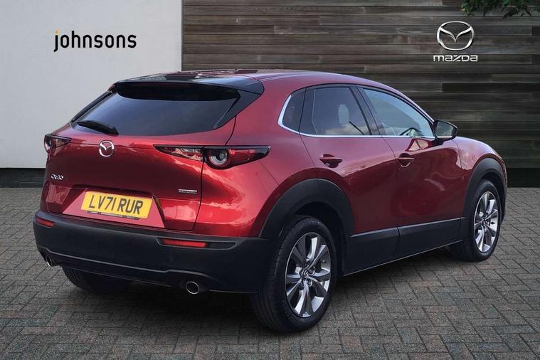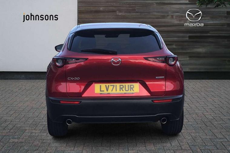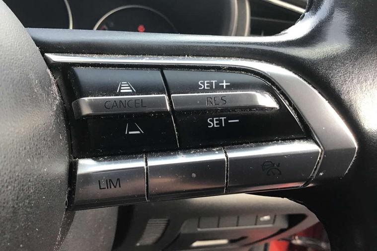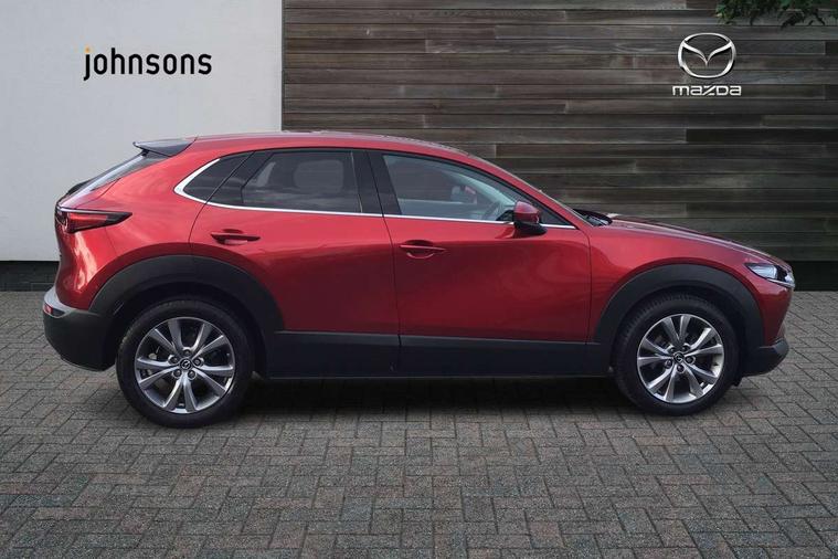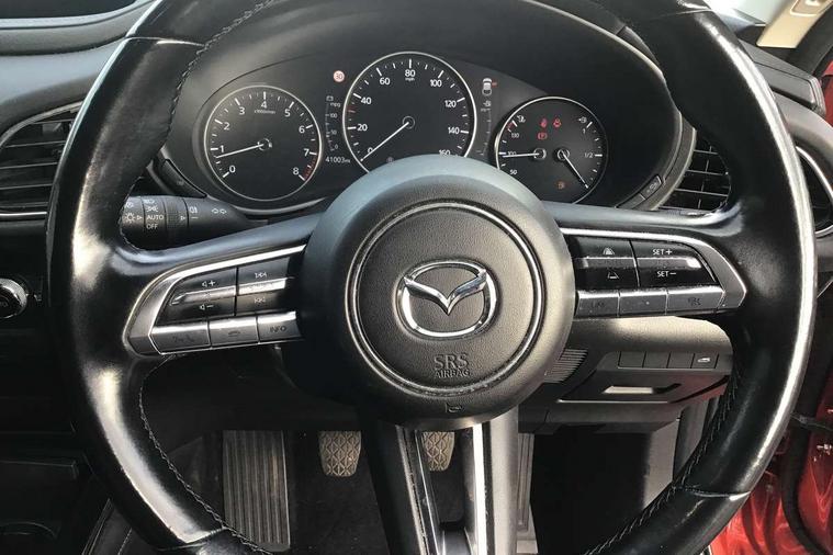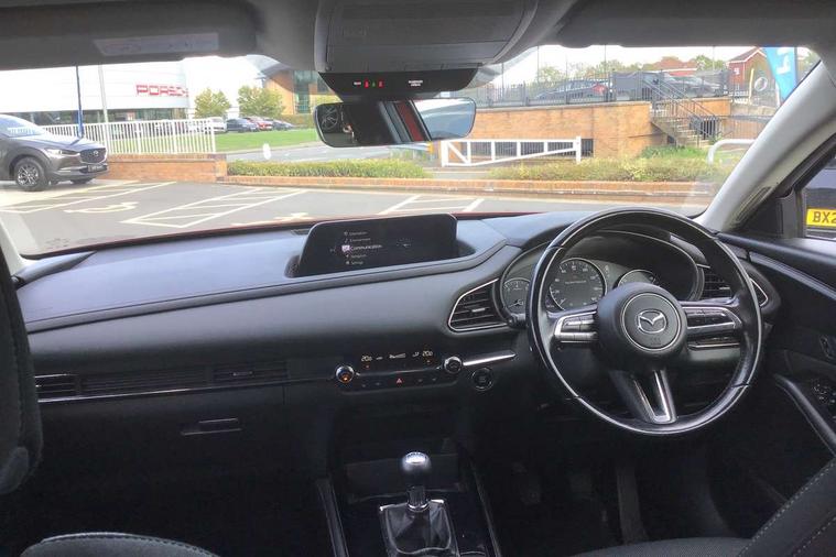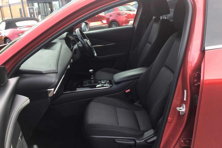 7" TFT Colour driver instrument panel display, 8.8" Colour centre touch screen display with Mazda Connect infotainment, Adaptive cruise control (Mazda radar cruise control), Apple car play/Android Auto, Blind spot monitoring with rear cross traffic alert, Driver attention alert system, E-call with GPS, Emergency stop signalling system, Engine start/stop button, Front and rear parking sensors, Integrated bluetooth, Integrated Mazda navigation system, Intelligent speed assist, Lane keep assist system (LAS) with Lane departure warning system (LDWS), Mazda connected services, PAS, Power lift gate, Reversing camera, Service indicator, Traffic sign recognition, Trip computer, Cylinder Deactivation, i-stop, 2 USB charging ports in front inner central armrest, AM / FM / DAB radio with 8 speakers, Multimedia Commander including separate volume dial, Steering wheel mounted audio/bluetooth controls, Adaptive LED Headlights, Auto dimming driver's door mirror, Auto headlight levelling, B-pillar and C-pillar garnishes in piano black finish, Body coloured, electrically adjustable, heated auto power folding door mirrors with integrated indicators, Chrome finish signature wing in front grille, Coming/leaving home lighting function, Dual chrome exhaust, Dusk sensing headlights, Electric front/rear windows with one touch auto up/down, Frameless auto dimming interior rear view mirror, Front kodo turn signal, Gloss black front grille, Gloss black rear roof spoiler, High beam assist, LED signature daytime running lights, Privacy glass (rear side windows and rear screen), Rain sensing front wipers with adjustable speed and intermittent wipe, Rear fog lights, Rear wiper, Signature LED rear combination lights, 12V power outlet in centre console, 60/40 split fold down rear seats, Chrome horn pad ring, Chrome interior trim accents with steering wheel centre bezel, surround of engine start / stop button and glove box handle, Cloth upholstery with interior accents, Dark cloth door panel inserts, Dashboard, door cards and front centre armrest in black cloth, Driver and front passenger visors with covered vanity mirror and driver ticket holder, Driver seat manual slide, recline, height and seat tilt adjust, Driver, front passenger and two rear door storage, Driver, Front passenger and two rear grab handles with coathooks, Dual zone climate control air conditioning with rear air vents, Folding rear centre armrest with two cup holders, Front and rear (x3) head restraints, Front and rear LED lighting, Front armrest, Front centre storage with two cupholders with lid, Front passenger seatback pockets, Front passengers seat manual slide, recline and height adjustment, Gear shift indicator, Glovebox illumination, Heated front seats with 3 stage setting, ISOFIX child seat anchorage points attached on outer rear seats, Leather wrapped gear shift knob, Leather wrapped steering wheel with telescopic and tilt adjustment, LED luggage compartment lighting, Light roof headlining and pillars, Roof mounted sunglasses holder, 3 point ELR front seat belts x2 with pretensioners, 3 point ELR rear seat belts, Anti-lock braking system (ABS), Drivers knee airbag, DSC - Dynamic Stability Control, Electronic parking brake with auto disengage function and auto hold function, Front and rear curtain airbags, Front dual stage driver and single stage front passenger airbags, Front passenger airbag cut-off switch, Front side airbags, Front smart city brake support, G-Vectoring control plus, Hill launch assist, Mild Hybrid system with regenerative braking, Seatbelt reminder for driver/front passenger and rear seats, Traction control system (TCS), Tyre pressure monitoring system (TPMS), Remote central locking with deadlocking and automatic door lock when driving, Smart keyless entry, Thatcham accredited alarm and immobiliser, 18" Silver alloy wheels, Emergency tyre repair kit,