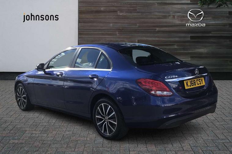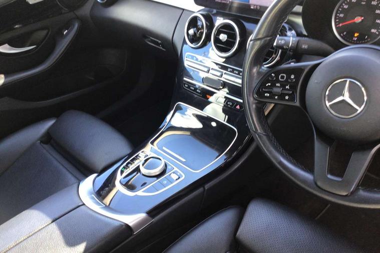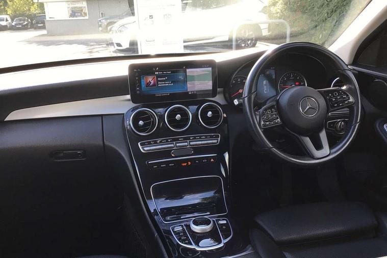 10.25" display screen, Active park assist with parktronic system, Attention assist, Bluetooth system, Collision prevention assist plus, Cruise control with speedtronic variable speed limiter, DYNAMIC SELECT with a choice of driving modes (ECO, Comfort, Sport, Sport+ and Individual), Instrument cluster with display, Multi function trip computer, Multifunction colour display, Navigation system, Outside temperature gauge, Pre-wiring for SD navigation system, Remote boot release, Reversing camera, Service indicator (ASSYST PLUS), Speed sensitive steering, Agility control comfort suspension, Diesel particulate filter, 2 USB ports in centre console, DAB Digital radio, Frontbass loudspeakers, Mercedes Audio 20 radio/single CD + telephone keypad, SD card slot, Steering wheel mounted audio controls, Adaptive brake lights, Aerial in rear window, Body coloured bumpers, Body coloured door mirrors, Electric windows one touch open/close, Electrically adjustable and heated door mirrors, Green tinted glass, Halogen headlights, Heated windscreen washers, LED daytime running lights, LED Indicators, LED tail lights, LED third brake light, Radiator grille with integral star and 2 louvres in matt iridium silver, Rain sensor windscreen wipers, Side windows surround in matt black, 2 cupholders in front centre console, 3 spoke leather steering wheel, 40:20:40 split folding rear seats, Artico man-made leather upholstery, Auto Mercedes-Benz child seat recognition sensor, Black floor mats, Dual zone automatic climate control, Electric front seat height adjustment, Front and rear head restraints, Front centre armrest with storage compartment, Front door sills with Mercedes Benz lettering, Gearshift paddles, Heated front seats, Illuminated glovebox, Multifunction steering wheel, Rear top tether child seat ISOFIX attachment, Lighting pack - C class, Mirror pack - C Class, Seat comfort pack - C Class, Stowage space pack - C Class, 3 rear 3 point seatbelts, ABS with Brake Assist, Active bonnet, Adaptive brake system, Black seat belts, Child proof door locks, Crash sensor, Drivers knee airbag, Drivers pelvis airbag, Dual stage driver/passenger airbags, Electronic parking brake, ESP with ASR, Front passenger seat occupancy sensor, Front side airbags, Hill start assist, Rear seatbelt warning indicator, Tyre pressure monitoring system, Warning triangle and first aid kit, Window airbags, Alarm system/interior protection/immobiliser, Chrome surround electric key, Black high gloss trim, 17" 5 twin spoke aero alloy wheels in Silver, Tyre inflation kit,