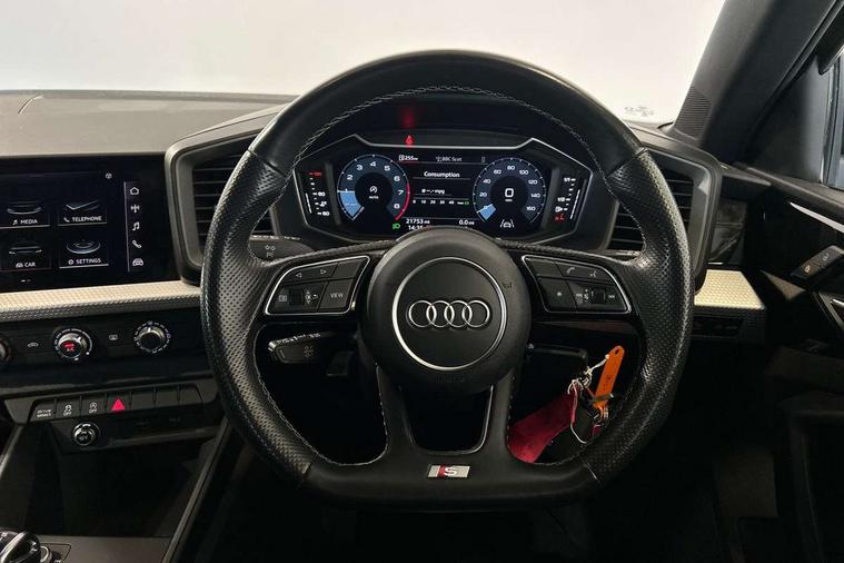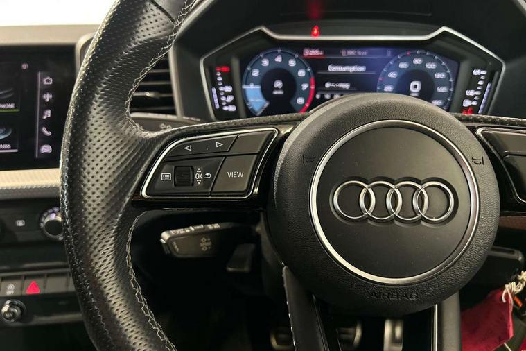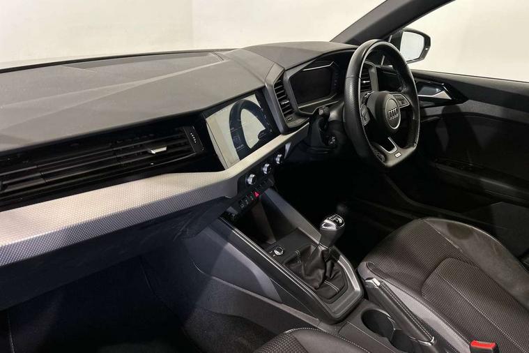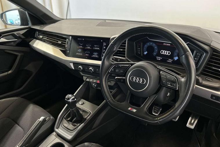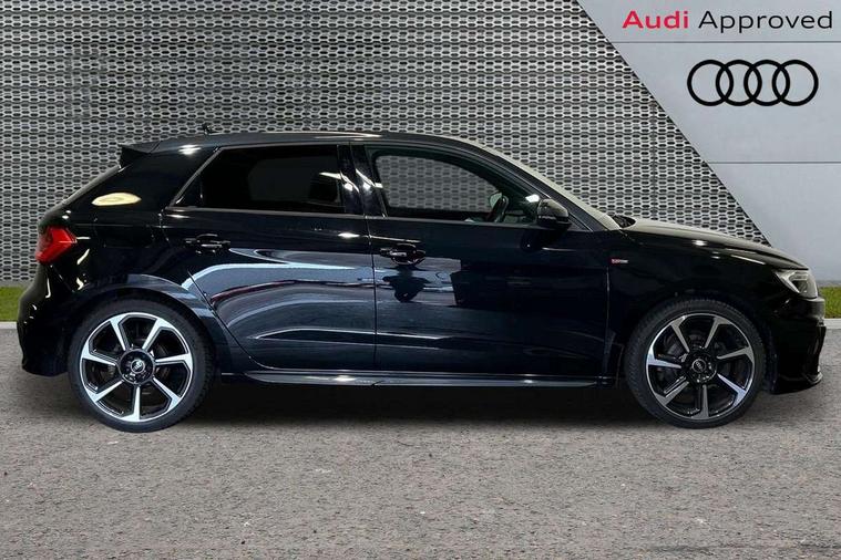 10.25" Digital instrument cluster display classis style instrument dials + speed, odometer, time, outside temperature, telephone menu + fuel level warning, Audi connect safety emergency and service including E-call, Audi drive select - power steering assistance + engine, Audi smartphone interface with connect compatible smartphone via USB directly MMI display + Nav, music, third party apps controlled via MMI controller, Automatic start/stop system, Bluetooth interface, Cruise control, Driver's information system, Electromechanical power steering, Emergency services call system, Lane departure warning system, Service interval indicator, Speed limiter, Voice control system, Washer fluid level indicator, Sports suspension, 1 x SDXC card reader, 2 x USB type C connection points, DAB Digital radio, MMI radio plus with 8.8" colour MMI display screen and MMI touch, Auto dimming rear view mirror, Black door mirrors, Black side skirts, Body coloured bumpers, Door sill trims with aluminium inlays and logo, Electric front and rear windows, Electrically adjustable, heated, folding door mirrors with integrated LED side indicator, Front side air inlets in grained matt black and C frame in titanium black, Heat insulating glass windscreen and side windows, Heated rear windscreen, High level LED brake light, LED headlights with LED rear lights + dynamic rear indicators + headlight adjustment and high beam, turning light + LED daytime running lights, Radiator protective grille frame in matt aluminium silver, Rain and light sensors, Rear diffuser strip in matt titanium black, Rear fog lights, Rear side wing doors, Rear wing door, Rear wiper, Side front spoiler lips in grained matt black, 12V socket in centre console with two cup holders, 3 rear seats with headrests, 3 seat bench in 2nd row, 3 spoke flat bottomed multi-function plus leather steering wheel with S badging, grips in preforated leather and contrast stitching, 40:60 Split folding rear seat or folded fully, Black cloth headlining, Driver and passenger seat with manual height adjust with forward and backwards adjustment, Front and rear black floor mats with contrast stitching in fine silver, Front head restraints, Front passenger seat, Height and reach adjustable steering wheel, ISOFIX child seat mounting for front passenger and outer rear seats including top tether attachment point of outer rear seats, Leather gear knob with aluminium trim, Luggage compartment light with front and rear reading lights, Manually adjustable lumbar support in front seats, Stainless steel pedals, Black styling pack - A1 Sportback Black Edition, LED interior lighting pack - A1, Luggage compartment pack - A1, 3x3 point rear seatbelts, Audi pre-sense front with pedestrain and cyclist recognition, Brake assist function, Driver and front passenger airbag with front side and head airbags, Electronic Stability Control including ABS, EBD, ASR and EDL, Front passenger airbag deactivation switch, Hill hold assist, Manual rear child locks, Seatbelt height adjustment for front seats, Seatbelt monitoring, Tyre pressure warning light, Warning triangle and first aid kit, Anti theft alarm, Anti theft wheel bolts and loose wheel warning, Immobiliser, Remote central locking with 2 foldaway keys, Aluminium trim for control switches, air vents and digital instrument cluster, Silver grey inlays polygon structure in diamond paint finish, Structured grey accent areas including air vents, door handle recesses and centre console in quartz paint finish, 18" 7 spoke rotor design alloy wheels in gloss anthracite black, diamond cut finish,