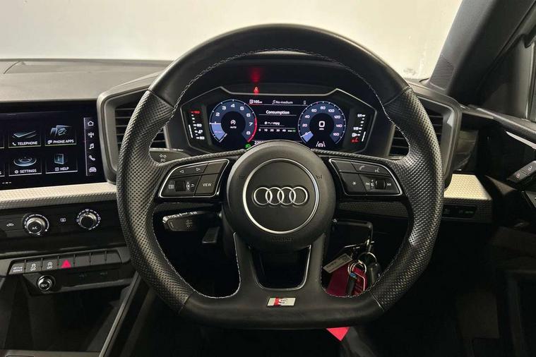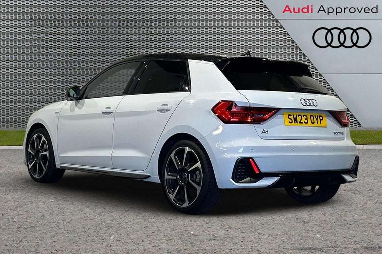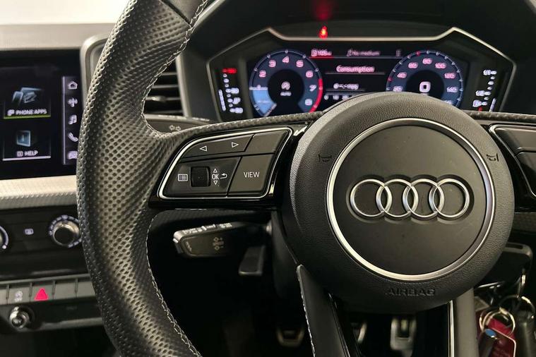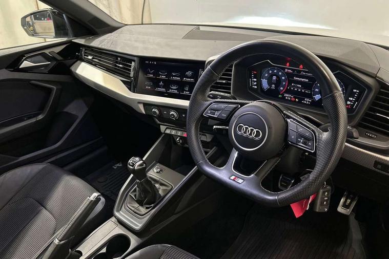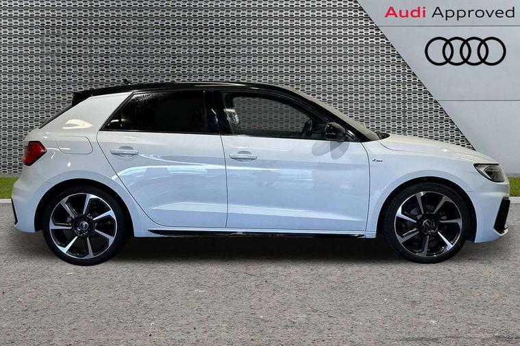 10.25" Digital instrument cluster display classis style instrument dials + speed, odometer, time, outside temperature, telephone menu + fuel level warning, Audi drive select - power steering assistance + engine, Audi smartphone interface with connect compatible smartphone via USB directly MMI display + Nav, music, third party apps controlled via MMI controller, Automatic start/stop system, Bluetooth interface, Cruise control, Driver's information system, Electromechanical power steering, Emergency e-call, Lane departure warning system, Rear parking sensor, Service interval indicator, Speed limiter, Voice control system, Washer fluid level indicator, Sports suspension, 2 x USB type C connection points, 6 passive loudspeakers, DAB Digital radio, MMI radio plus with 10.1" colour MMI display screen and MMI touch, Auto dimming rear view mirror, Black side skirts, Body coloured bumpers, Door sill trims with aluminium inlays and logo, Electric front and rear windows, Electrically adjustable, heated, folding door mirrors with integrated LED side indicator, Front side air inlets in grained matt black and C frame in anthracite black, Front wing badges, Heat insulating glass windscreen and side windows, Heated rear windscreen, High level LED brake light, LED headlights with LED rear lights + dynamic rear indicators + headlight adjustment and high beam, turning light + LED daytime running lights, Privacy glass, Rain and light sensors, Rear fog lights, Rear side wing doors, Rear wiper, Side front spoiler lips in grained matt black, 12V socket in centre console with two cup holders, 3 rear seats with headrests, 3 seat bench in 2nd row, 3 spoke flat bottomed multi-function plus leather steering wheel with S badging, grips in preforated leather and contrast stitching, 40:60 Split folding rear seat or folded fully, Black cloth headlining, Driver and passenger seat with manual height adjust with forward and backwards adjustment, Front and rear black floor mats with contrast stitching in fine silver, Front head restraints, Front passenger seat, Height and reach adjustable steering wheel, ISOFIX child seat mounting for front passenger and outer rear seats including top tether attachment point of outer rear seats, Leather gear knob with aluminium trim, Leather handbrake grip, Luggage compartment light with front and rear reading lights, Manual air conditioning, Manually adjustable lumbar support in front seats, Stainless steel pedals, Black styling pack - A1 Sportback Black Edition, LED interior lighting pack - A1, Luggage compartment pack - A1, 3x3 point rear seatbelts, Audi pre-sense front with pedestrain and cyclist recognition, Brake assist function, Driver and front passenger airbag with front side and head airbags, Electronic Stability Control including ABS, EBD, ASR and EDL, Front passenger airbag deactivation switch, Hill hold assist, Manual rear child locks, Seatbelt height adjustment for front seats, Seatbelt monitoring, Tyre pressure warning light, Warning triangle and first aid kit, Anti theft alarm, Anti theft wheel bolts and loose wheel warning, Immobiliser, Remote central locking with 2 foldaway keys, Aluminium trim for control switches, air vents and digital instrument cluster, Black dashboard, Silver grey inlays polygon structure in diamond paint finish, Structured grey accent areas including air vents, door handle recesses and centre console in quartz paint finish,