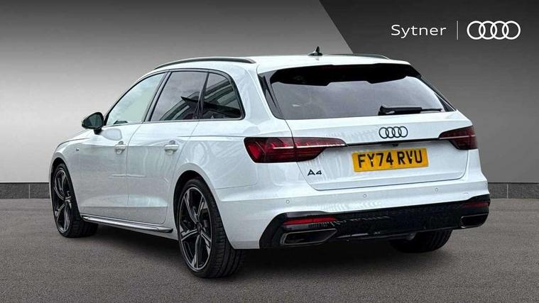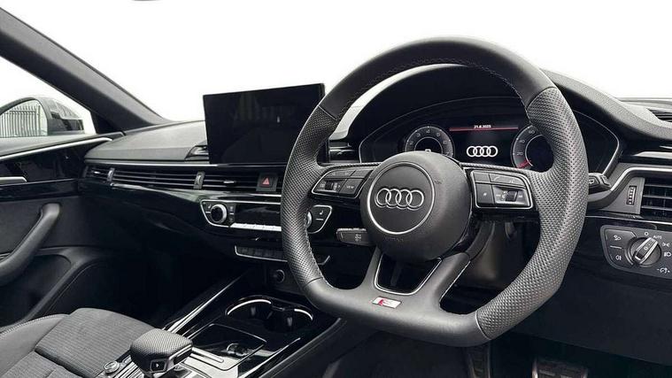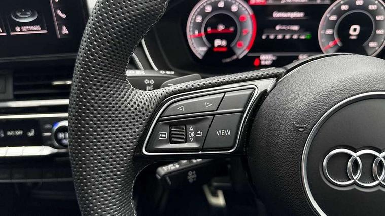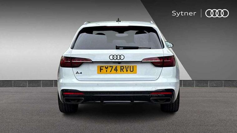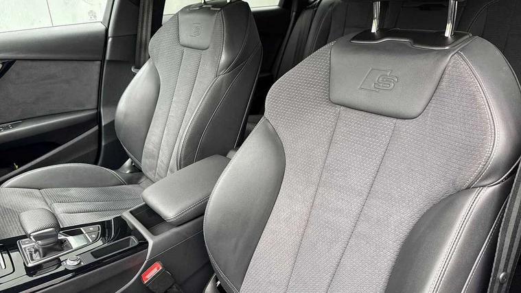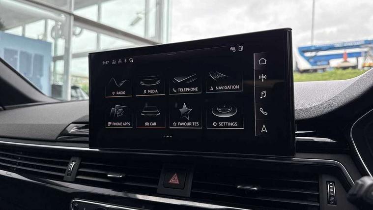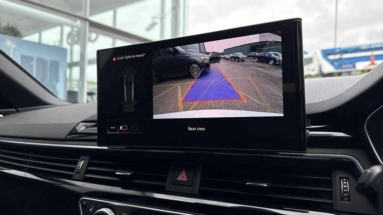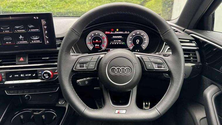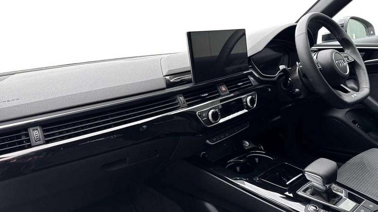 Audi connect safety and service (e-call), Audi drive select, Audi smartphone interface, Audi virtual cockpit, Automatic start-stop system with coasting functionality and efficiency programme, Bluetooth interface, Camera based traffic sign recognition, Electromechanical power steering, Email, calendar and text messages displayed via MMI, Front and rear parking sensors, Lane departure warning, MMI Navigation plus with MMI touch includes 10.1" high resolution colour MMI display, 3D map, Power operated tailgate, Rear view camera, Voice control system, 54 litre fuel tank, Sports suspension lowered by 23mm, 2 USB charging ports, 8 passive loudspeakers, DAB digital radio reception, Audi beam uses LEDs to project the audi logo onto the ground as you exit your A4, Auto dimming rear view mirror, Black Audi rings and black badging (with removed engine badging), Body colour door handles, Body colour front spoiler lip, Body colour side sill trim, Electric adjustable/heated/folding door mirrors with auto dimming, Exhaust tailpipes in dark chrome, Grained matt black side air inlets with matt aluminium silver inlay, High beam assistant, High gloss black B pillar trims and triangular rear door trim, LED headlights with LED rear lights + dynamic rear indicators + headlight adjustment and high beam, turning light + LED daytime running lights, LED third brake light, Privacy glass, Rain and light sensors, Rear diffuser in matt black with trim strip in matt aluminium silver, Rear side wing doors, Rear wiper, RS4 rear spoiler in body colour, S Line roof edge spoiler, Sport front and rear bumpers with side skirts, Variable intermittent front wash/wipe, Windscreen with acoustic glazing, 4 way electric lumbar support for driver and front passenger, 40/20/40 split folding 3 rear seat bench in 3 parts with rear centre armrest, Black carpets, Black cloth headlining, Black perforated leather gearknob, Contrast stitching on seats, steering wheel and gear lever gaiter, Deluxe 3 zone electronic climate control, Electric load area cover, Front and rear head restraints, Front centre armrest, Heated front seats, Illuminated door sill trims with S logo, ISOFIX child seat mounting and top tether, Manual seat adjustment, Single front passenger seat, Stainless steel pedals and foot rest, Black styling pack - A4 Avant, LED Interior light pack - A4/S4, 3 rear seatbelts, 6 airbags - Driver, front passenger, curtain and side windows, Attention and drowsiness assist, Electronic Stabilisation Control (ESC) including ABS, ASR and EDL, Hill hold assist, Multi collision brake assist, Pop-up bonnet for pedestrian protection, Pre sense city, Rear door child safety locks, Seatbelt monitoring, Warning triangle and first aid kit, Anti theft alarm, Anti theft wheel bolts, Central locking, Keyless Go, Piano black finish inlay, Tool kit, Tyre repair kit,