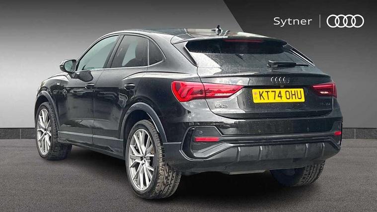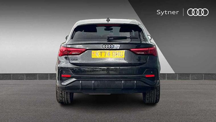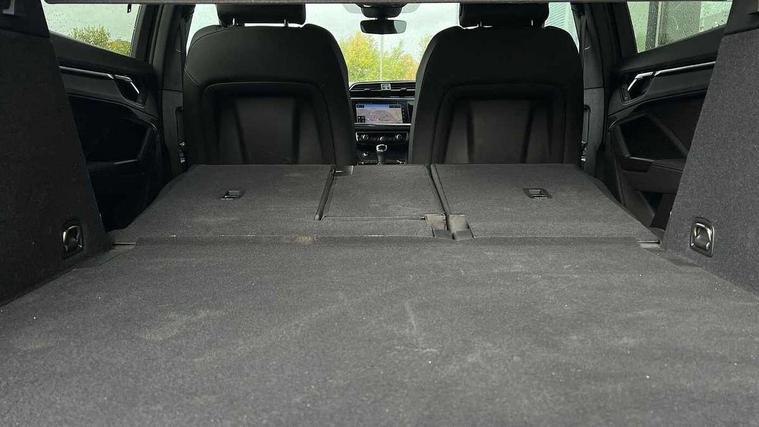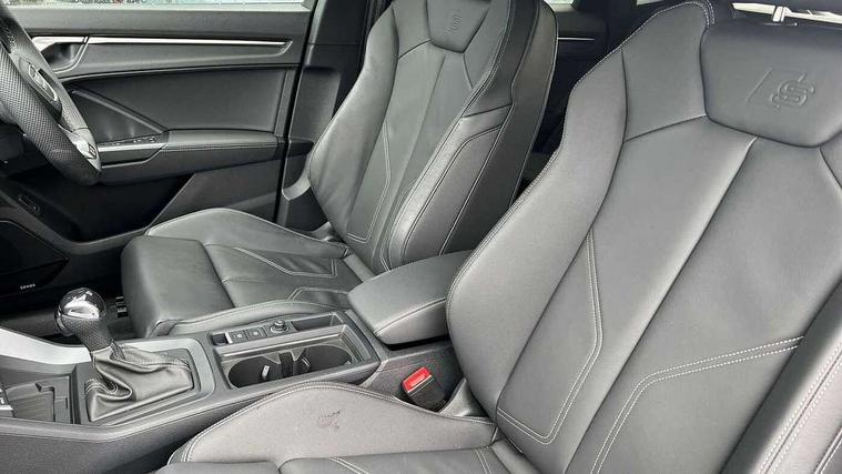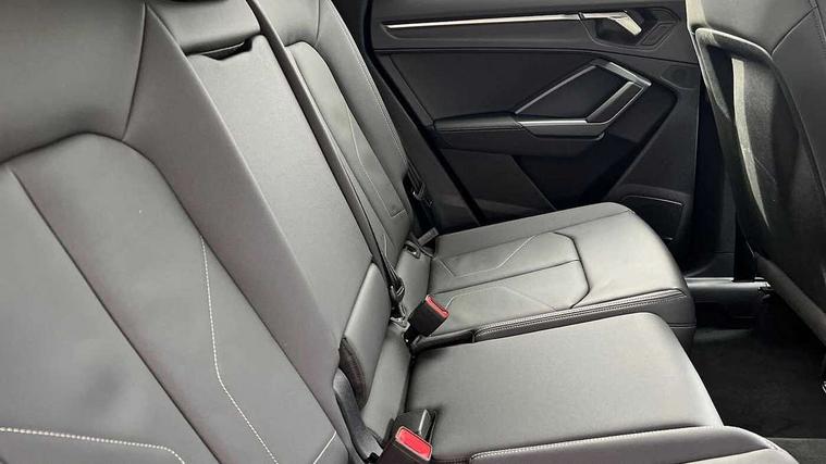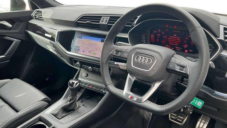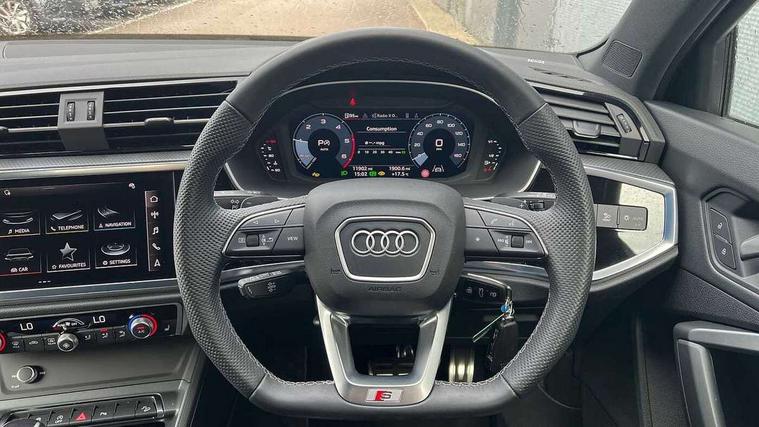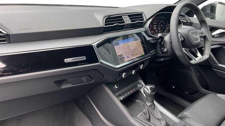 Audi connect safety and service, Audi drive select, Audi lane departure warning, Audi Virtual Cockpit - 10.25" display, Bluetooth interface, Camera based traffic sign recognition, Distraction and Fatigue warning, Legal emergency call, MMI Navigation Plus with high resolution 10.1 inch touchscreen colour display, Power operated tailgate, Progressive steering, Service interval indicator, Smartphone interface includes wireless Apple carplay/Android Auto, Start stop system with recuperation, Voice control system with natural language interaction, Diesel particulate filter, Sports suspension, 2 USB-C ports with charge and data functions, 6 passive loudspeakers, DAB digital radio module, Acoustic windscreen, Audi Beam uses LEDs to project the Audi logo onto the ground as you exit your Q3, Auto dimming door mirrors, Auto dimming frameless rear view mirror, Diffuser grille in grained matt black, Diffuser trim in selenite silver, Electrically folding, adjustable and heated door mirrors with integrated LED side indicators and kerb view function for passenger side, Front and rear electric windows, Front fog lights, Front underbody protection in manhattan grey paint finish, High gloss black finish B and C pillars, LED Dynamic rear indicators, LED headlights with LED daytime running lights, LED rear lights, LED third brake light, Privacy glass dark tinted rear and rear-side windows (from B-pillar backwards), Rain and light sensors, Rear side wing doors, Rear underbody protection in matt black, Rear wiper, S line front and rear bumpers and side skirts in contrasting Manhattan grey paint finish, Variable front intermittent wipers, 12V socket in rear centre console, 3 seat bench in 2nd row, 40:20:40 folding with manual adjustment for 60:40 forwards/backwards position and backrest angle, Adjustable rear seat bench/backrest with centre armrest and cupholder, Black cloth headlining, Dual zone electronic climate control, Electric lumbar support, Front and rear black floor mats with contrast stitching, Front and rear headrests, Front centre armrest, Height and reach adjustable steering wheel, Illuminated door sill trims with S logo, ISOFIX child seat mounting for front passenger with airbag deactivation and outer rear seat including top tether attachment point for outer rear seats, Luggage compartment sill protection in stainless steel, Manual front seats with height adjustment, Perforated leather gearknob, Single front passenger seat, Stainless steel pedals, Twin leather upholstery with front sport seats + S embossing, Black styling pack - Q3, Non smoking pack - Q3, 3x3 point rear seatbelts, 6 airbags - Driver, front passenger, curtain and side windows, Audi pre-sense front with pedestrain and cyclist recognition, Electrically operated child locks on rear doors, Electromechanical parking brake, Electronic stabilisation control including ABS, ASR and EDL, Front seatbelt reminder, Hill descent control, Hill hold assist, Pre sense basic, Seatbelt monitoring, Tyre pressure warning, Warning triangle and first aid kit, Anti theft alarm, Anti theft wheel bolts, Immobiliser, Remote central locking, Aluminium look interior elements, Detail dashboard around MMI touch colour display in glass look, black with surround in aluminium look, Leatherette door armrest, Piano black inlay,