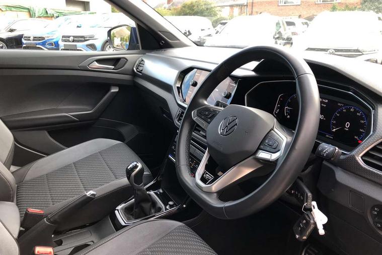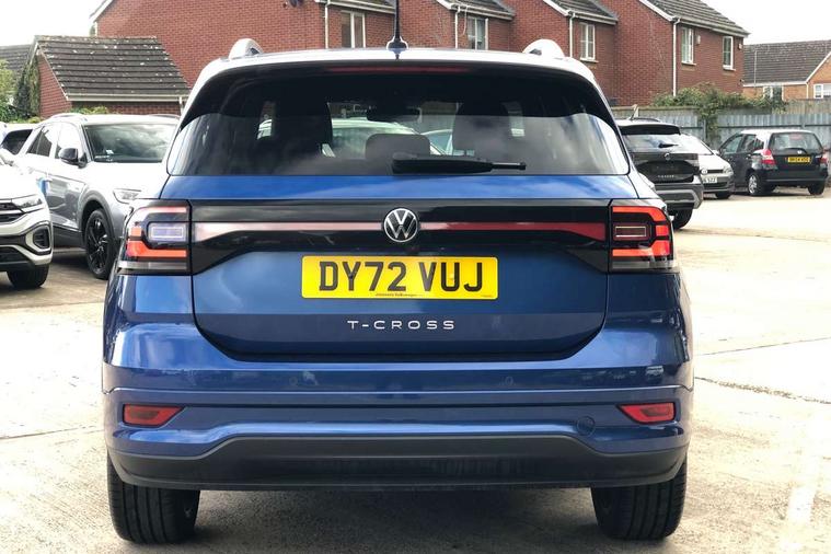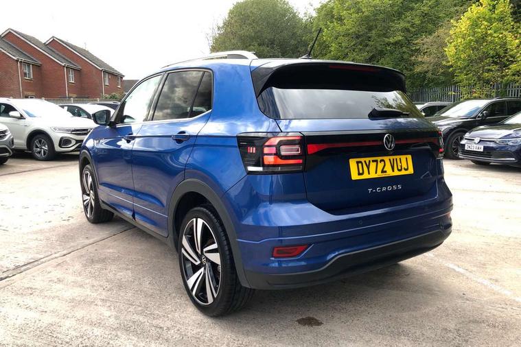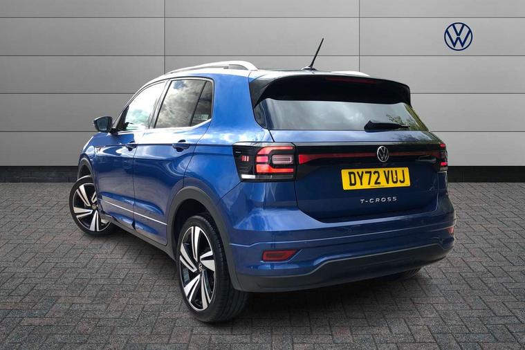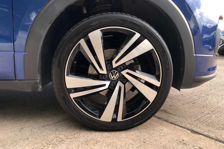 'Lights On' Reminder warning buzzer, 2D/3D map view, Active info display - 10.25" High resolution TFT dash display screen, Adaptive cruise control including front assist, forward collision warning, autonomous emergency braking, speed limiter, Blind spot monitoring, Bluetooth telephone and audio connection for compatible devices, Car information display, Driver alert system, eCall emergency call system, Lane assist, Low washer fluid warning light, Multifunction computer with visual gear change recommendation for fuel consumption, Operating permit alteration, Power assisted speed sensitive steering, Speed limit display, Speedo, rev counter, electronic odometer, trip, service interval display, exterior temperature and fuel gauge, Stop/start system, Warning sound and light for doors and tailgate open, Warning sound and light for front seatbelts unfastened, We connect plus preparation, Wireless Car net app connect with Apple CarPlay, combined functionality of Apple CarPlay/Android Auto and MirrorLink, Battery regeneration during braking, Misfuel prevention device, 2x USB connection with USB charging sockets and in rear centre console, DAB Digital radio receiver, Diversity antenna for FM reception, Multi device interface (MDI) with USB connection, Music playback - MP3, WMA and AAC files, Premium USB cable for Apple or Android smartphone compatibility, Simultaneous pairing of 2 compatible mobile devices, SMS Functionality, Three route options - Fast, Short, Eco, Title and cover art display, Automatic hazard lights activation under emergency braking, Body colour door handles, Body colour door mirrors with integrated indicators, Body colour rear roof spoiler, Body coloured bumpers, Dusk sensor + automatic driving lights, Electrically foldable, adjustable and heated door mirrors with reverse activated kerb view adjustment on passenger's side, Front and rear electric windows, Front fog lights with static cornering function, Galvanised body, Heated rear window, LED third brake light, Lower door sills and door pillars in black, Radiator grille with chrome trim and chrome bezel front fog lamp, Rear fog light on one side, reversing light on both sides, Rear lights incorporating LED technology, Rear side wing doors, Rear tinted glass 65% approx light absorbing from B pillar backwards, Rear window aerial, Rear windscreen washer and wiper with interval delay, Reflectors in all doors, Silver roof rails, Stainless steel door sill protection, Tailgate with integrated roof spoiler, Unique R Line badging, Windscreen wipers/ intermittent wipe + 4 position delay, 12V Accessory socket in centre console, 2 Front and rear reading lights incorporating LED technology, 2 Zone electronic climate control with automatic air recirculation, 3 rear head restraints and 3 rear three point seat belts with ECE label, 3 seat bench in 2nd row, 60/40 split folding rear seat backrest, Ambient lighting and sourround lighting, Black headlining, Branded points of interest, Brushed stainless steel pedals, Carbon flag cloth upholstery, Drawer under drivers seat, Driver and front passenger sunvisor with vanity mirror, Driver's sunvisor with ticket holder, Dust and pollen filter, Front and rear carpet mats with contrast stitching, Front centre armrest with storage compartment, Front footwell illumination, Front seat back storage pockets, Front seat R Line logo with rear seat backrest, Front sports seat with height and lumbar adjustment, Glovebox, Heating and fresh air system with 4 stage blower, Height/reach adjust steering wheel, Instrument lighting white adjustable panel illumination, Interior light with delay, Isofix child seat preparation for 2 rear child seats, Leather trimmed three spoke multifunction steering wheel with contrast stitching and aluminium inserts with R Line logo, Luggage compartment cover, Luggage compartment lighting, Moveable and foldable Rear bench seat, Scuff plates in door apertures, Storage compartment in drivers and front passengers door, Variable boot floor, R Line styling pack - T-cross, Anti-lock Braking System (ABS) with Hydraulic Brake Assist (HBA), Automatic post collision braking system, Driver and front passenger safety-optimised head restraints, Drivers and Front Passengers airbags with front passengers airbag deactivation switch, ESC with EDL, ASR, EDTC and trailer stabilisation function, Front and rear curtain airbags, Front seat side impact airbags, Height-adjustable front three-point seat belts with tensioners, Hill start assist, Pre crash preventive occupant protection, Rear door child safety locks, Rigid safety cell with front and rear crumple zones, Single torn horn, Tyre pressure loss indicator, Volkswagen roadside assistance, Alarm with interior protection and deactivation via infotainment system, Child security locks in rear doors, Electronic engine immobiliser, Remote tailgate unlocking using key fob, Race decorative inserts in dash and doors, 18" Nevada black alloy wheels, Breakdown kit,